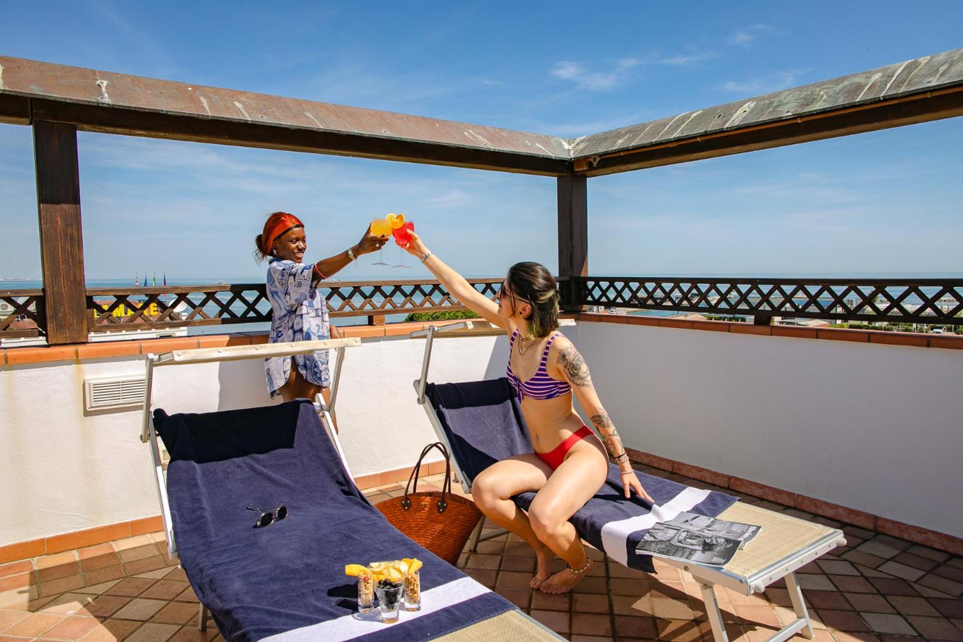 Unwind in our wide hydromassage pool on the panoramic terrace, overlooking the charming port, perfect for relaxation after a day of adventures.