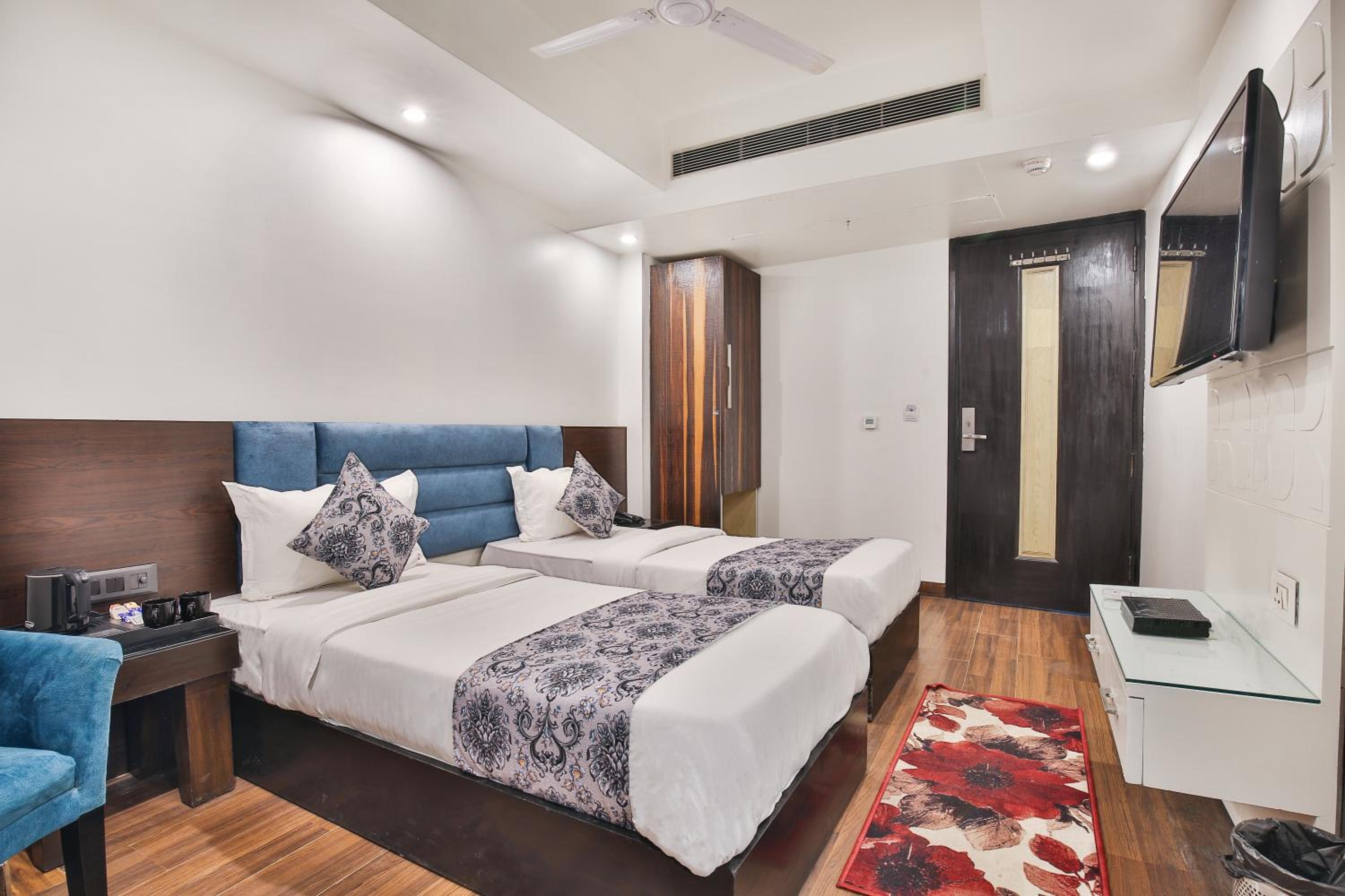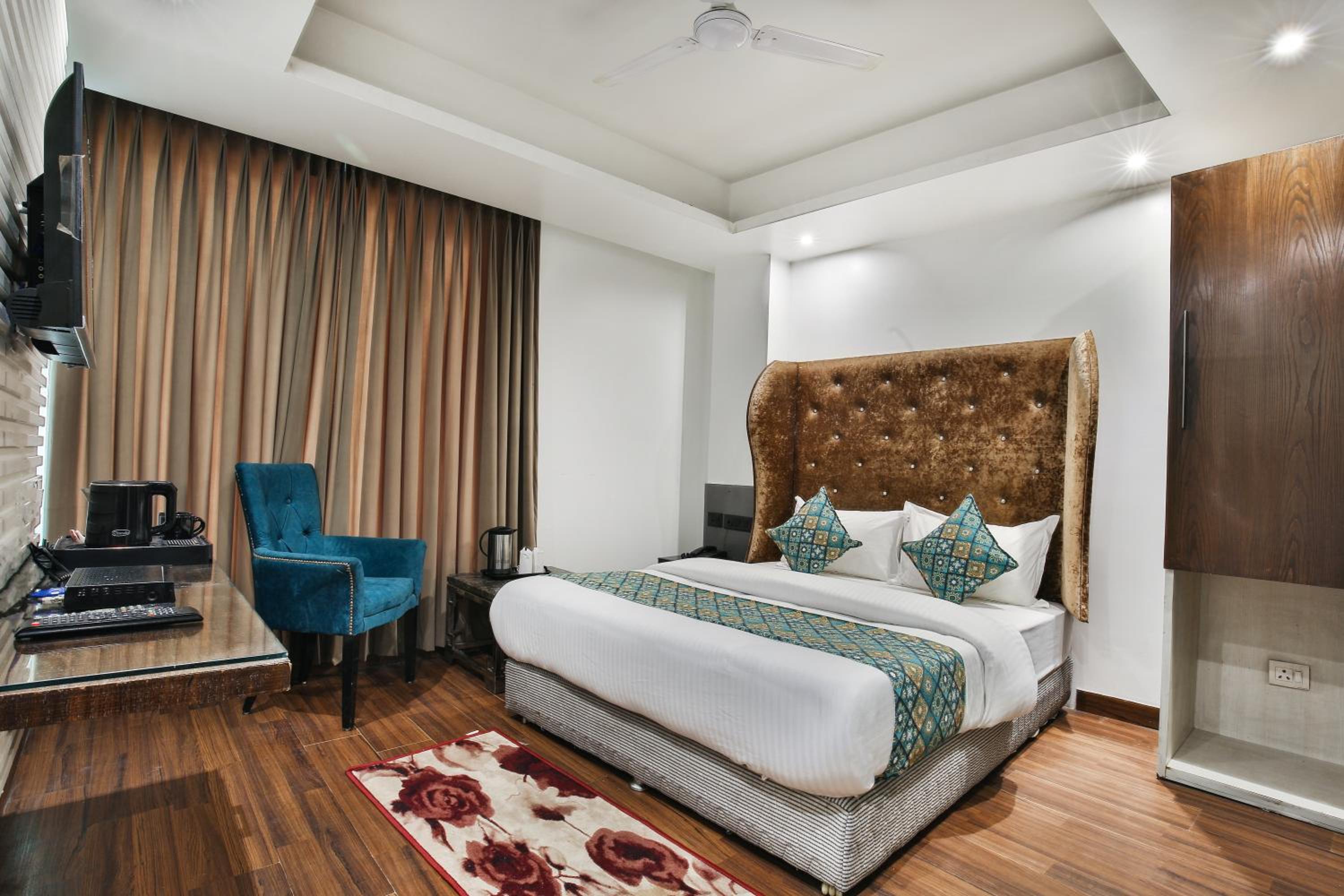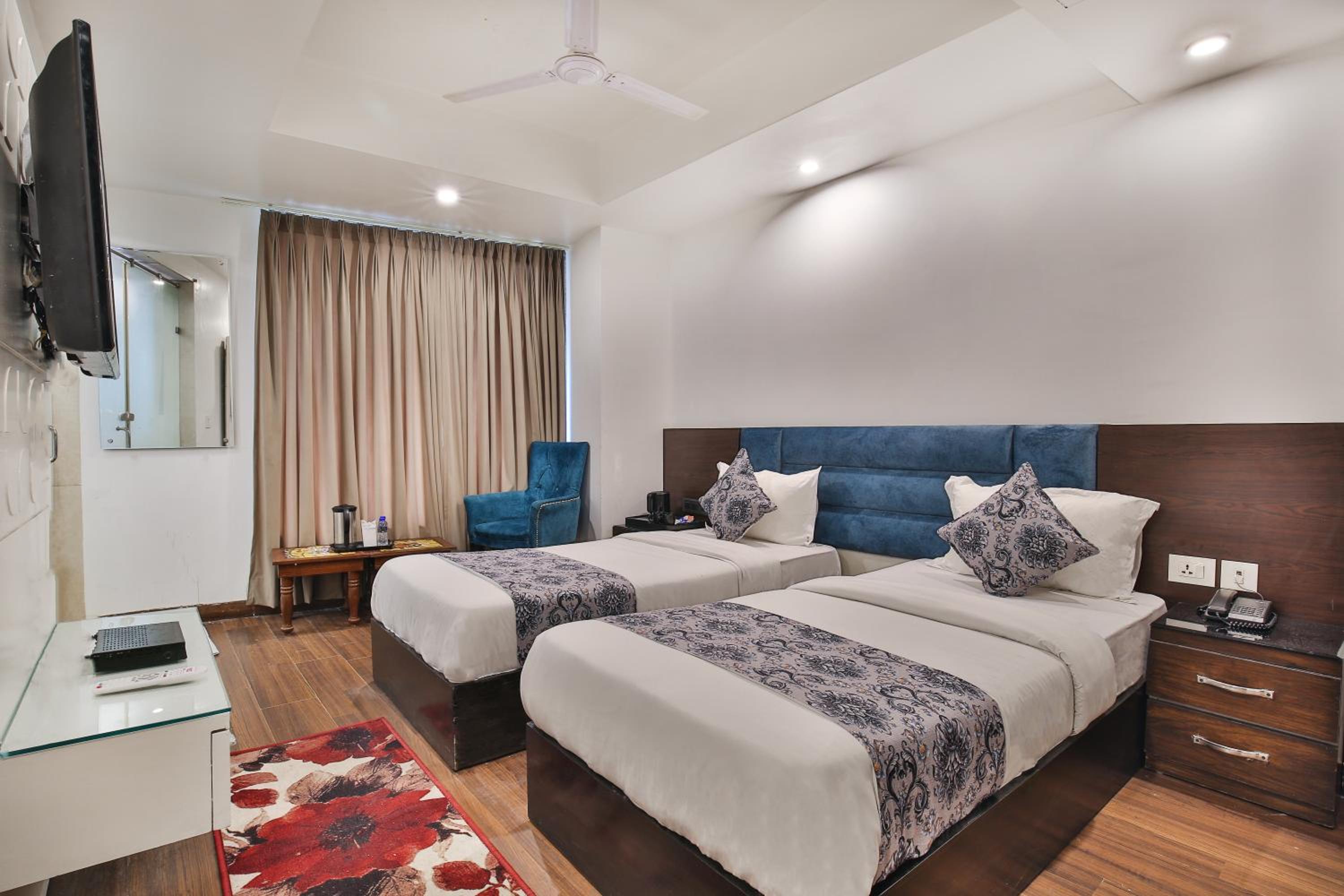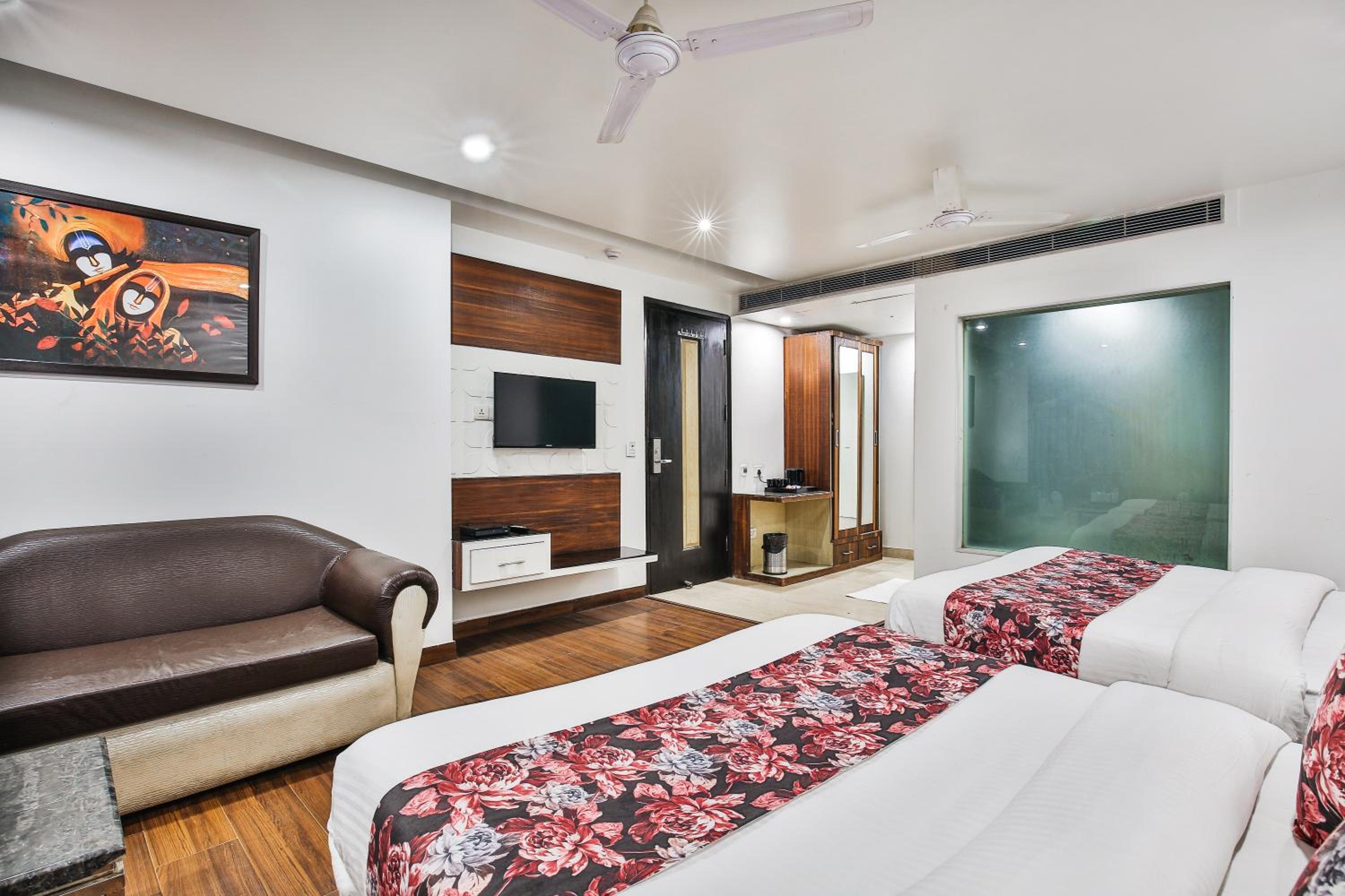 The hotel features beautifully furnished, air-conditioned rooms with free Wi-Fi, flat-screen TVs, and personal safes. Guests can unwind in the cozy seating area and enjoy the convenience of attached bathrooms with complimentary bath amenities.