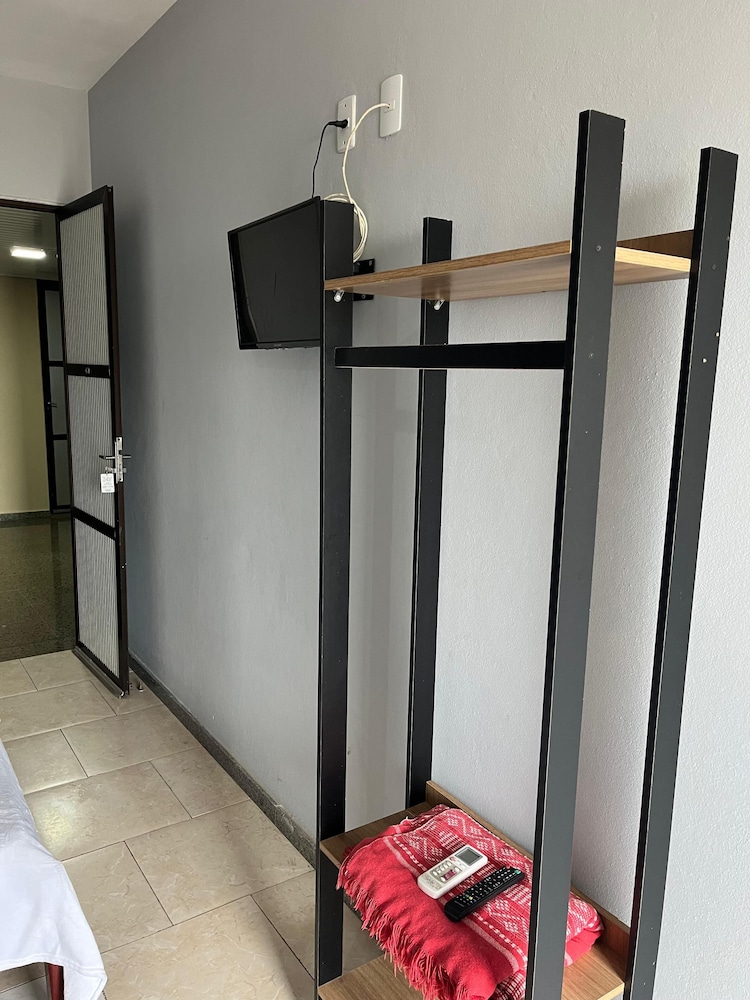 Quarto simples, mais funcional, não estava informado mais havia ar condicionado, o conforto e satisfatório e também temos bastante paz lá, garagem boa e espaçosa, para minha finalidade mais do que me serviu, café da manhã simples mais satisfatório.