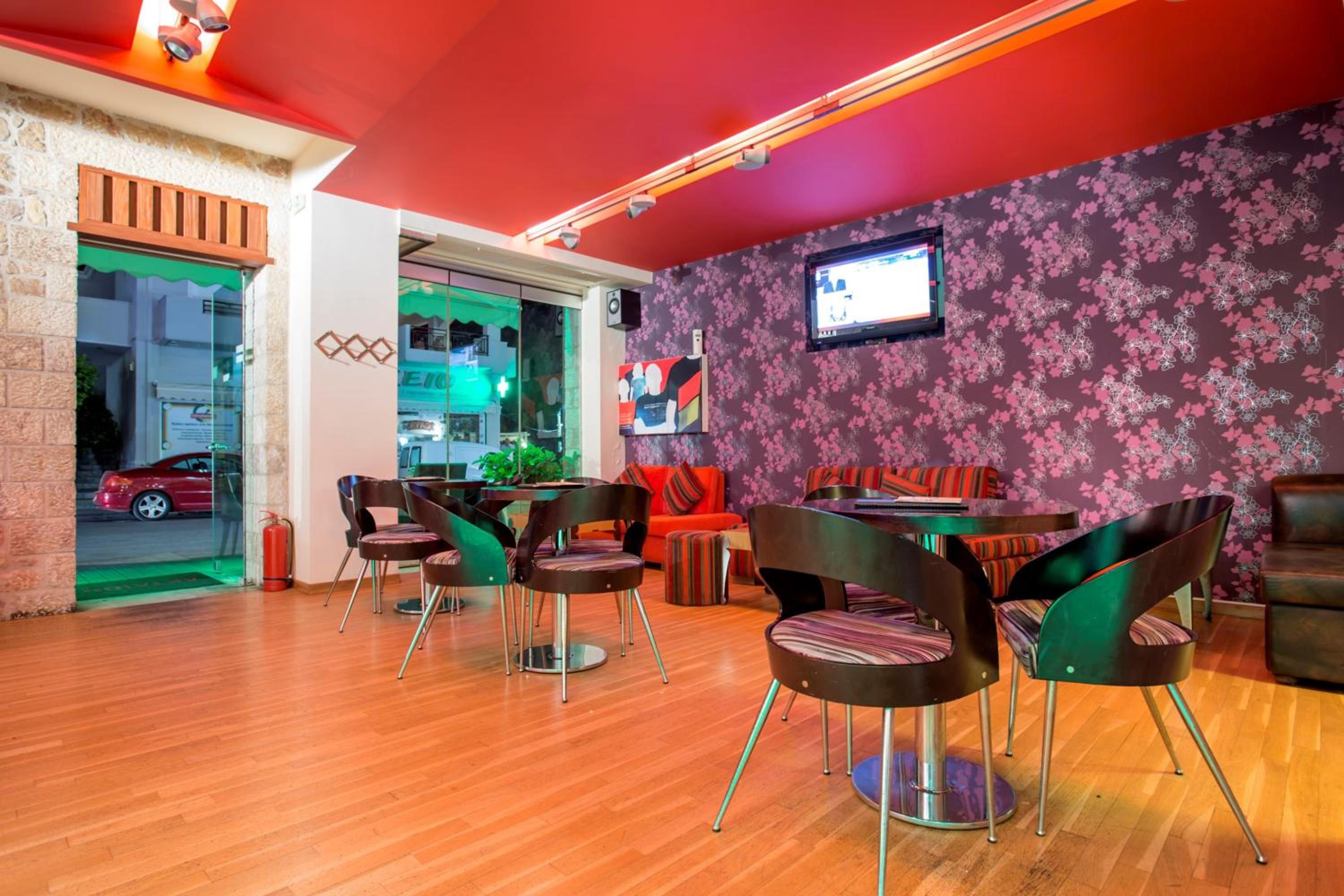 Guests can unwind in the hotel's modern, bright-colored bar, complete with comfortable lounge chairs and board games, perfect for relaxing after a day of exploring the area.