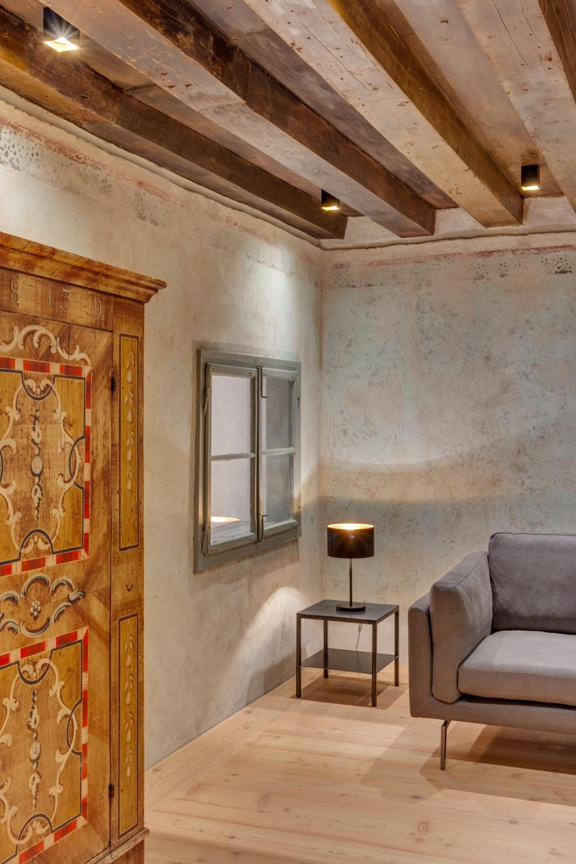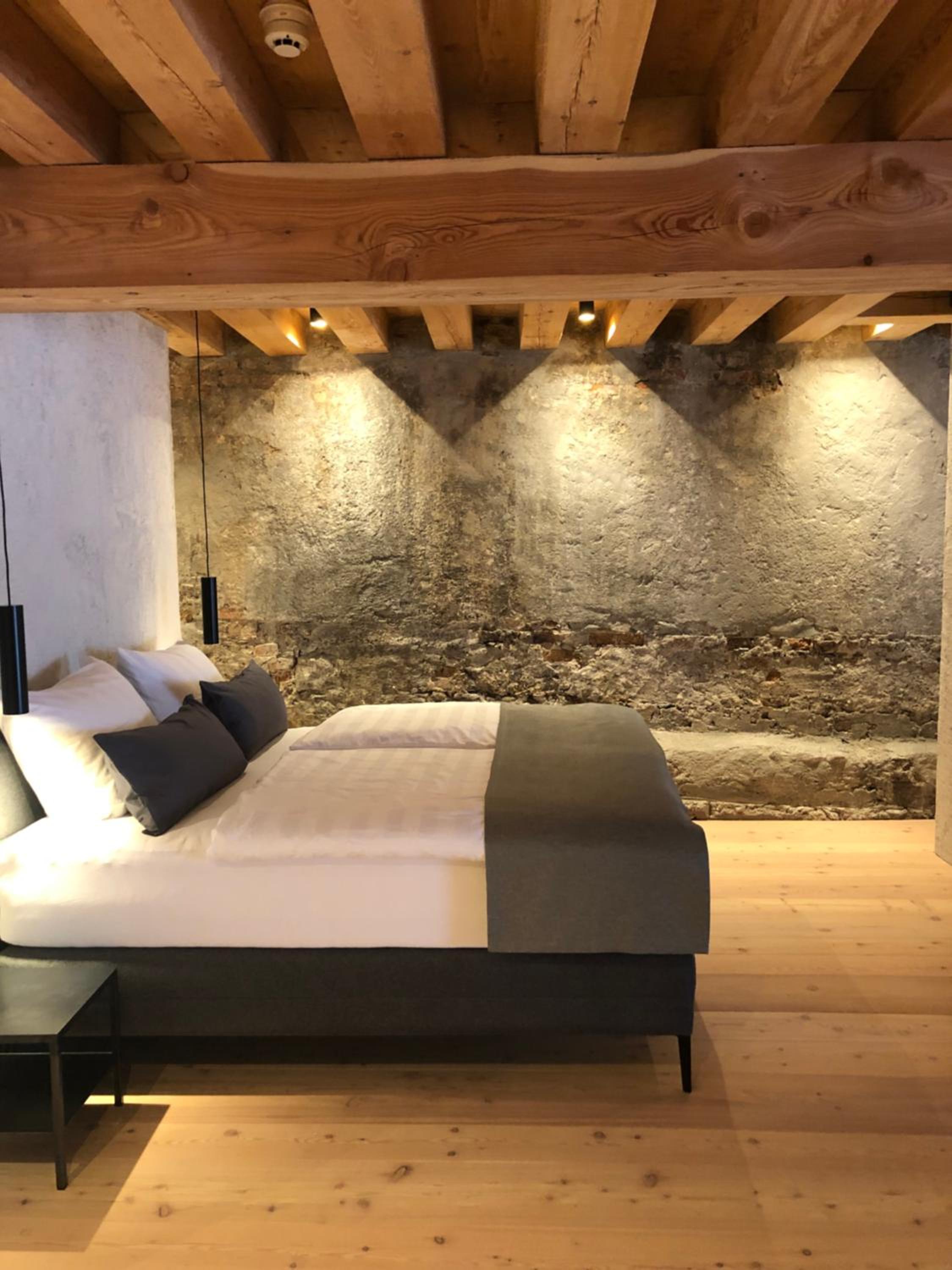 Das Hotel, als auch das Zimmer sind architektonisch schon bemerkenswert. So wie es auf den Fotos auch schon zu sehen ist. Unser Zimmer war an die 80 qm groß, hohe Decken, schöne Aussicht auf die wunderschöne Fußgängerzone des wirklich bezaubernden Ortes. Unaufgefordert hat die Dame des Hauses und einen Tisch ins Zimmer gestellt. Auch einen Kühlschrank haben wir bekommen. Wir waren allerdings auf eine Woche dort und der Aufenthalt ging über Silvester. Es gibt in der direkten Umgebung genug Restaurants, die wirklich gutes Essen anbieten. Auch ein Café befindet sich direkt neben dem Hotel, mit Kuchen und auch Snacks. Supermärkte ebenfalls in direkter Umgebung. Das nächste Skigebiet 15 min entfernt. Das Auto kann in 5 min Entfernung kostenfrei geparkt werden.