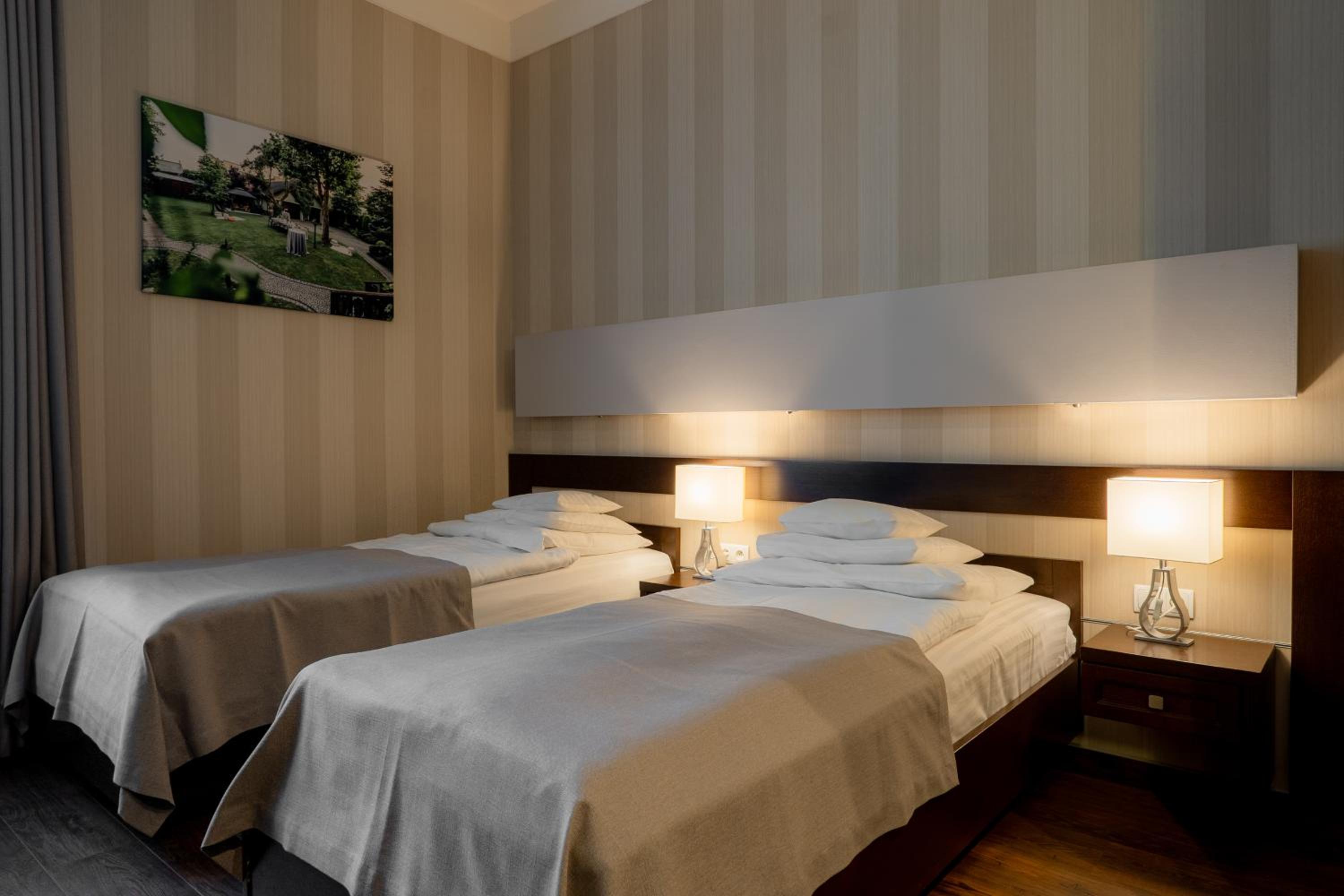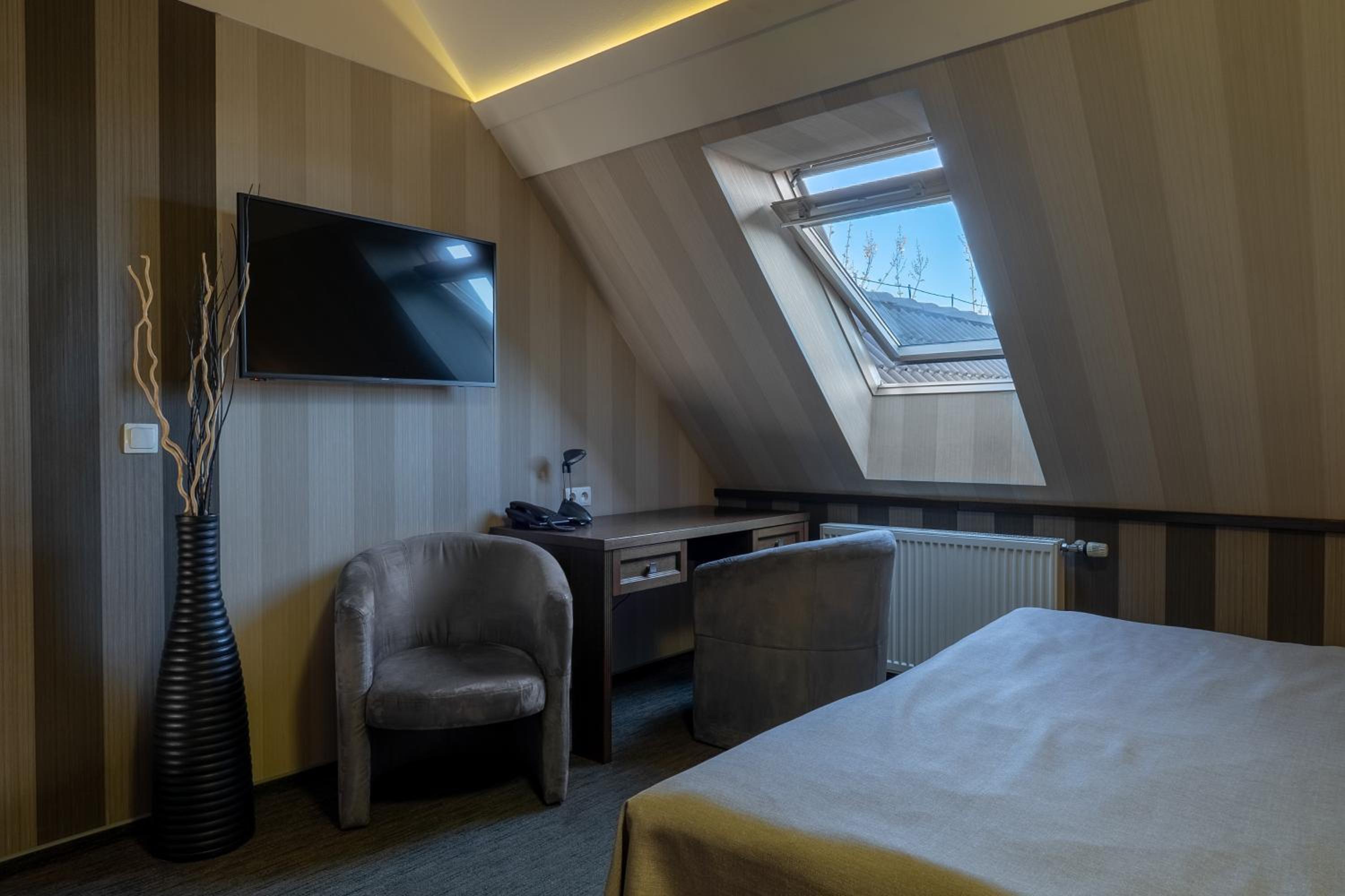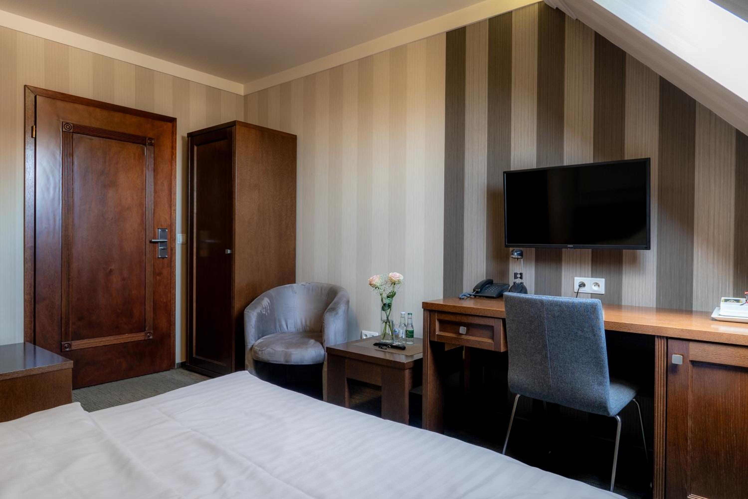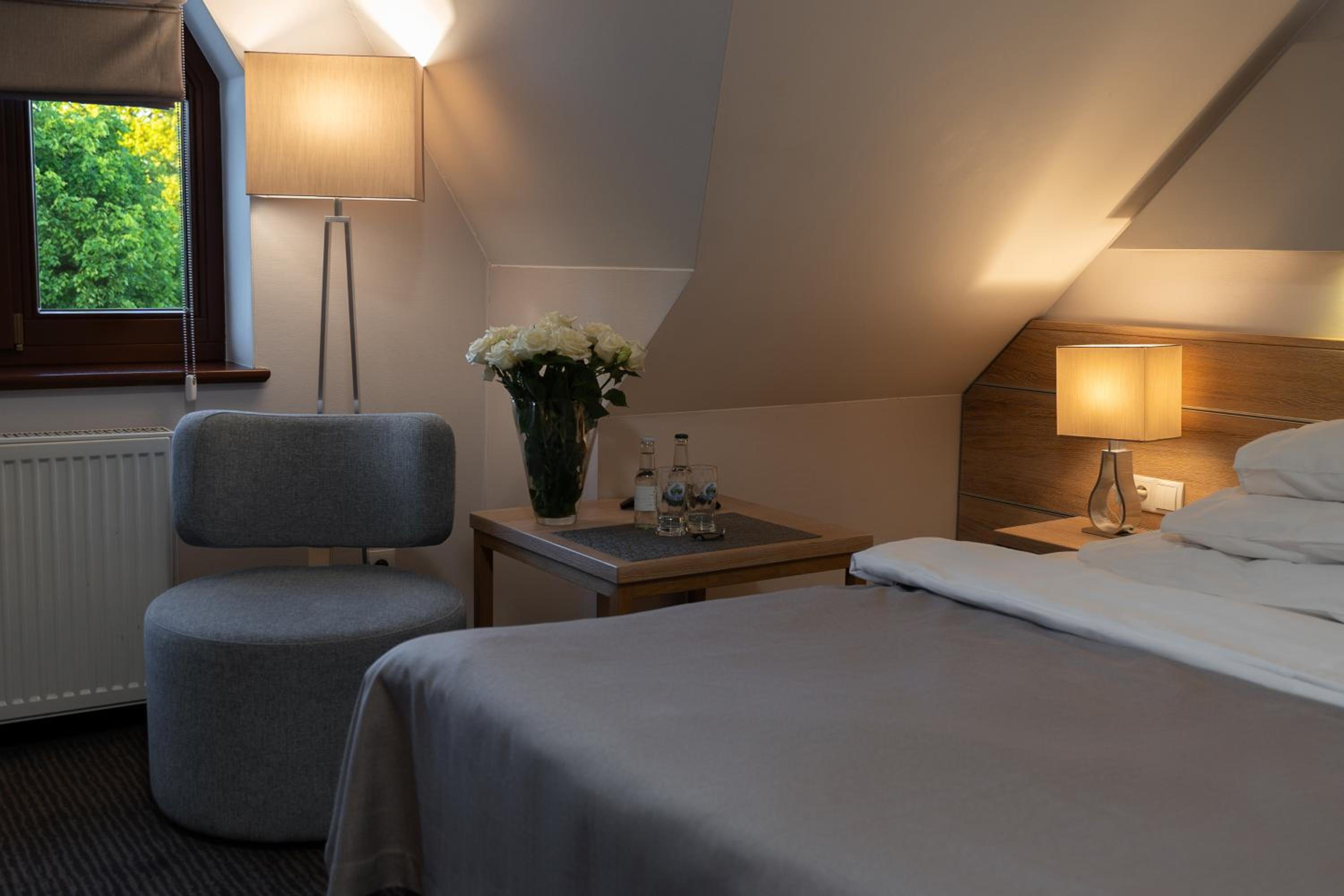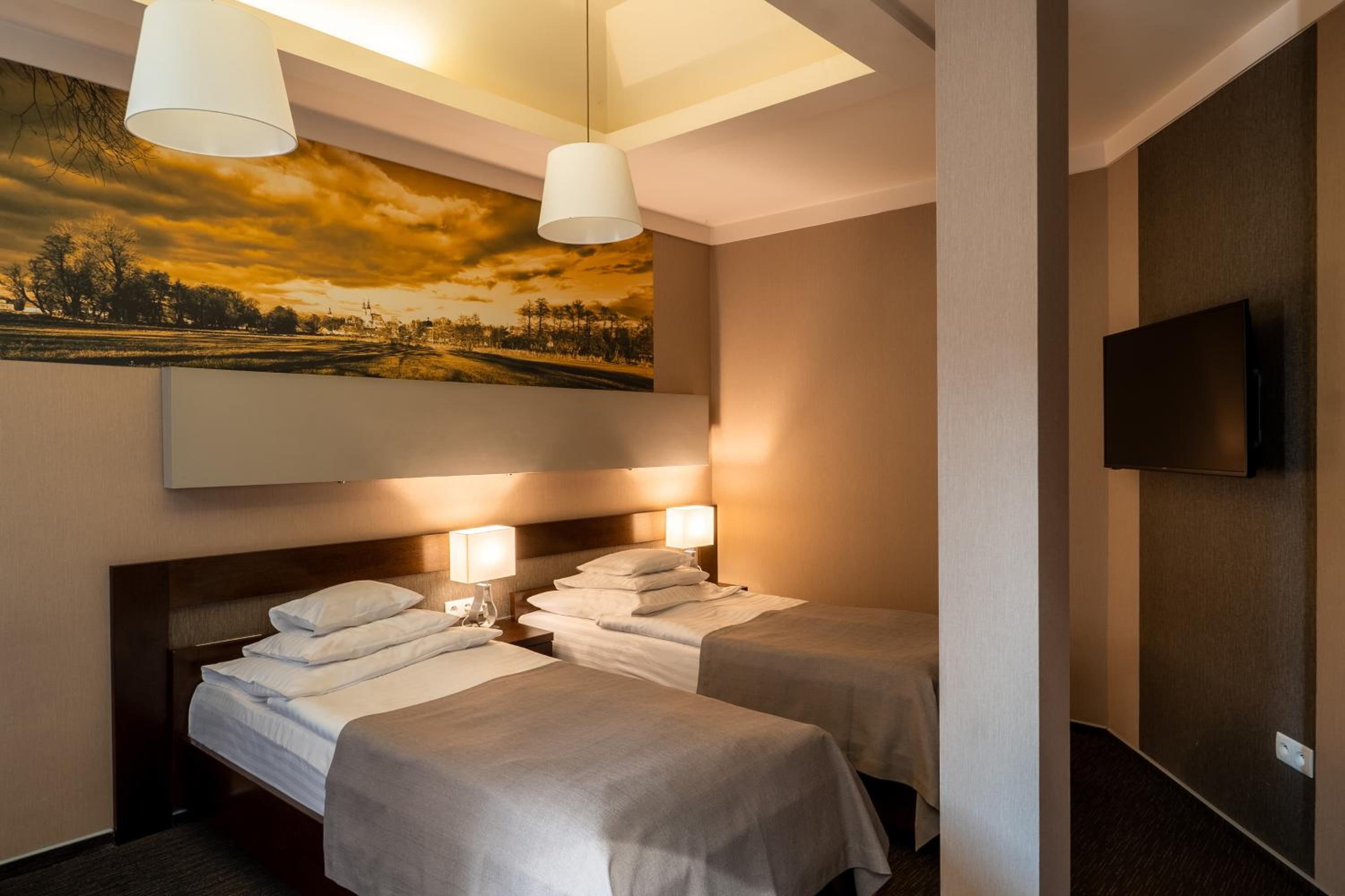 Bardzo, bardzo dobre śniadanie i miły personel, jest winda, ładny wystrój pokoju. Hotel jest ładny i ma wystarczający parking.