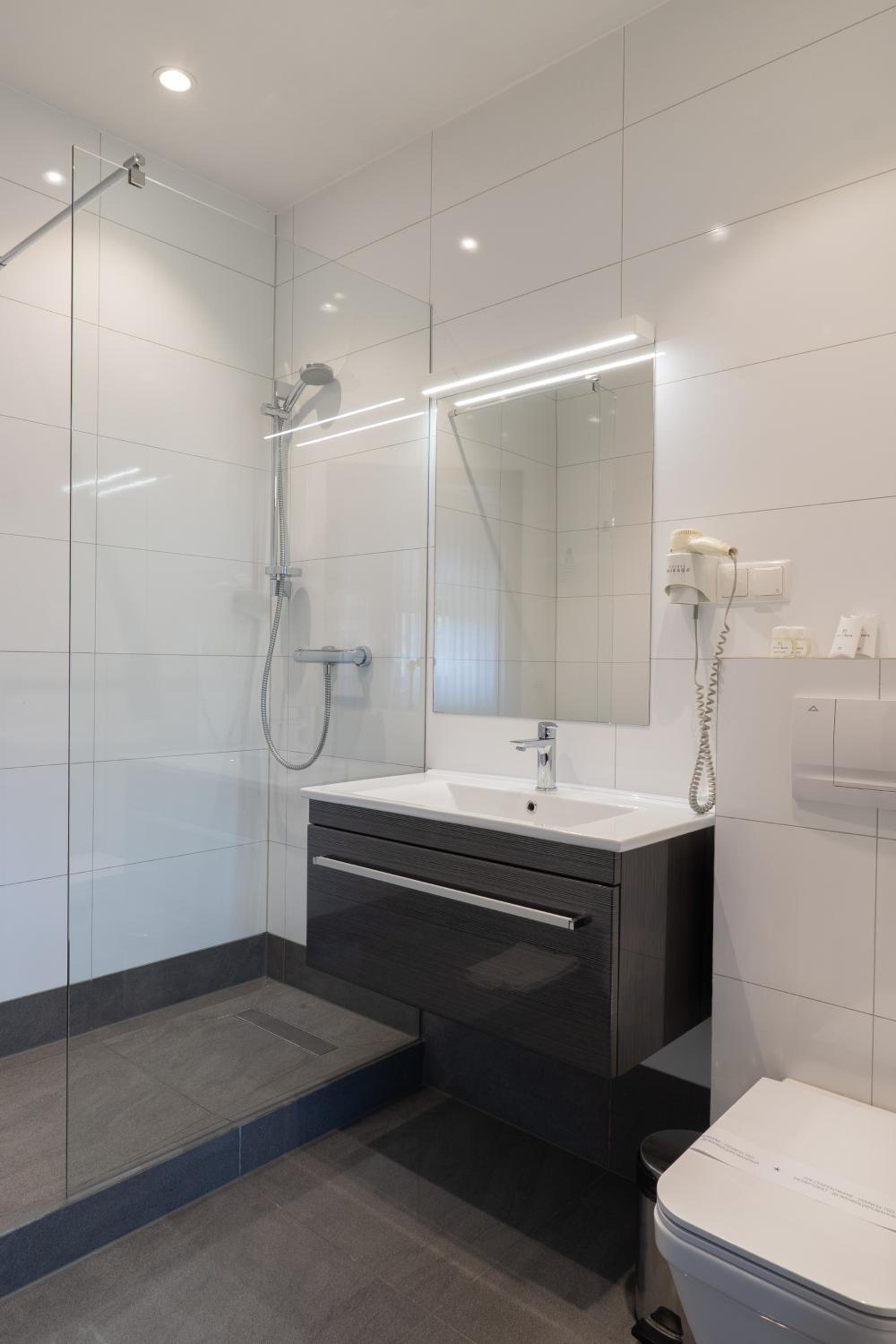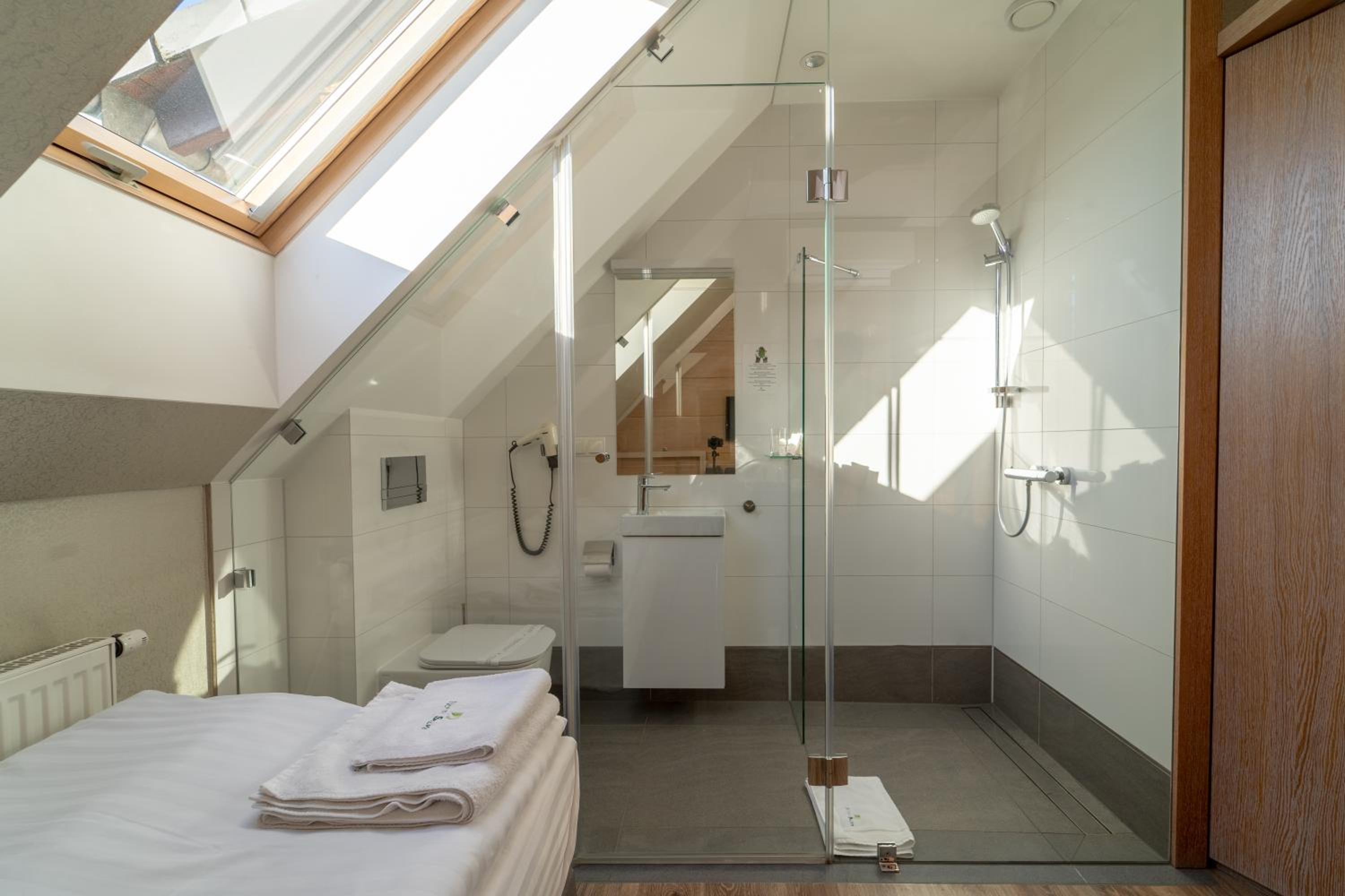 Wir hatten ein sehr grosses und schönes Zimmer. Alles neu und sauber. Sehr gute Betten, genügend Kissen. Im Bad jede Menge Ablagemöglichkeiten. Schöner grosser Fernseher. Etliche deutsche Programme. Sehr nettes Personal. Kostenloses Parken vor dem Haus. Beim Frühstück hat nichts gefehlt.