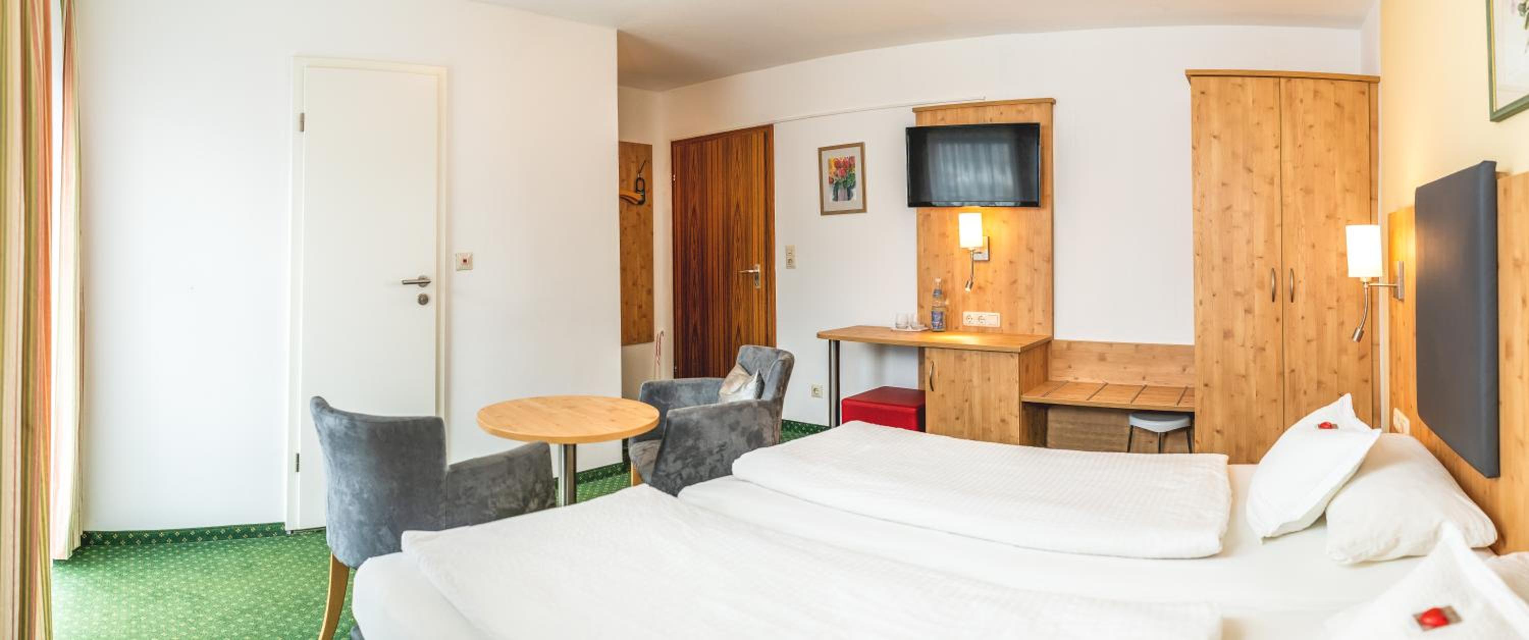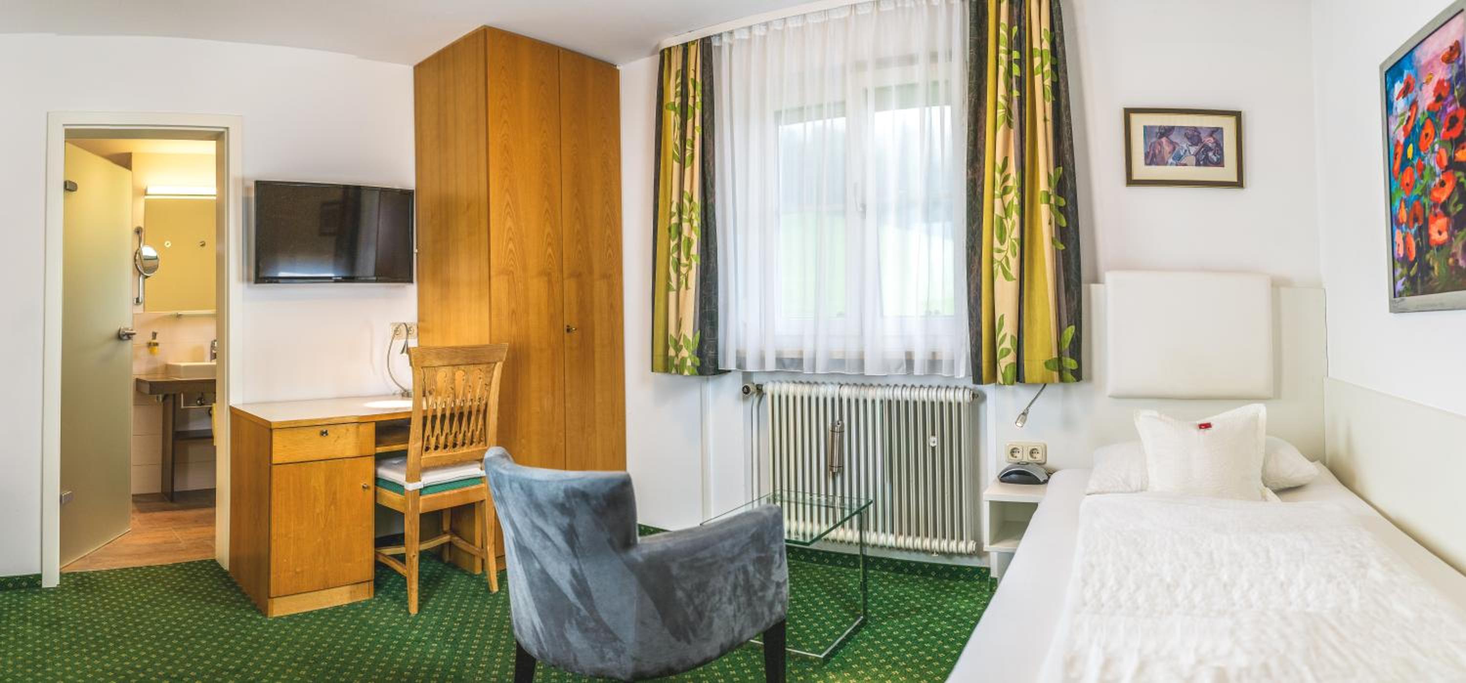 Wir wurden überaus freundlich empfangen und mit zahlreichen Infos über die Gegend und Unternehmungen versorgt. Unser Zimmer mit Balkon und Bergblick war sehr geräumig und gut ausgestattet. Die Betten waren sehr bequem, das Frühstück ließ für uns keine Wünsche offen. Jeden Morgen wurde jeder Gast freundlich begrüßt und nachgefragt, ob alles passt. Wir haben uns außerordentlich wohl gefühlt, nicht zu vergessen, die super ruhige Lage. Entspannung und Wohlbefinden pur!
