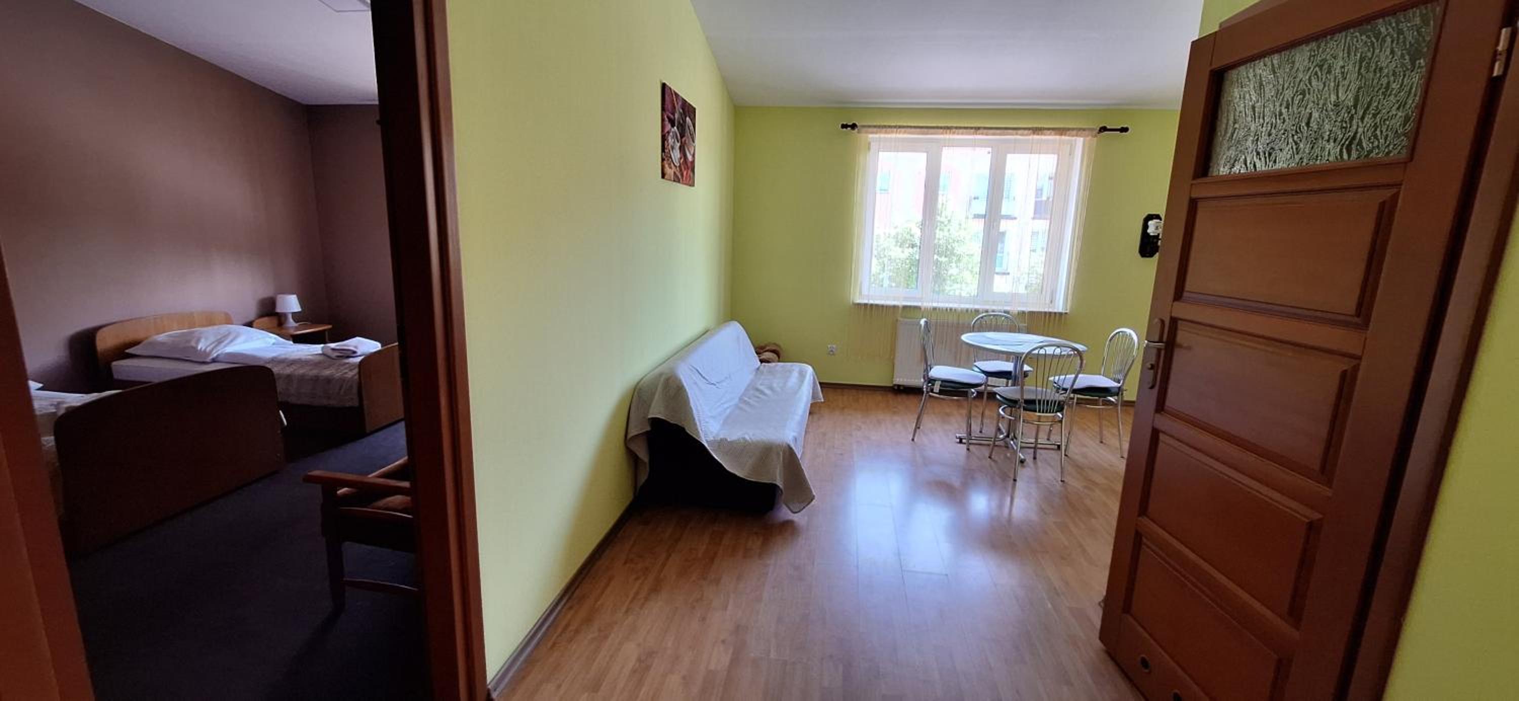 Bardzo dobra lokalizacja w odległości od rynku. 15 min spaceru. Blisko przystanki komunikacji oraz sklepy. Parking publiczny zaraz przy hotelu.
