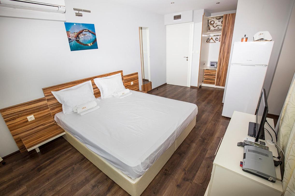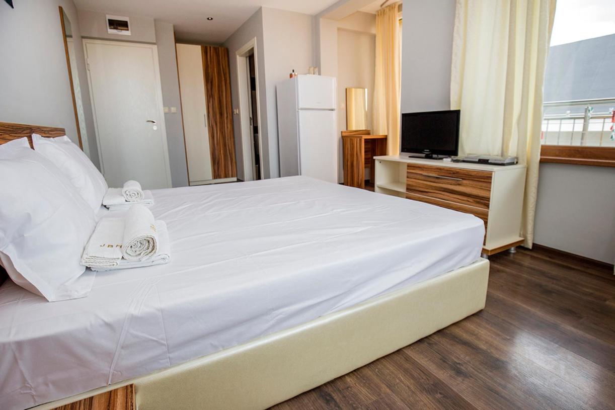 Indulge in modern, air-conditioned units at JBH Hotel, each equipped with a flat-screen TV and a private balcony, just steps away from Vlas’ beach.