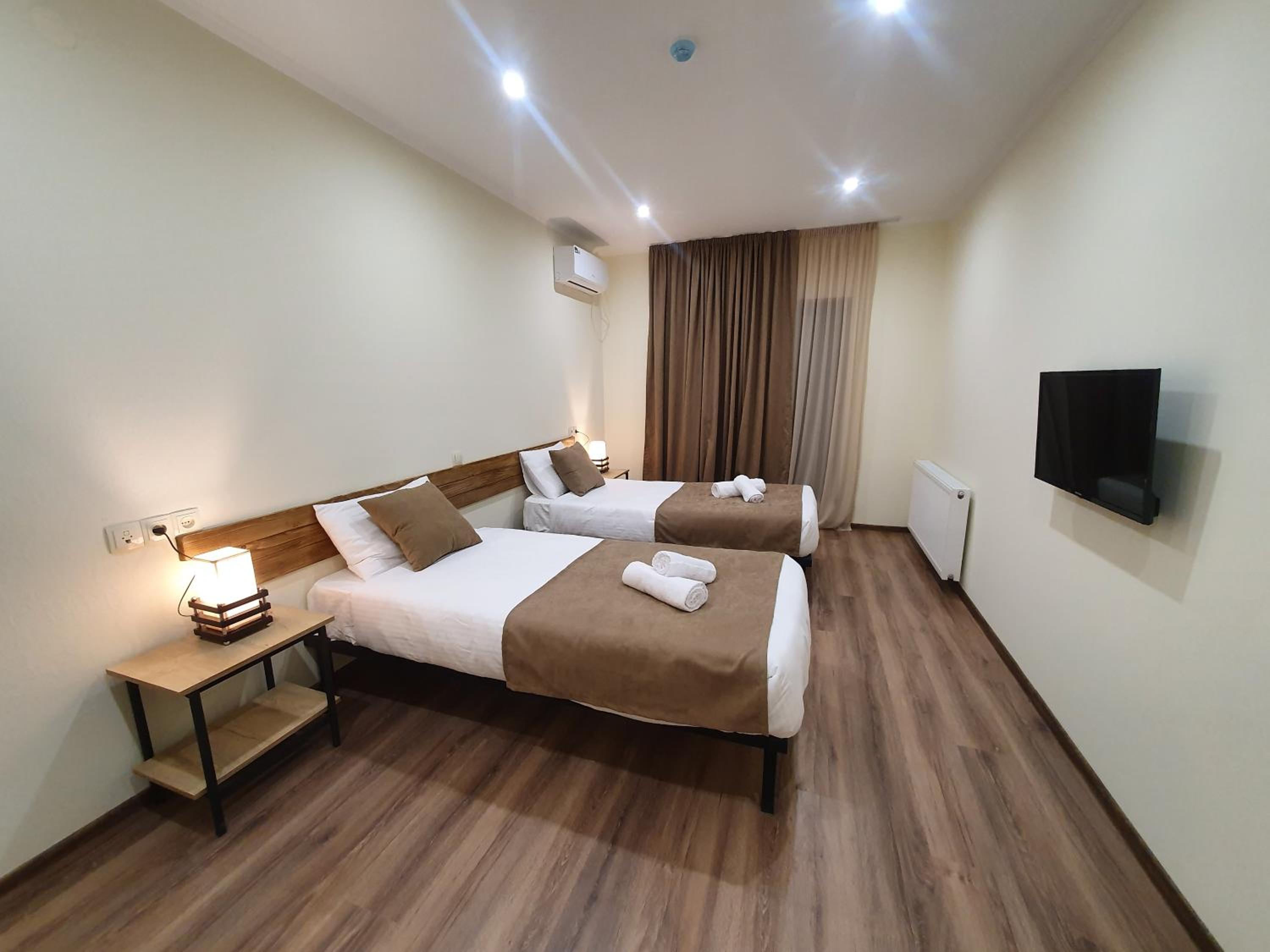 However, during our stay the central heating was not turned on, which made the room very cold. It was impossible to warm it up with the air conditioner, and this is quite disappointing for the price (120 GEL). The atmosphere felt empty and dark, and there was only one staff member present.