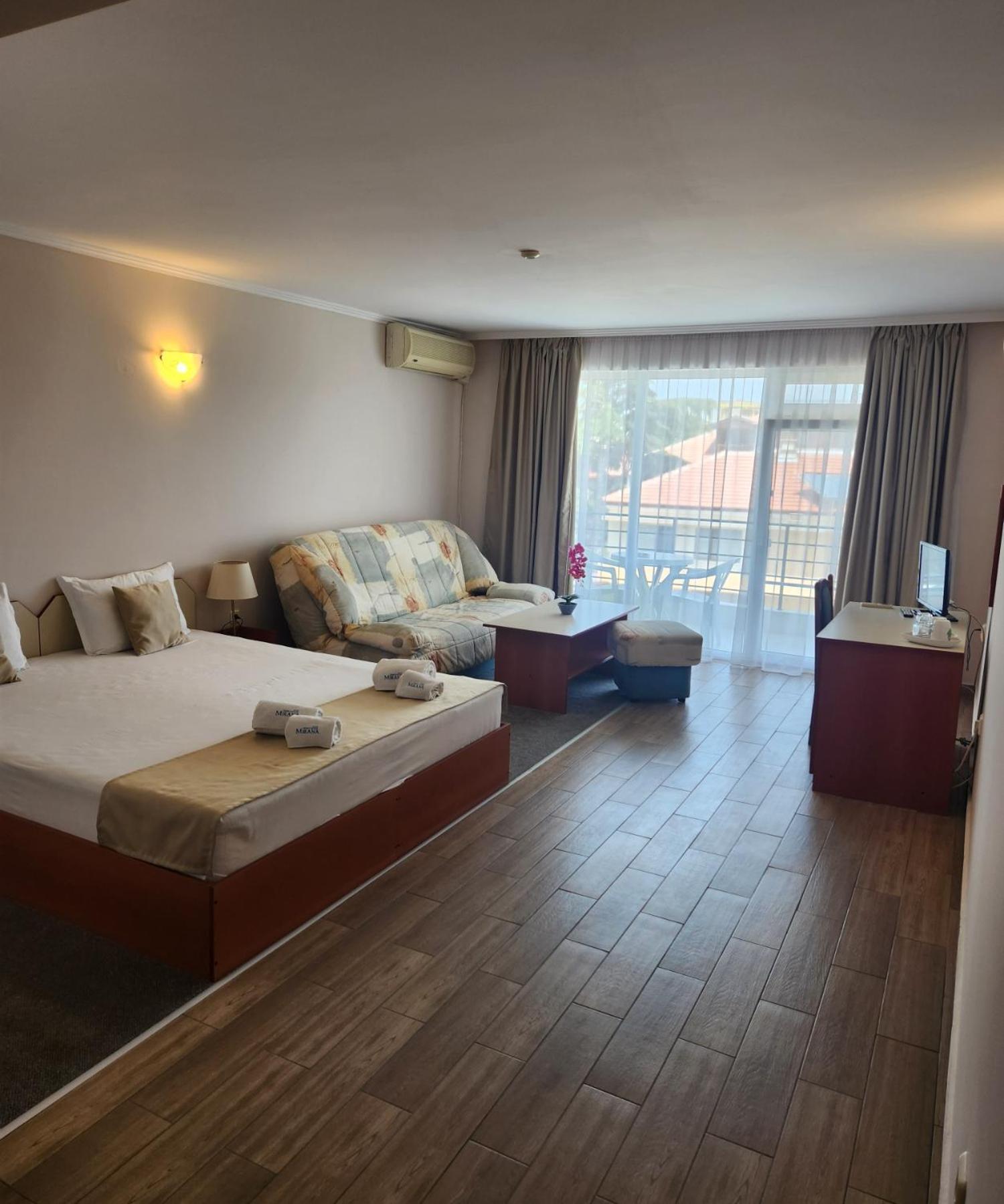 Enjoy comfortable and modern rooms with city views and balconies at Mirana Family Hotel. Each room comes equipped with all the amenities you need for a relaxing stay.