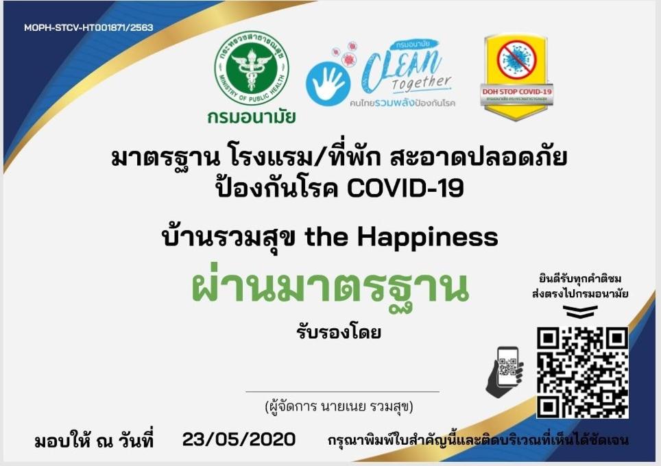 Each room at บ้านรวมสุข the Happiness is equipped with a desk, flat-screen TV, and complimentary toiletries. The hotel ensures a comfortable and convenient stay for all guests.