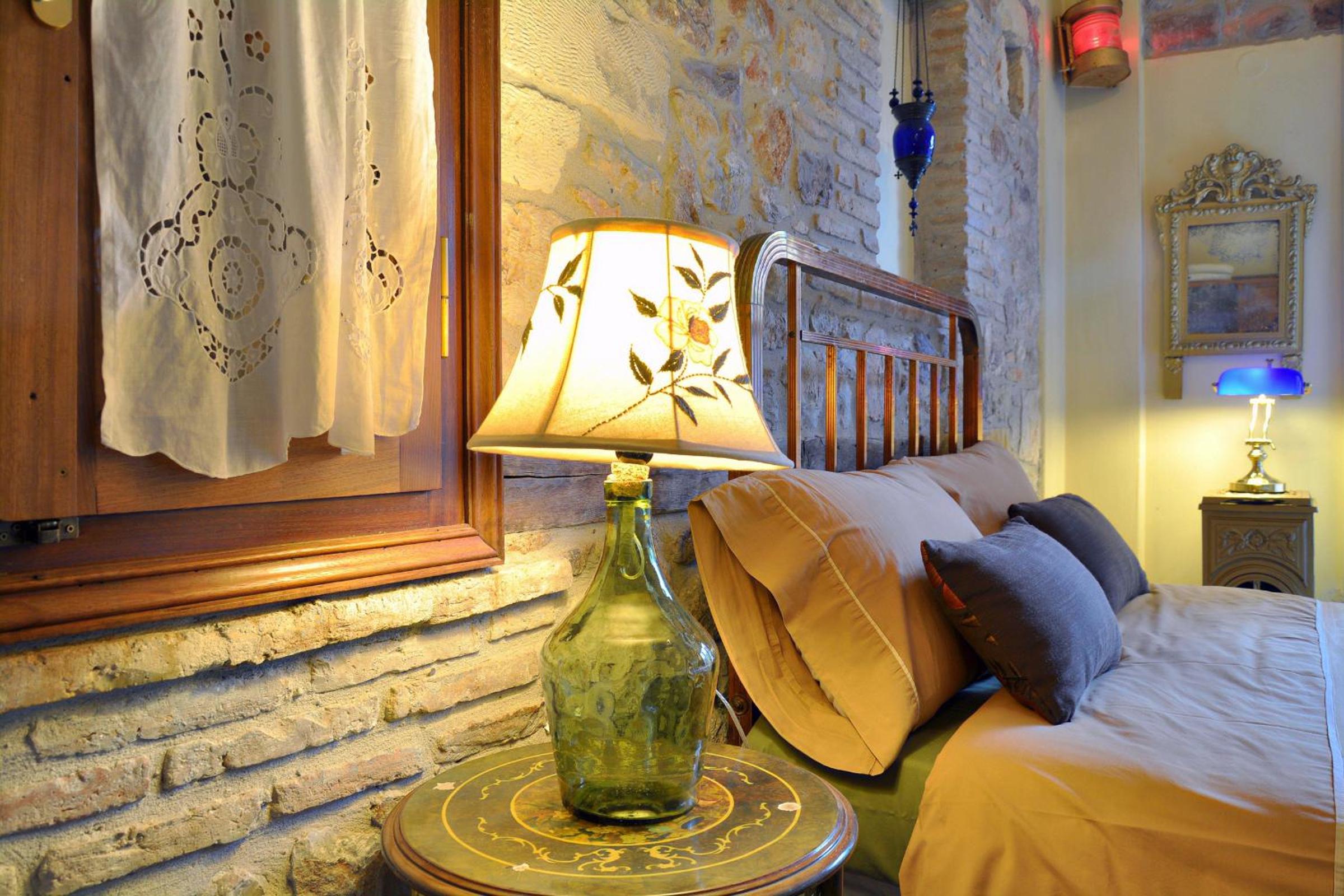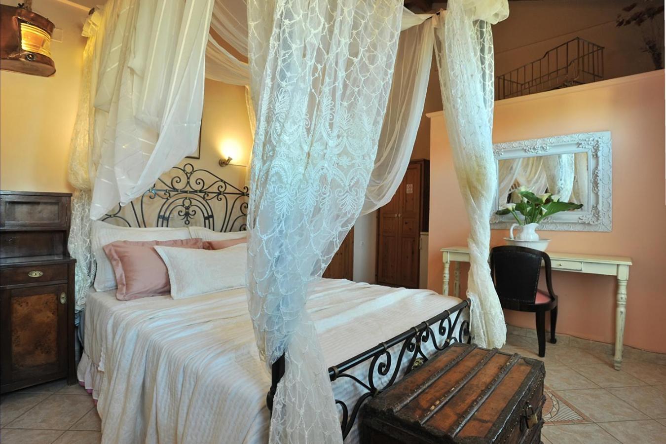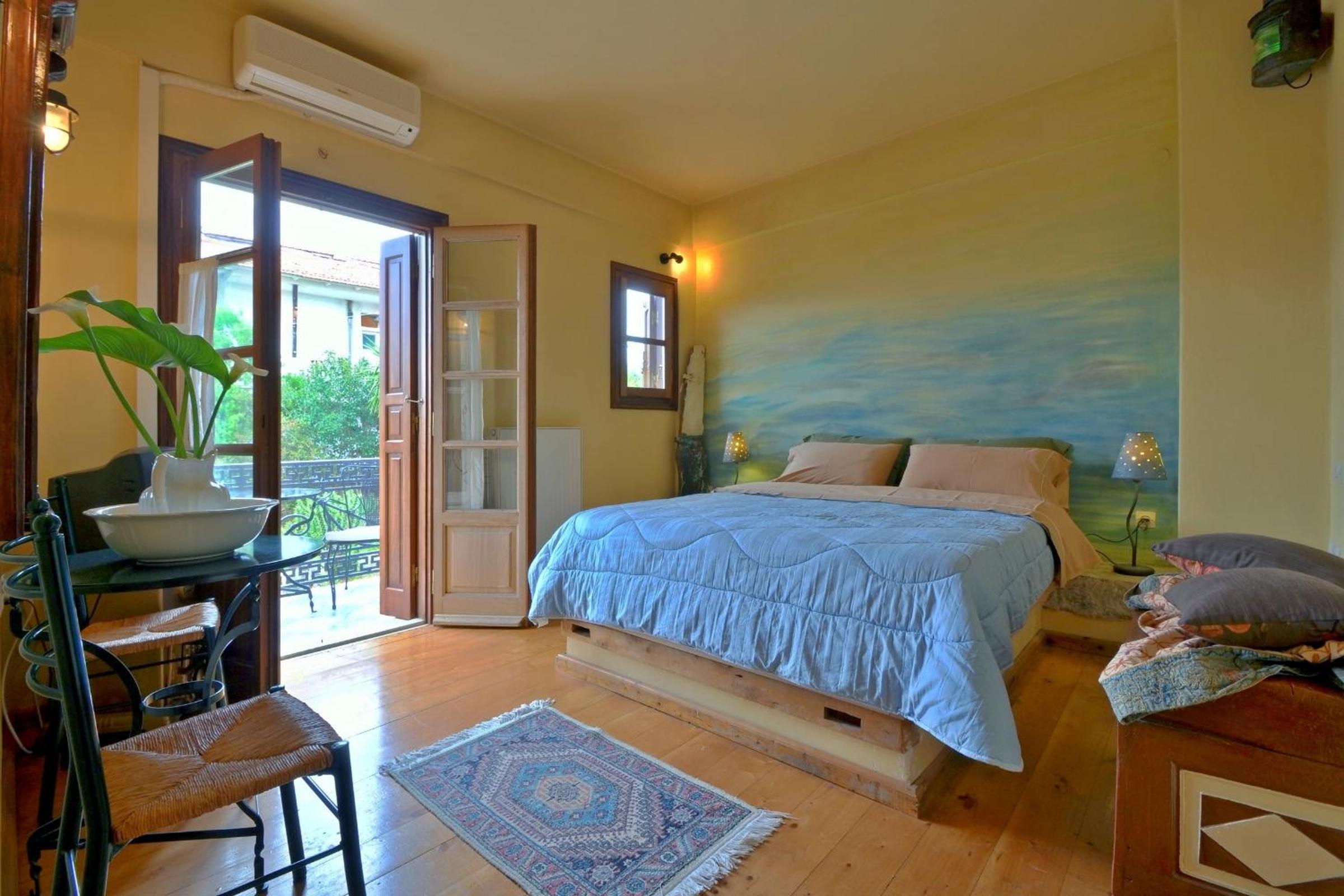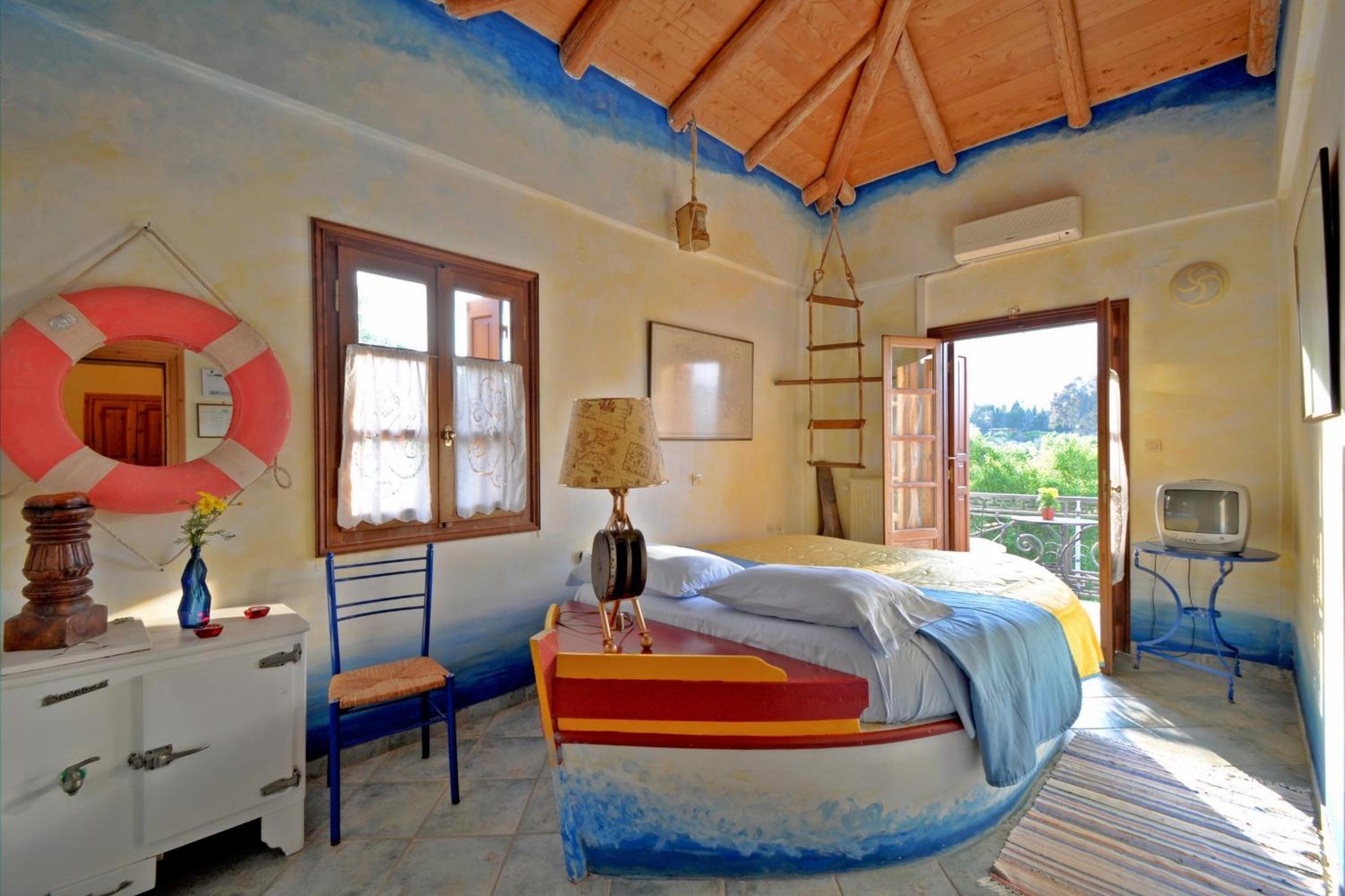 Archontiko Art Hotel offers romantically decorated air-conditioned rooms with unique features like stone or painted walls, and round or boat-shaped beds. Each room includes a balcony and modern amenities such as a flat-screen TV, refrigerator, and free WiFi.