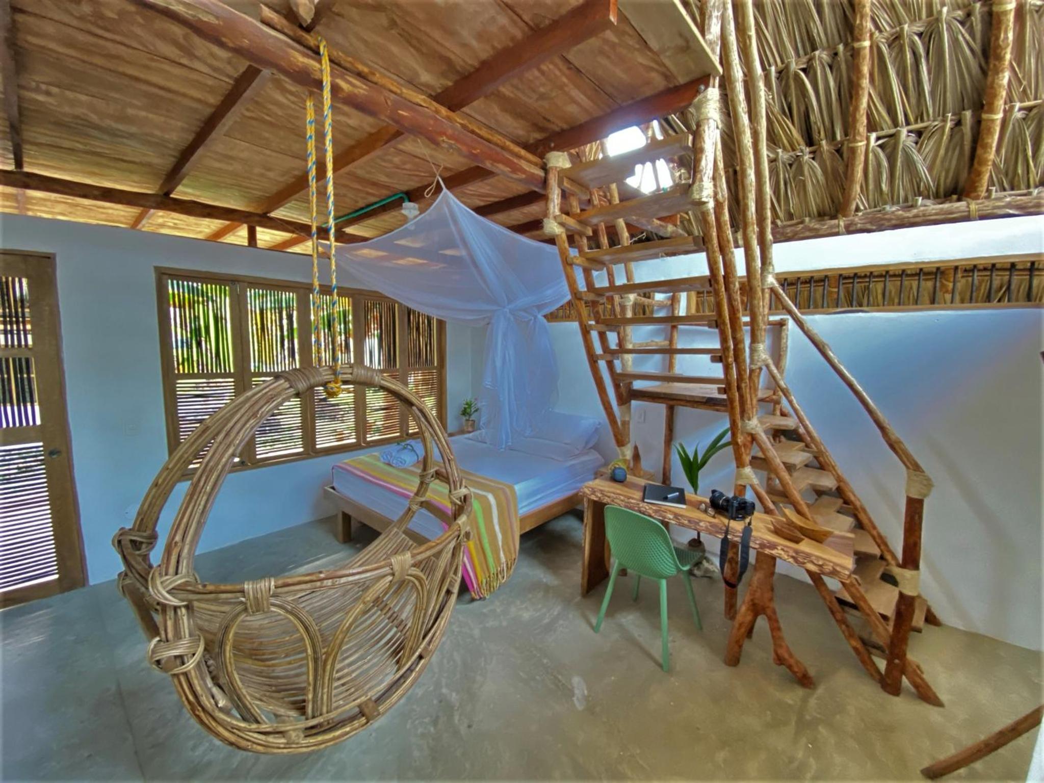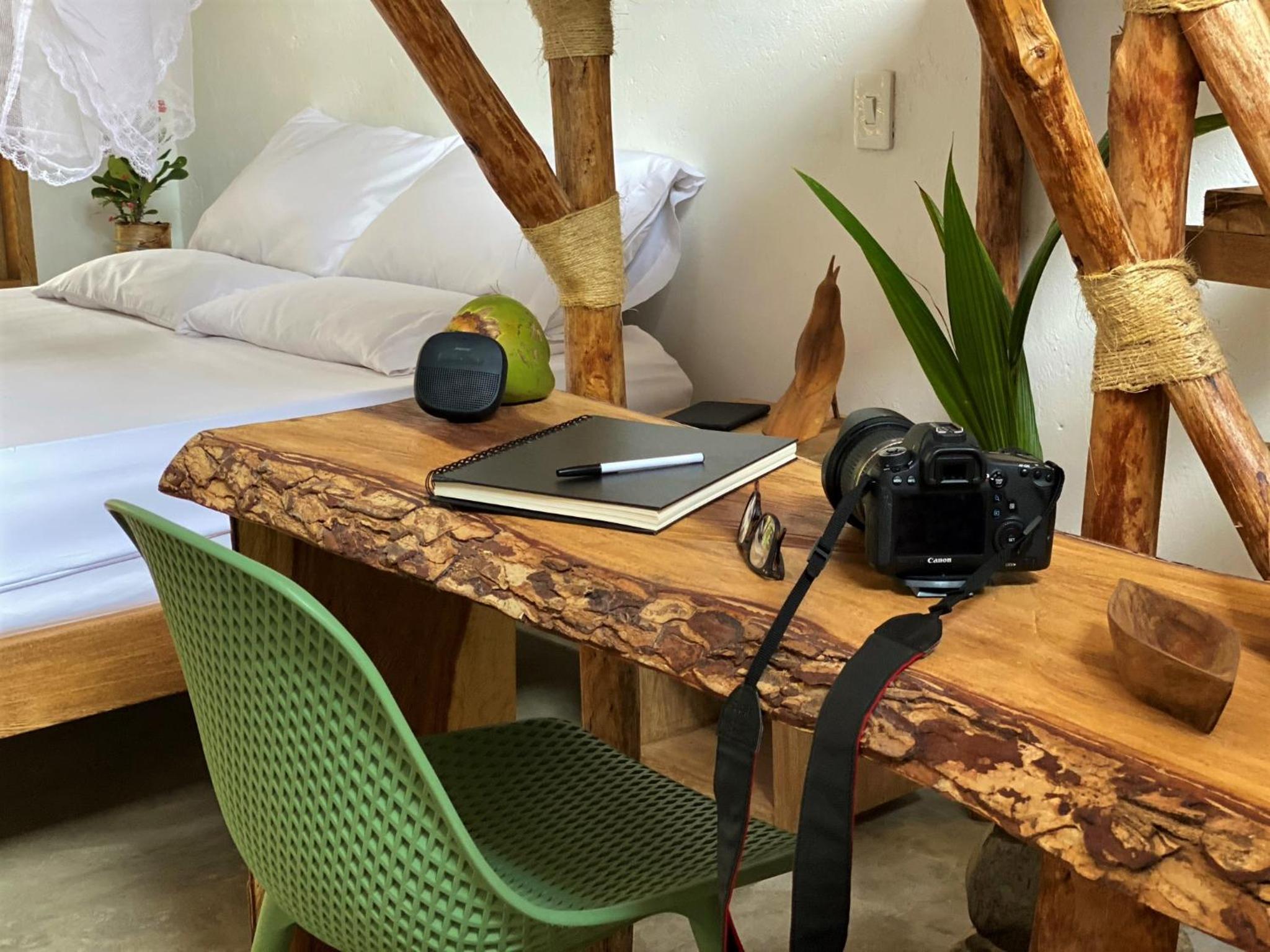 The quietness, the nature surrounding the location, the beautiful slots in the Palms trees of the property, the easiness to access to the ecolodge. The super welcoming, helpful and friendly staff.