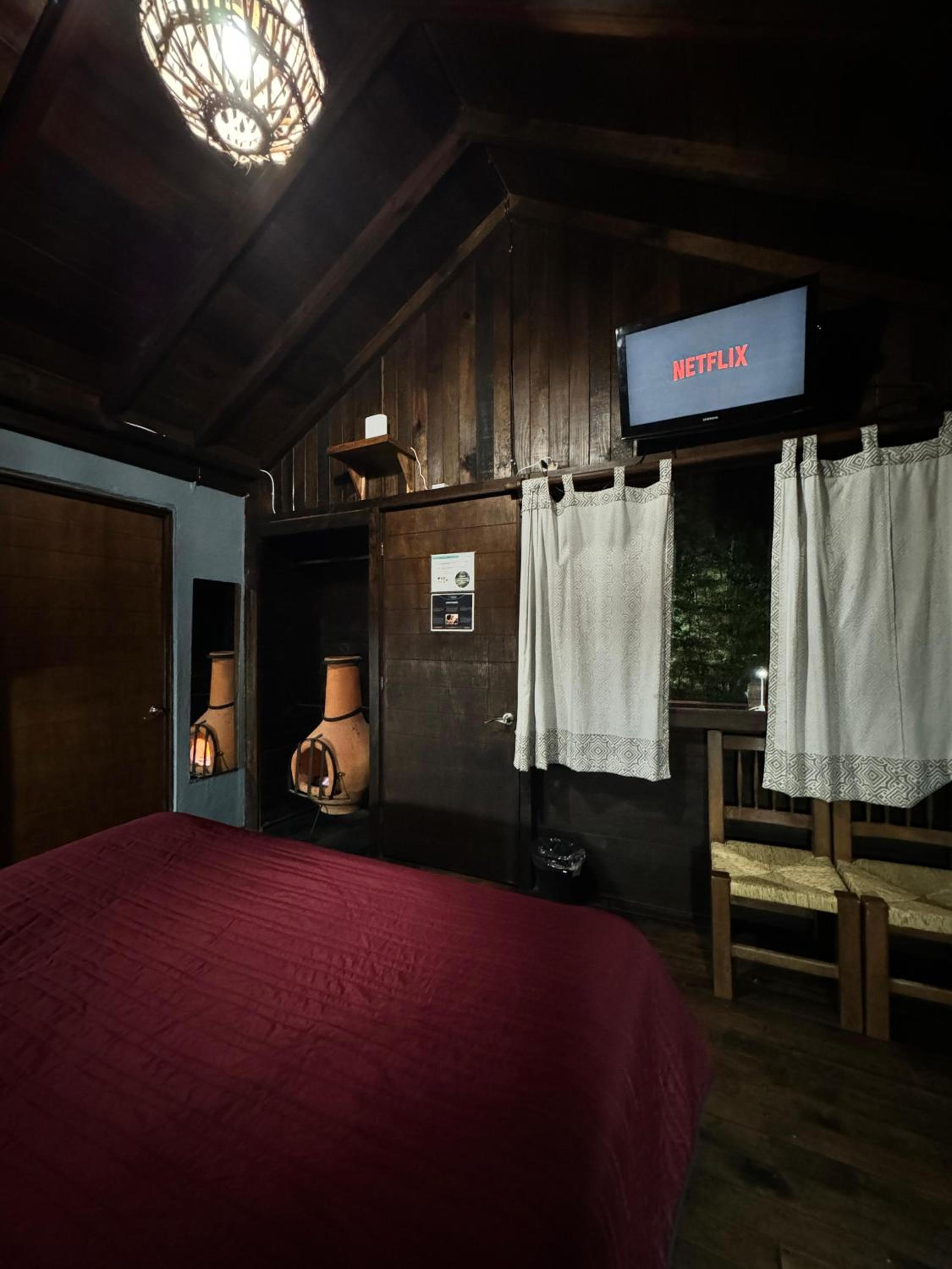 La ropa de cama. Las almohadas estan en muy mal estado. Urge cambiarlas. Y poner papel higienico de mejor calidad. Poner mejor luz en la cabaña... solo un buró tenia lampara de noche y en mal estado. y el foco central muy bajito. Muy dificil leer dentro de la cabaña. Ojalá tuvieran en préstamo o renta juegos de mesa y una sala de juegos, para disfrutar la tarde lluviosa.