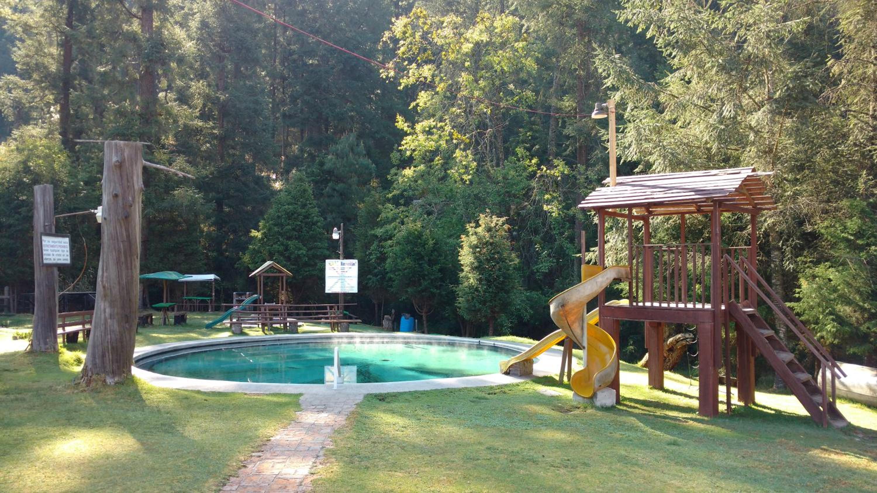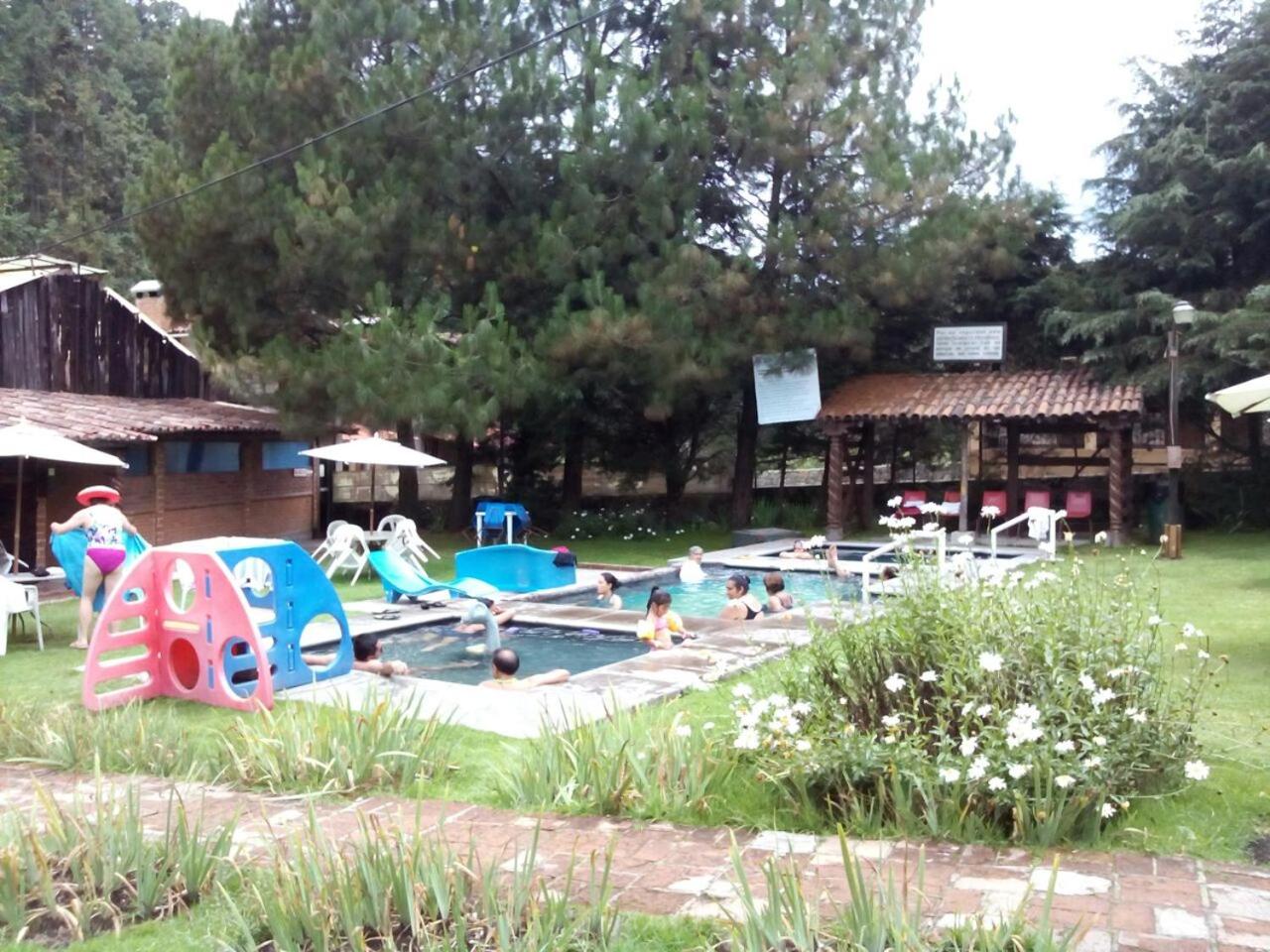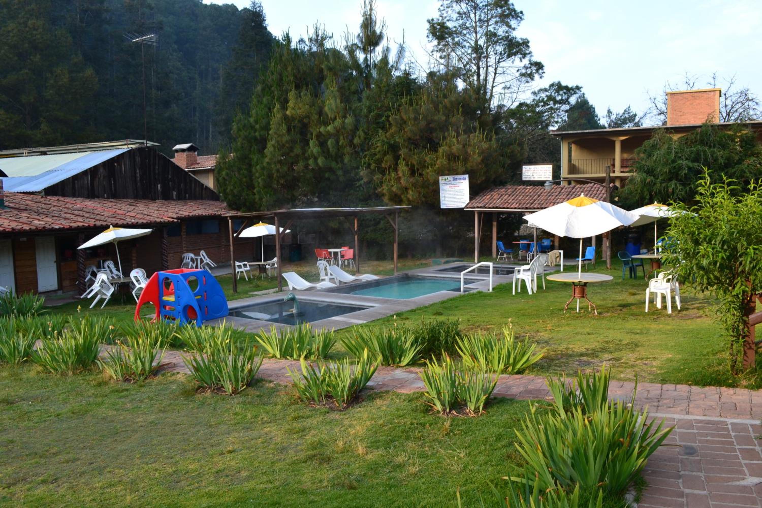 The Club Tejamaniles provides a tranquil escape with its on-site hot springs and playground equipment, offering guests a secluded nature retreat away from the city.