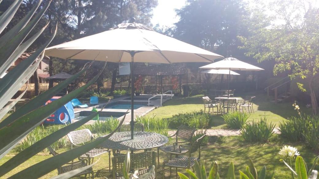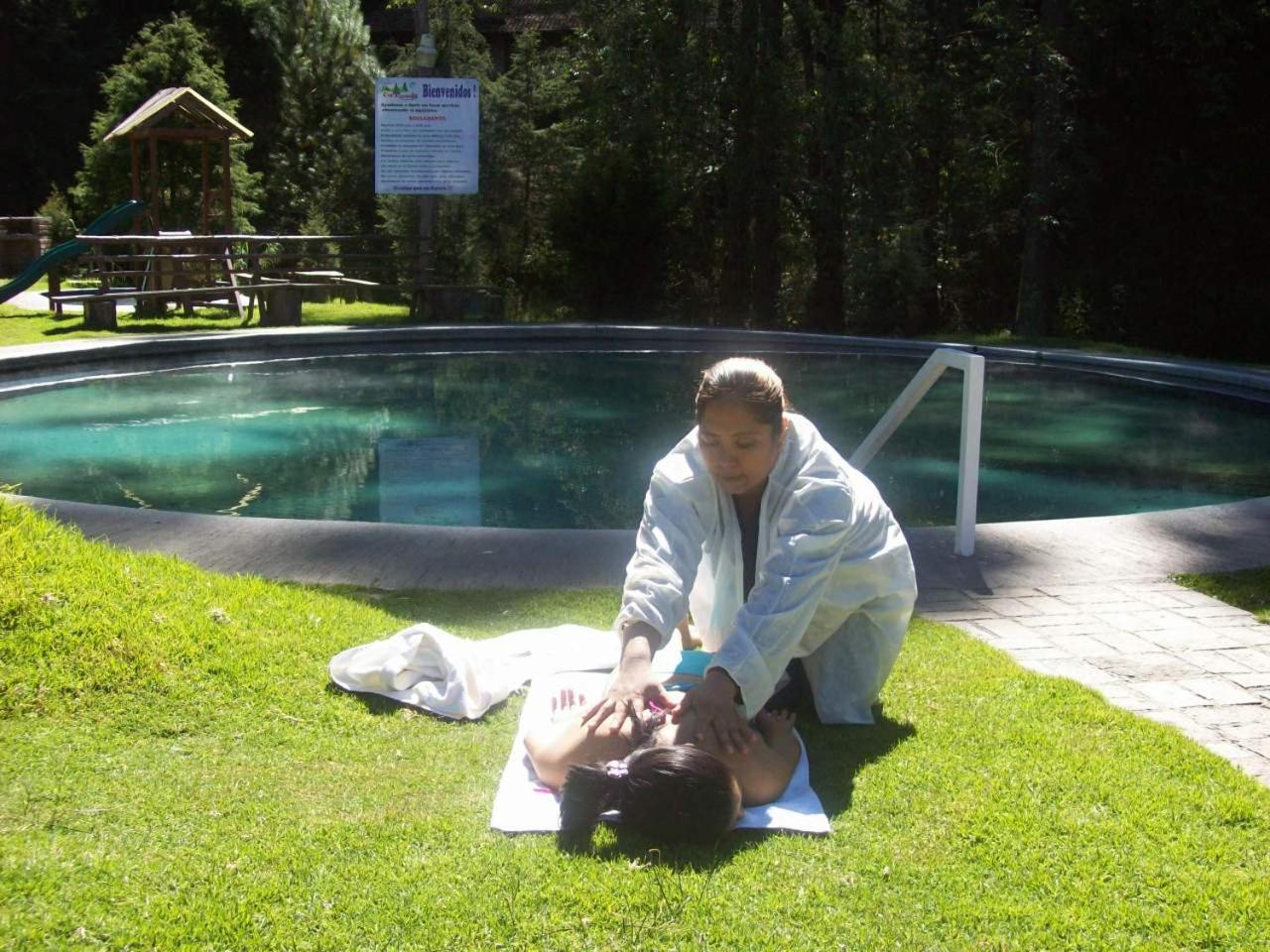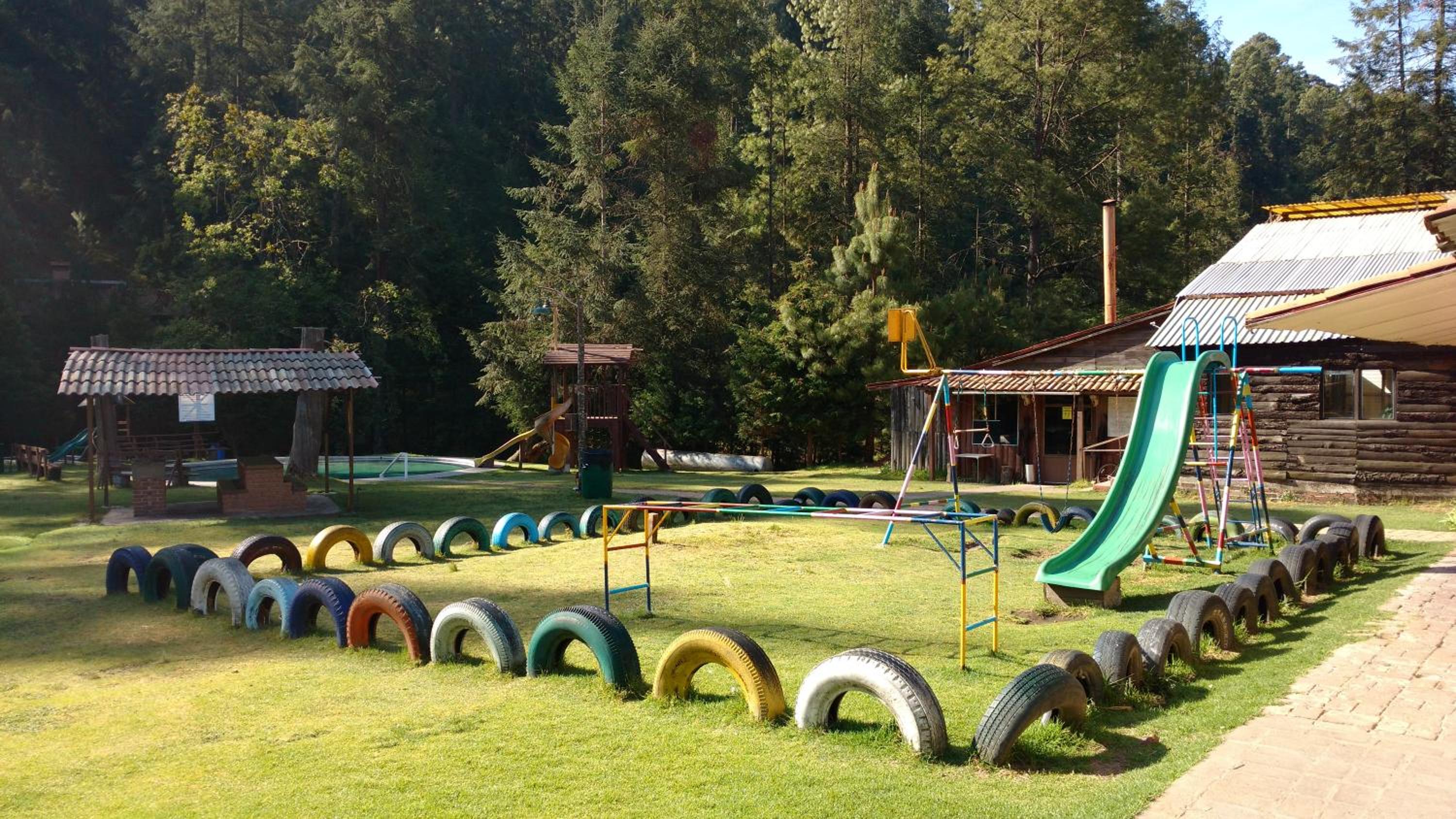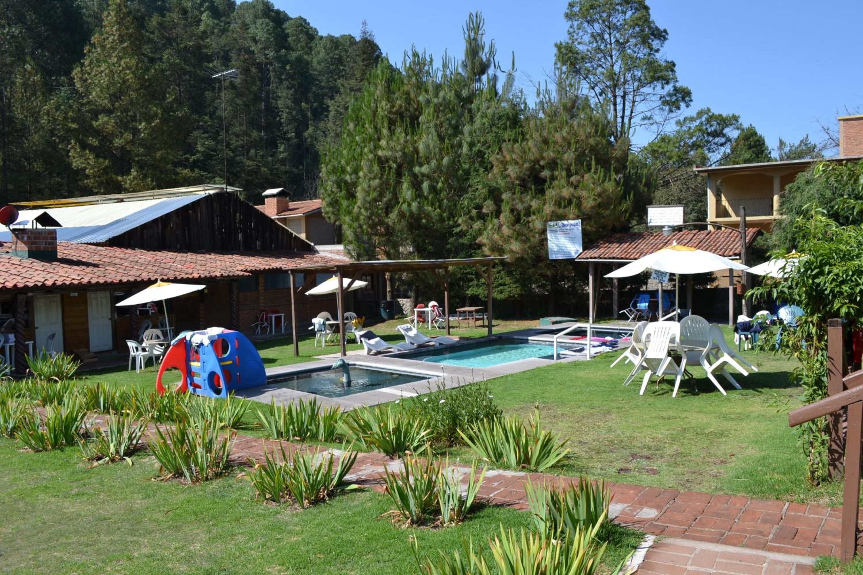 The Club Tejamaniles provides a tranquil escape with its on-site hot springs and playground equipment, offering guests a secluded nature retreat away from the city.