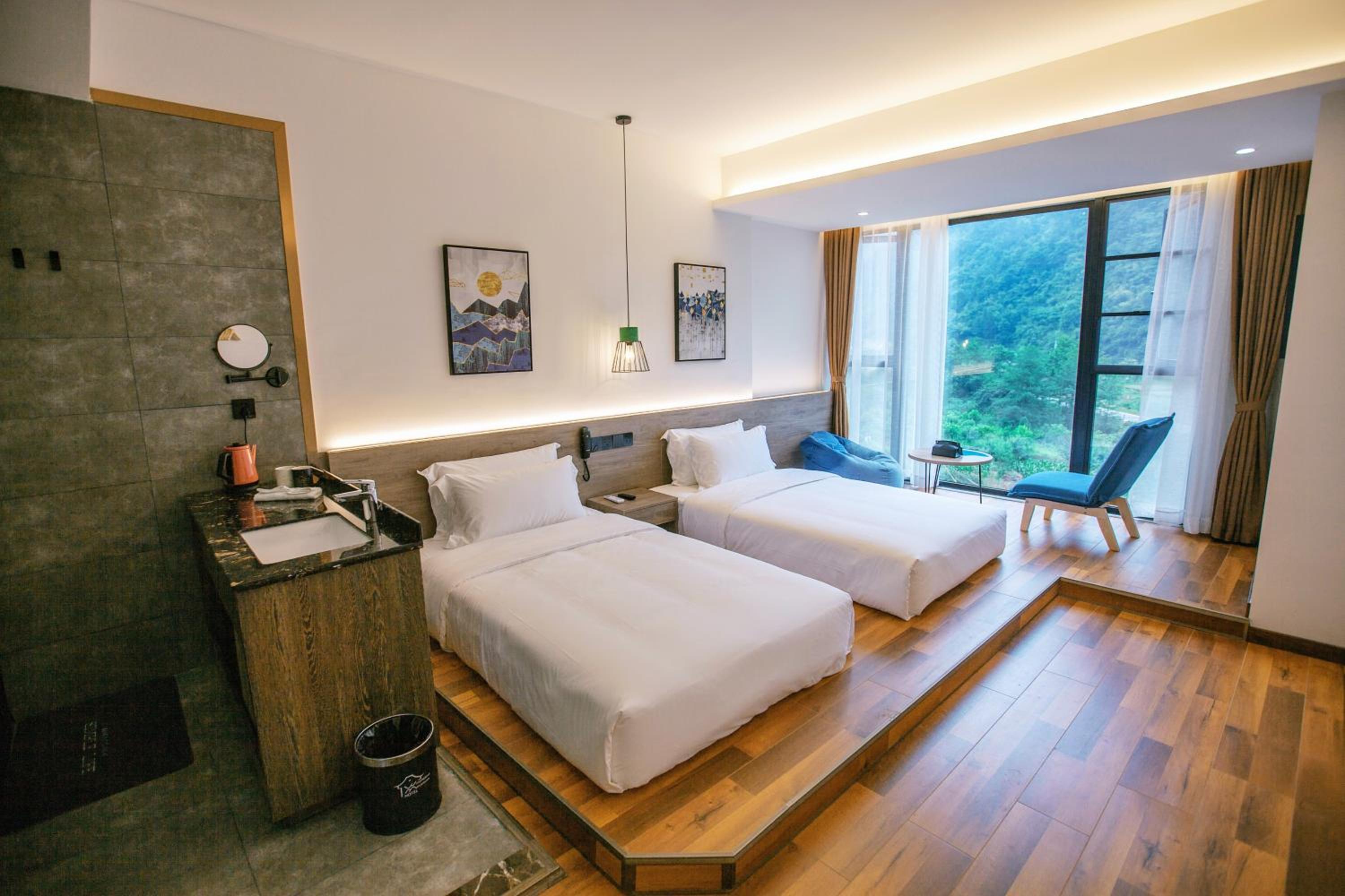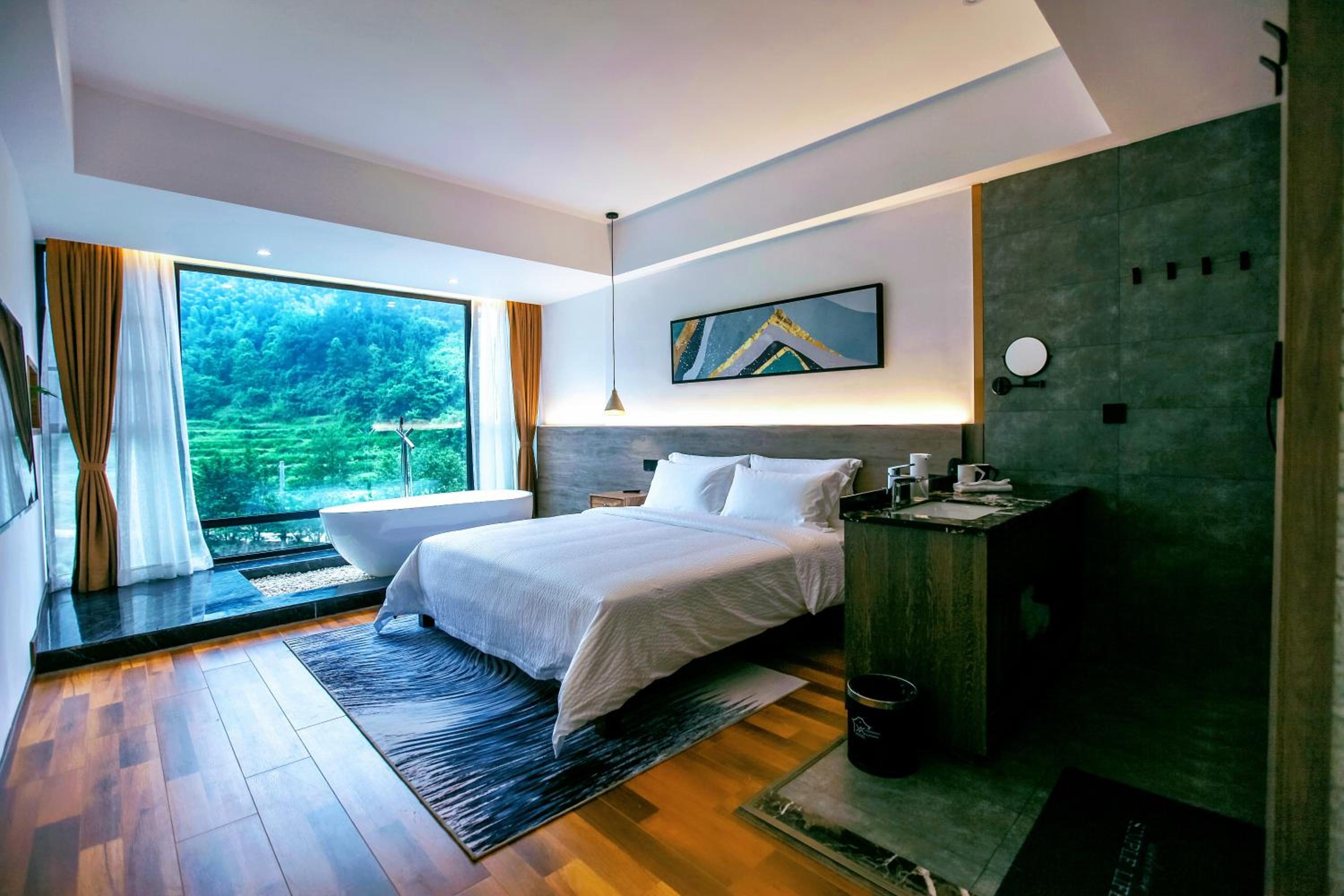 Whispering mountains boutique hotel, nestled in Zhangjiajie, offers a tranquil escape just 1.3 km from Yangjiajie Scenic Area. The air-conditioned rooms, equipped with modern amenities, provide a comfortable stay. Indulge in a delicious meal at the on-site restaurant or unwind in the garden.