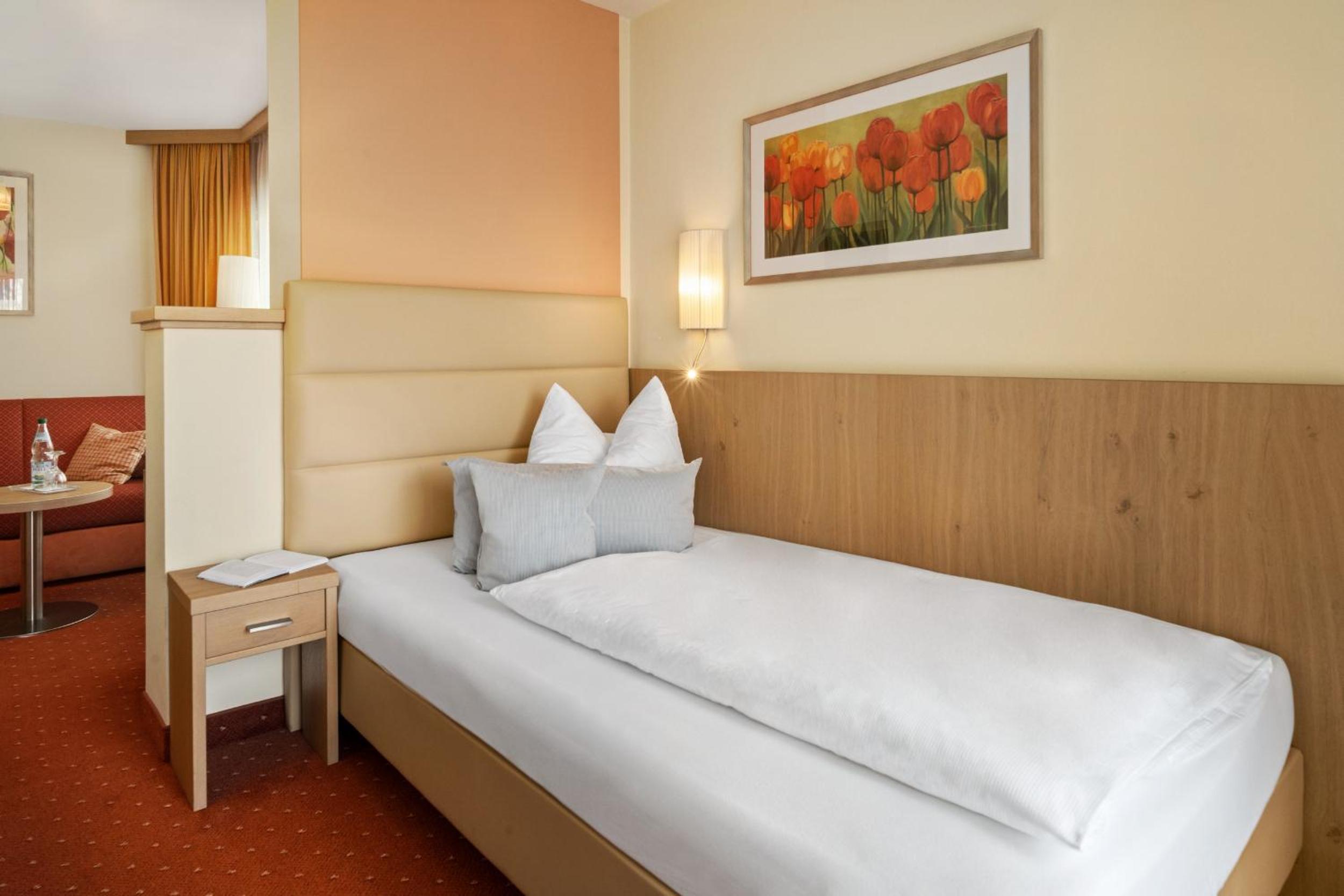 Mein Einzelzimmer mit Balkon lag sehr ruhig nach hinten raus und das Bett war mit 120 cm schön breit und auch die Matratze sehr bequem! Habe super geschlafen!
