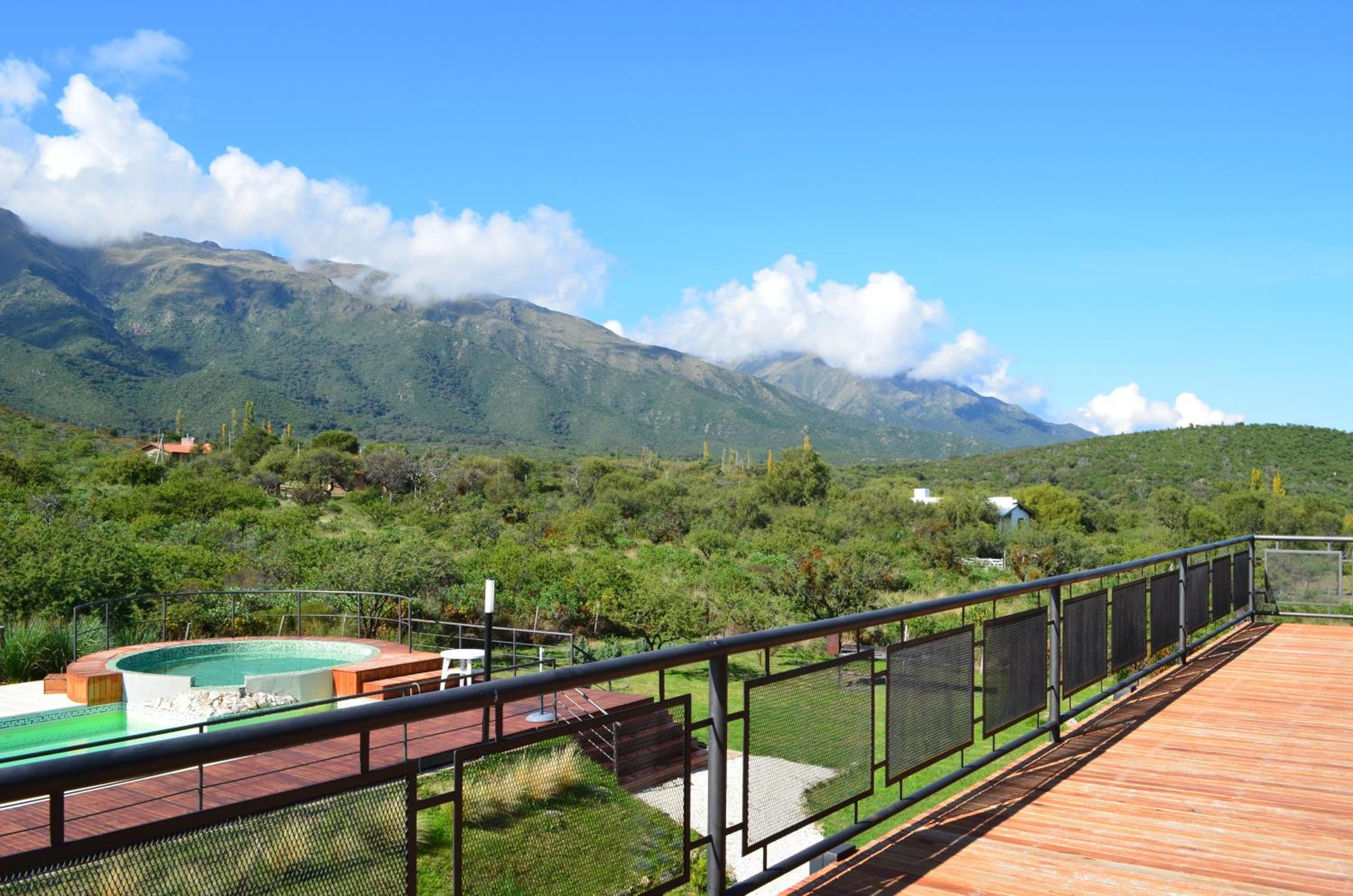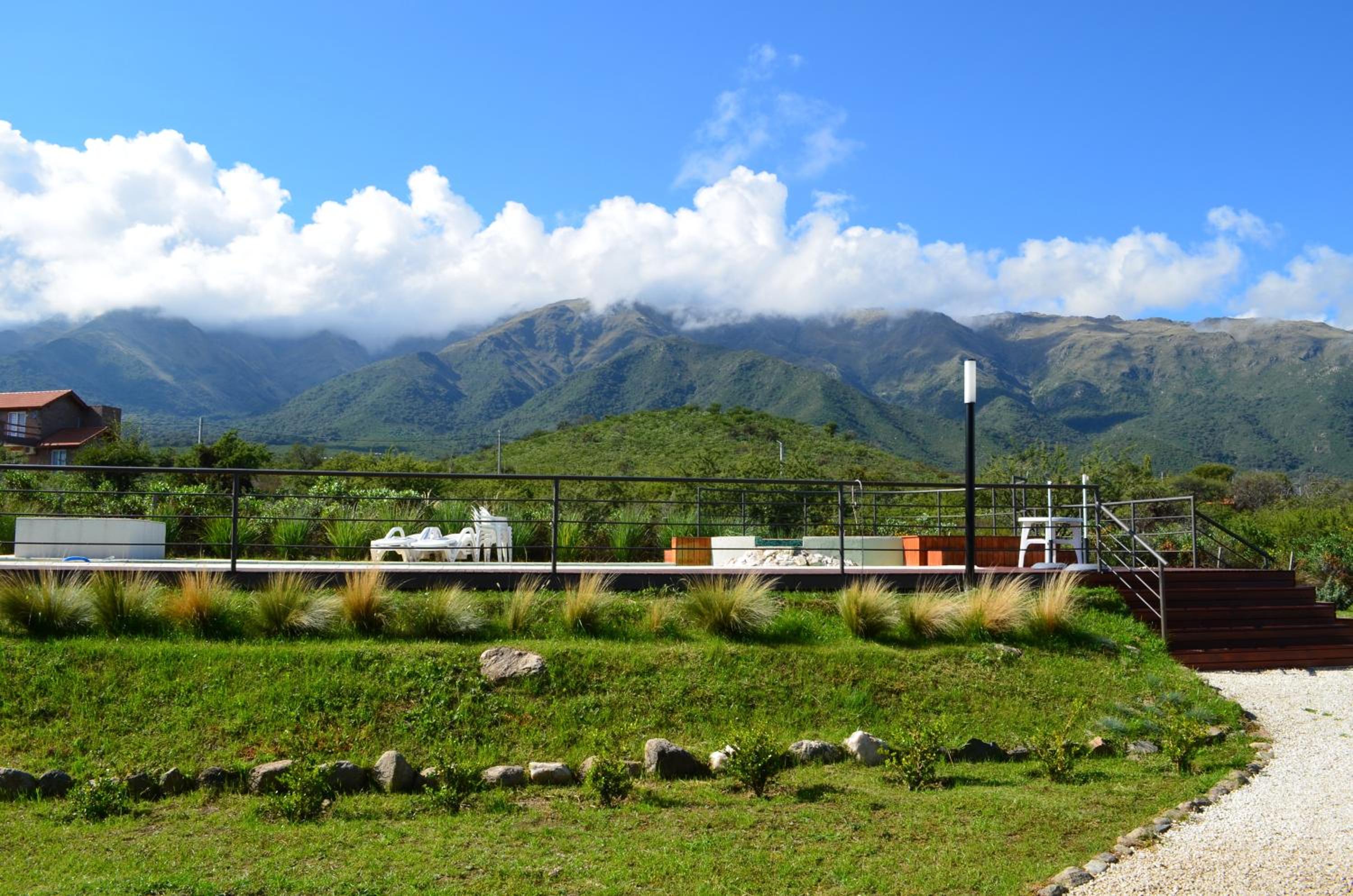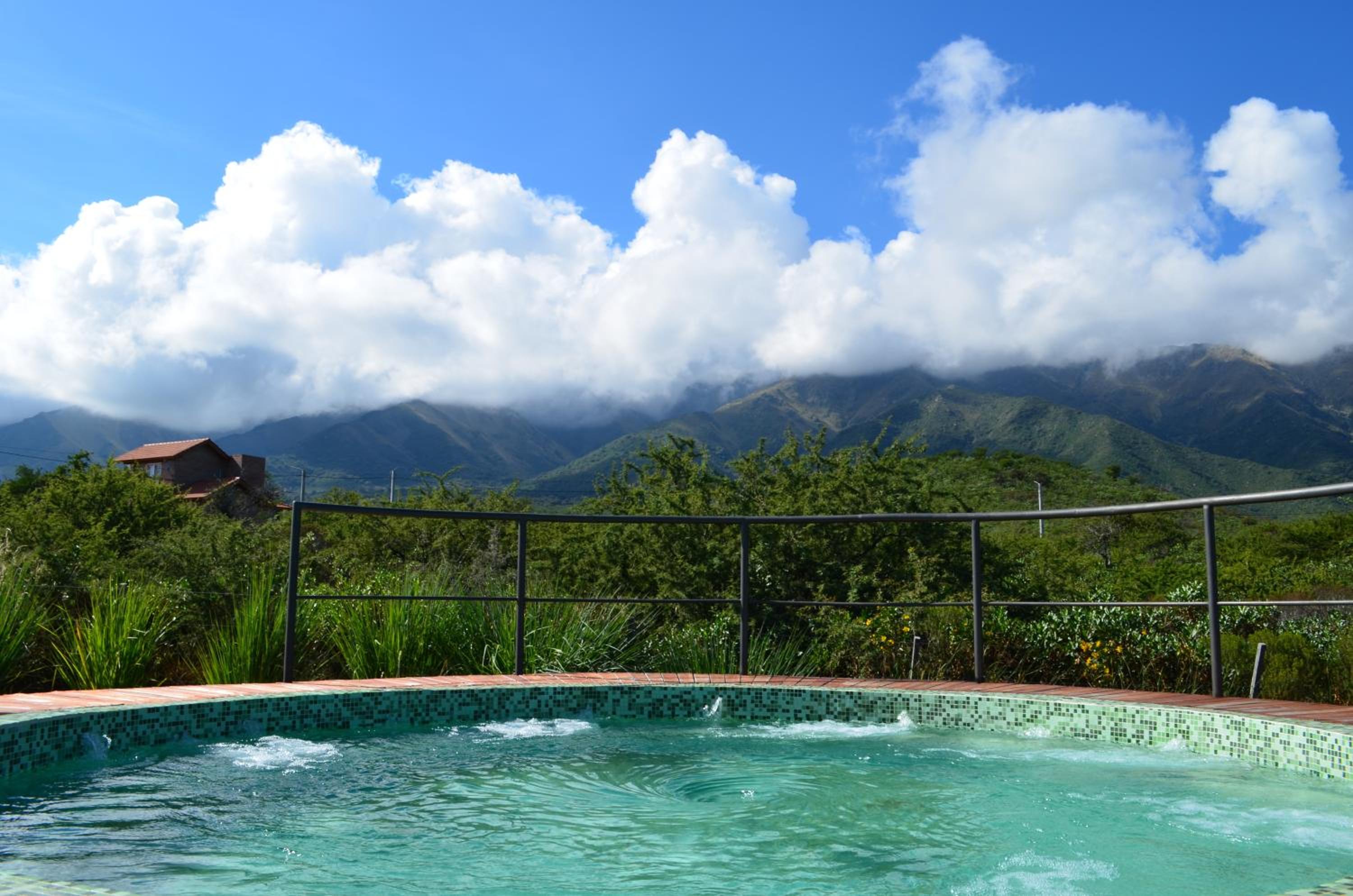 Rahuen Hotel/Restaurant in Carpintería boasts a serene garden with an inviting outdoor pool, perfect for relaxation under the sun.