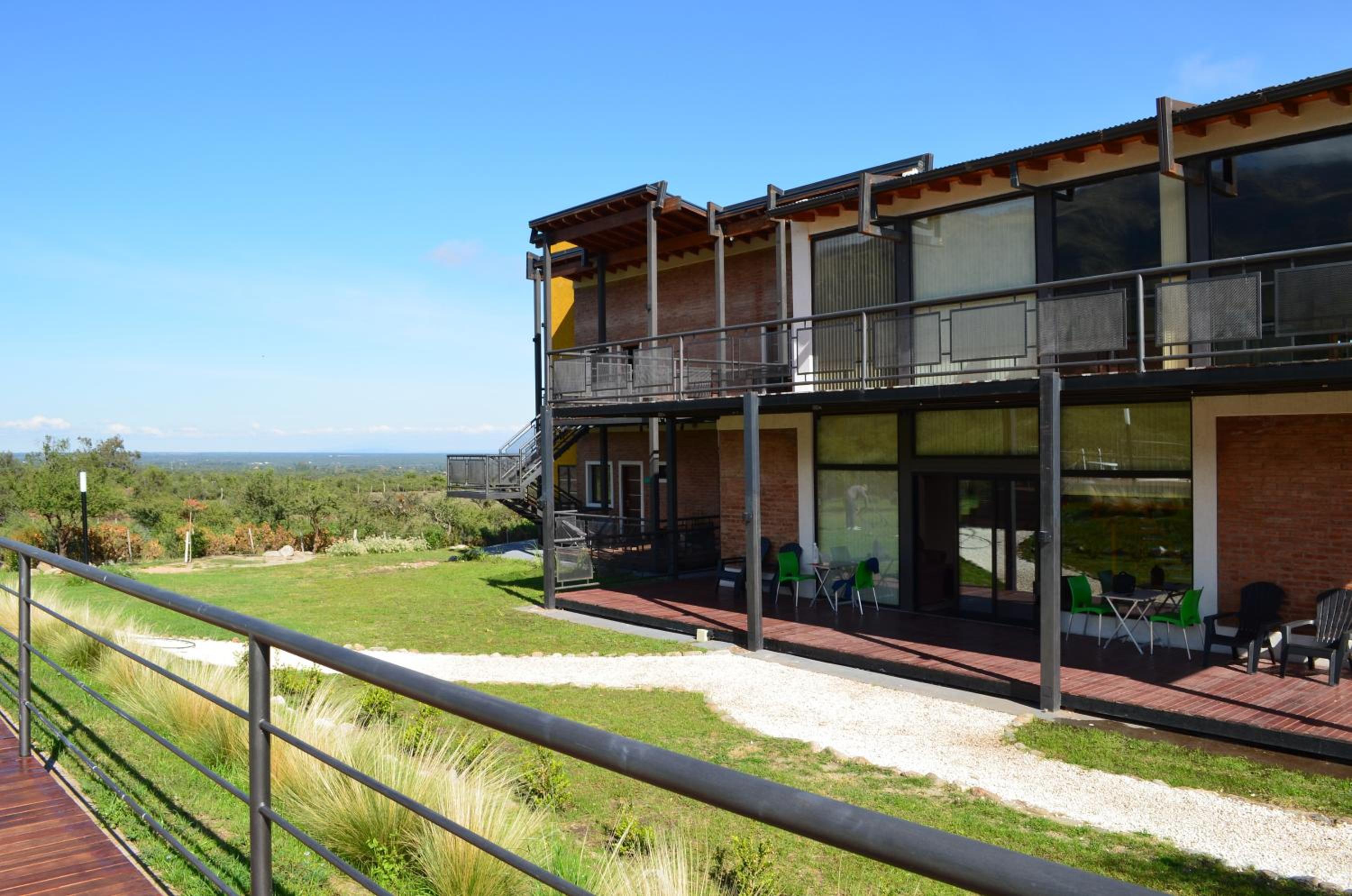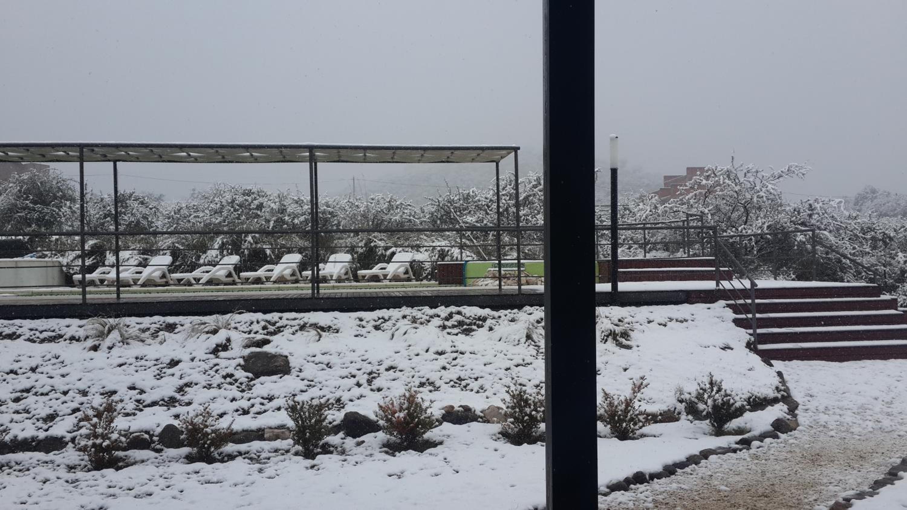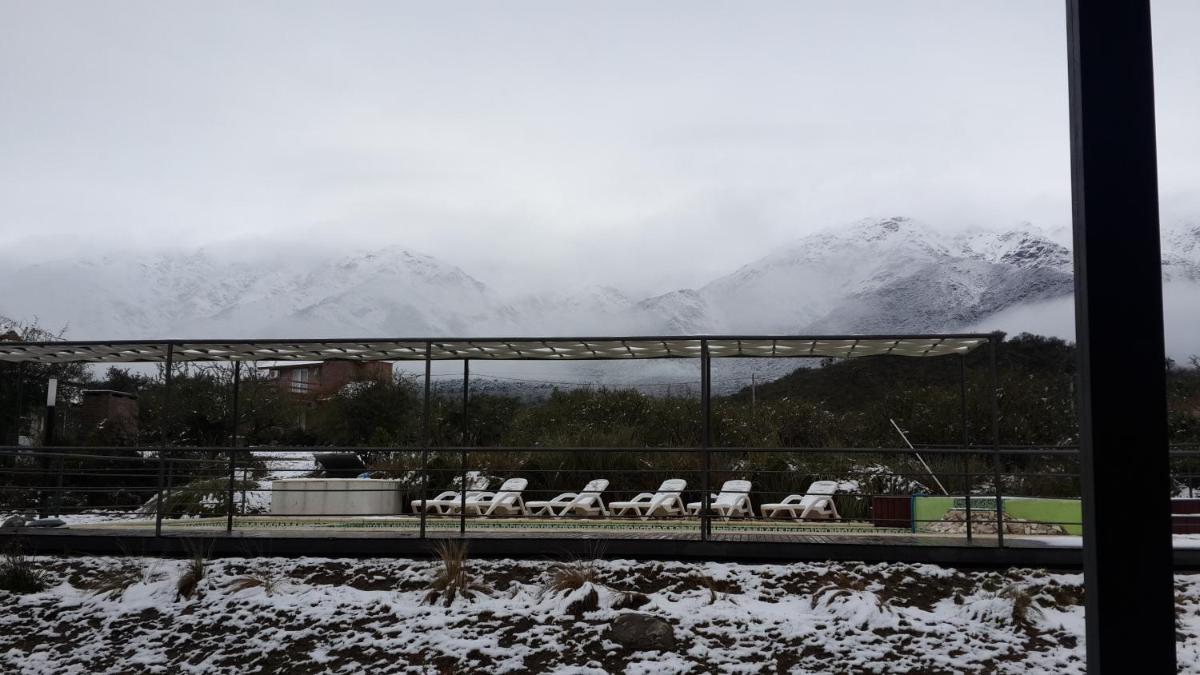Rahuen Hotel/Restaurant in Carpintería boasts a serene garden with an inviting outdoor pool, perfect for relaxation under the sun.