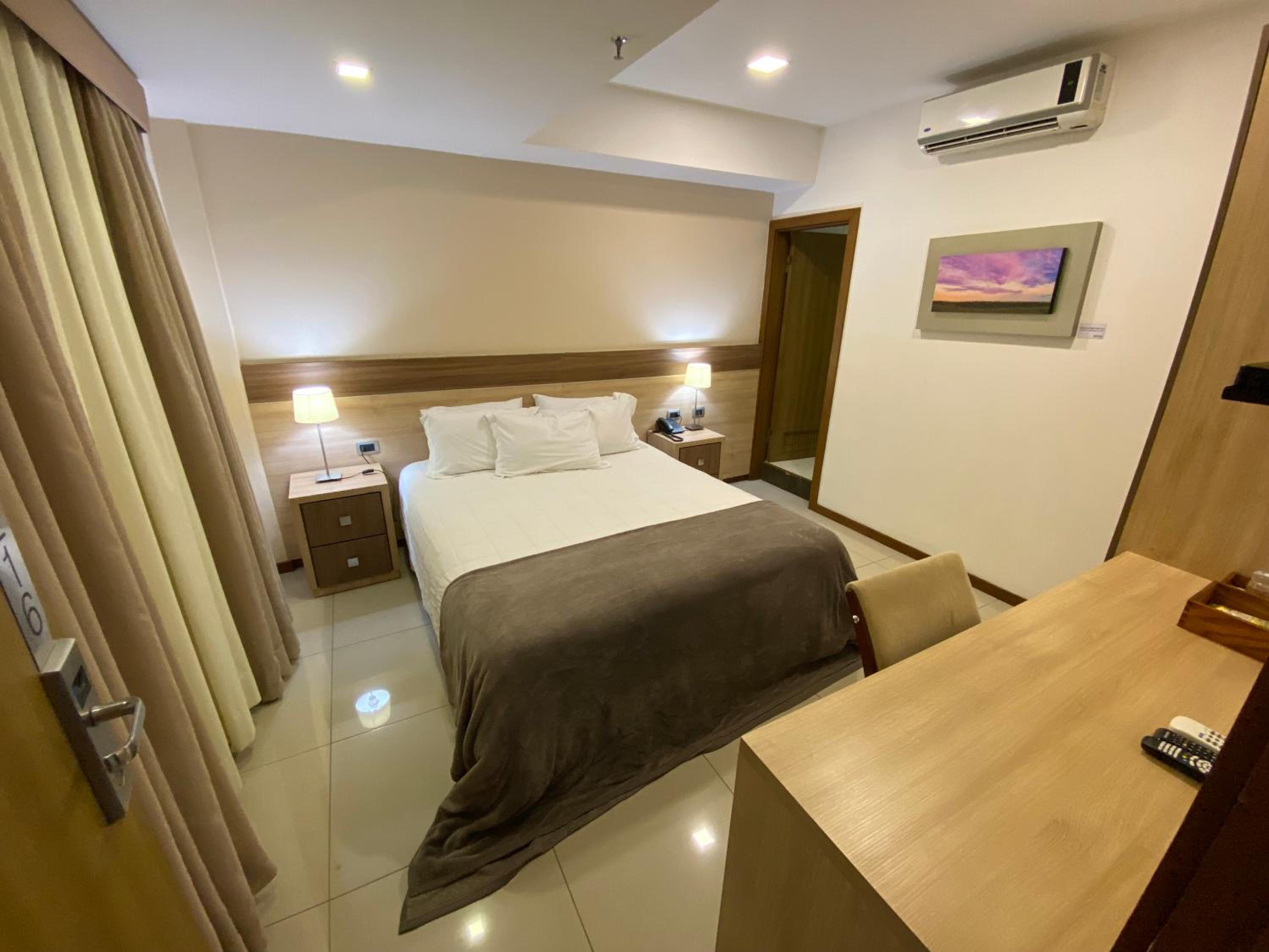 Experience elegance and comfort at Bella Vista Hotel in Encarnación. Our air-conditioned rooms, decorated in soothing neutral tones, offer modern amenities like flat-screen TVs, minibars, and spa baths in select rooms.