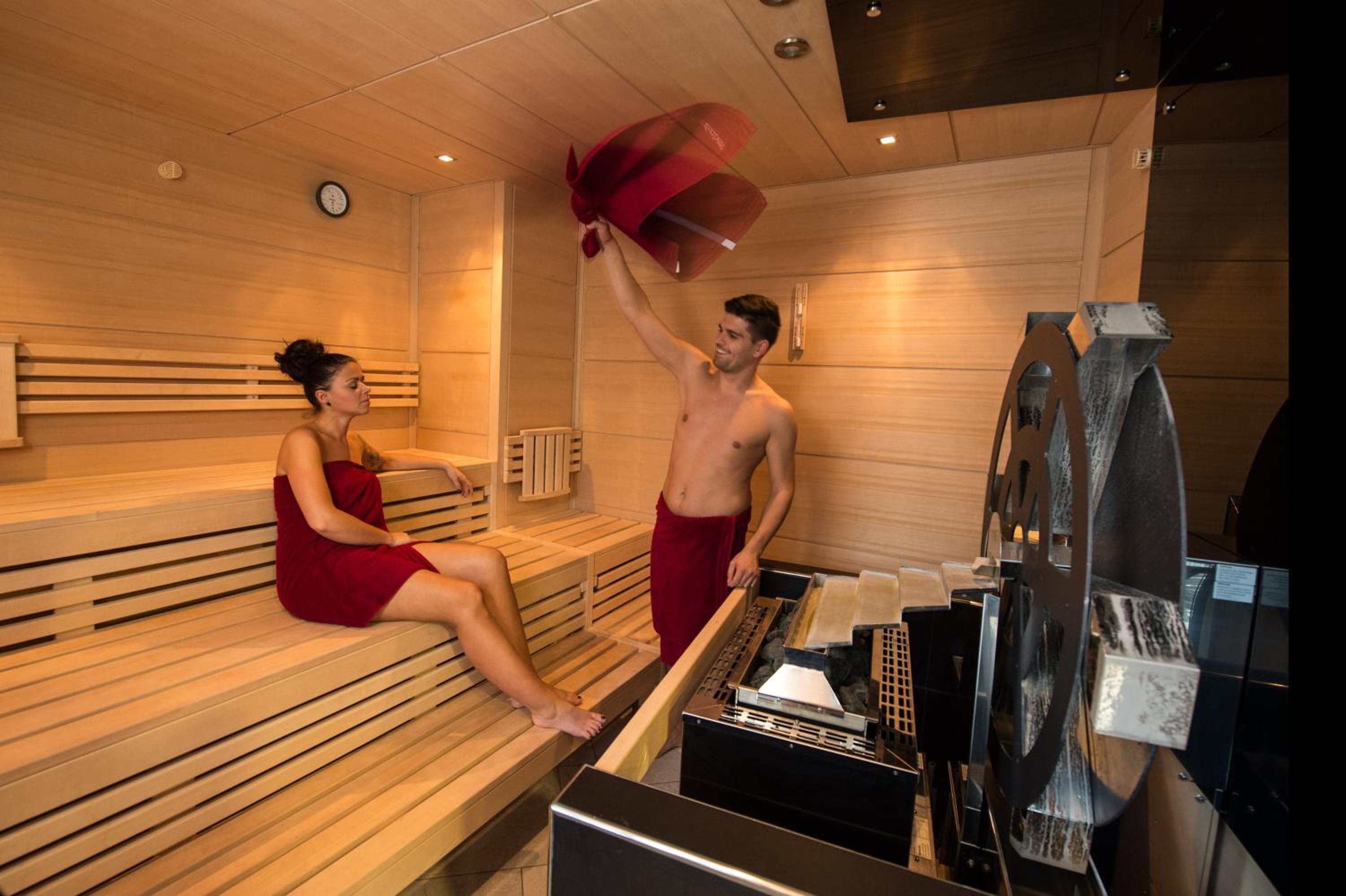 Wird mit Sauna und Fitness beworben.