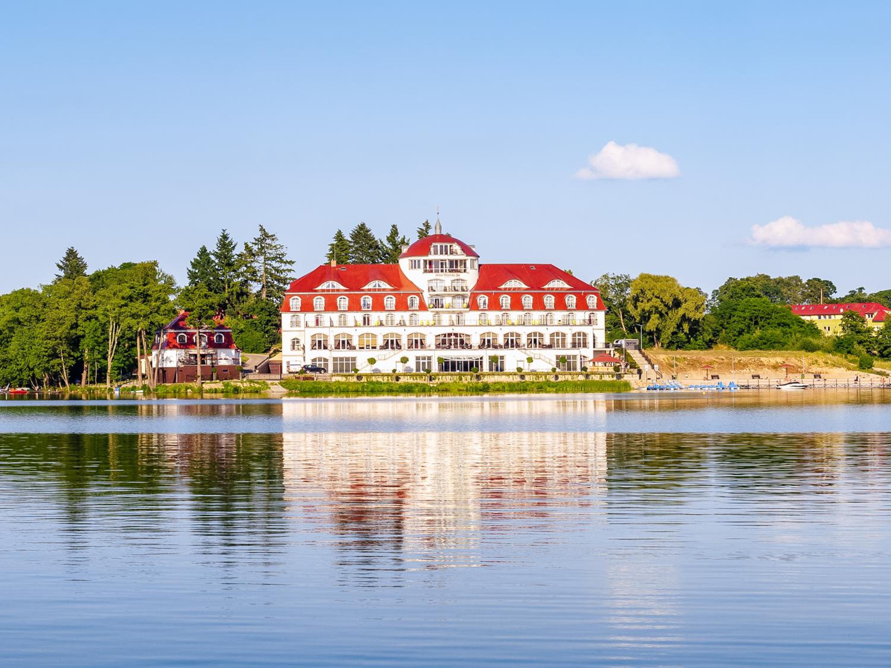 Hotel Woiński Spa offers a private beach by Lake Lubiąż with water sports facilities and a jetty. Guests have complimentary access to an indoor pool, hot tub, saunas, salt cave, and gym. The elegant rooms feature stylish decor, flat-screen TVs, and well-equipped bathrooms.
