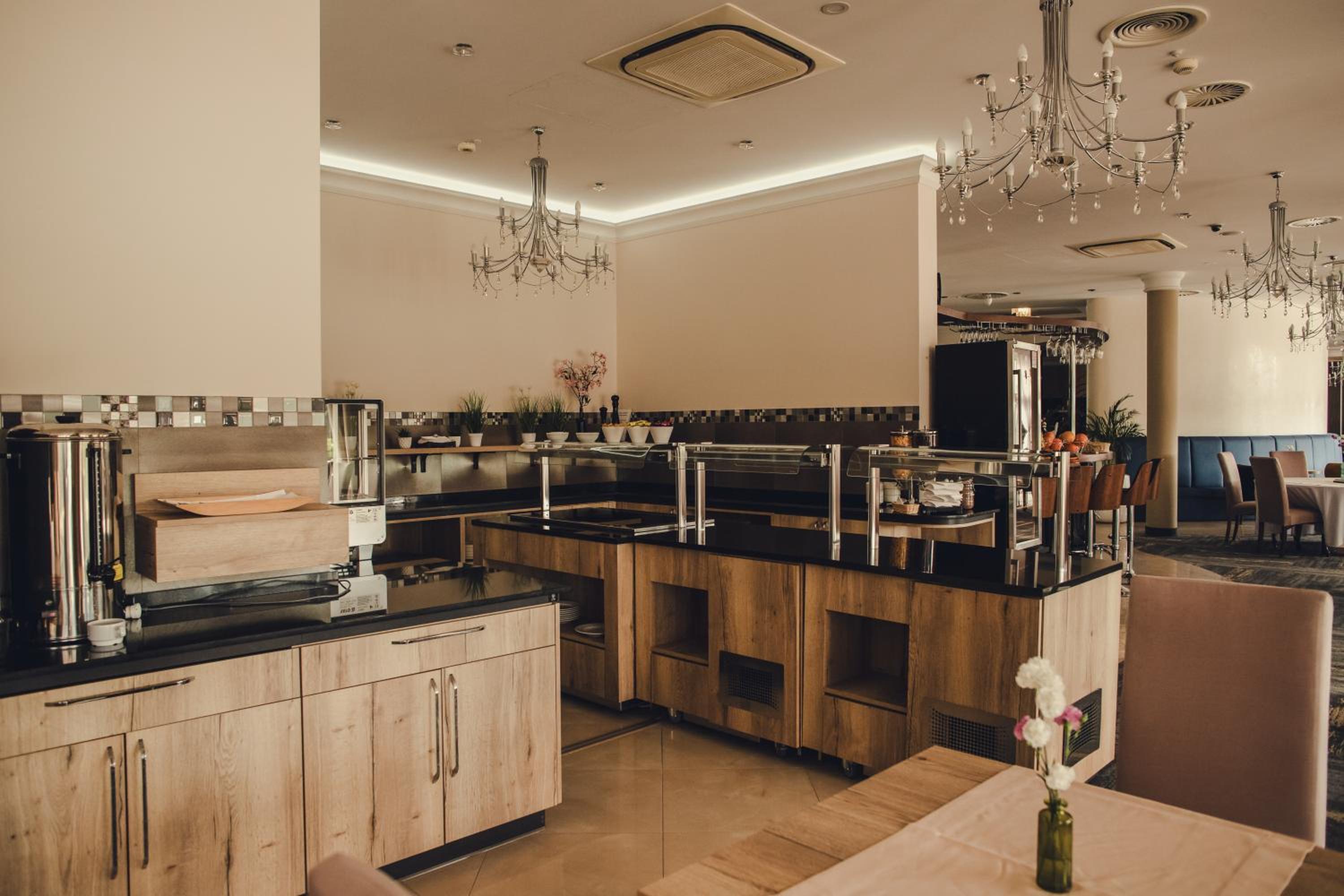 Indulge in European cuisine at the hotel's elegant restaurant and start your day with a delicious breakfast buffet. Tea, coffee, and bottled water are provided in the rooms for your convenience.