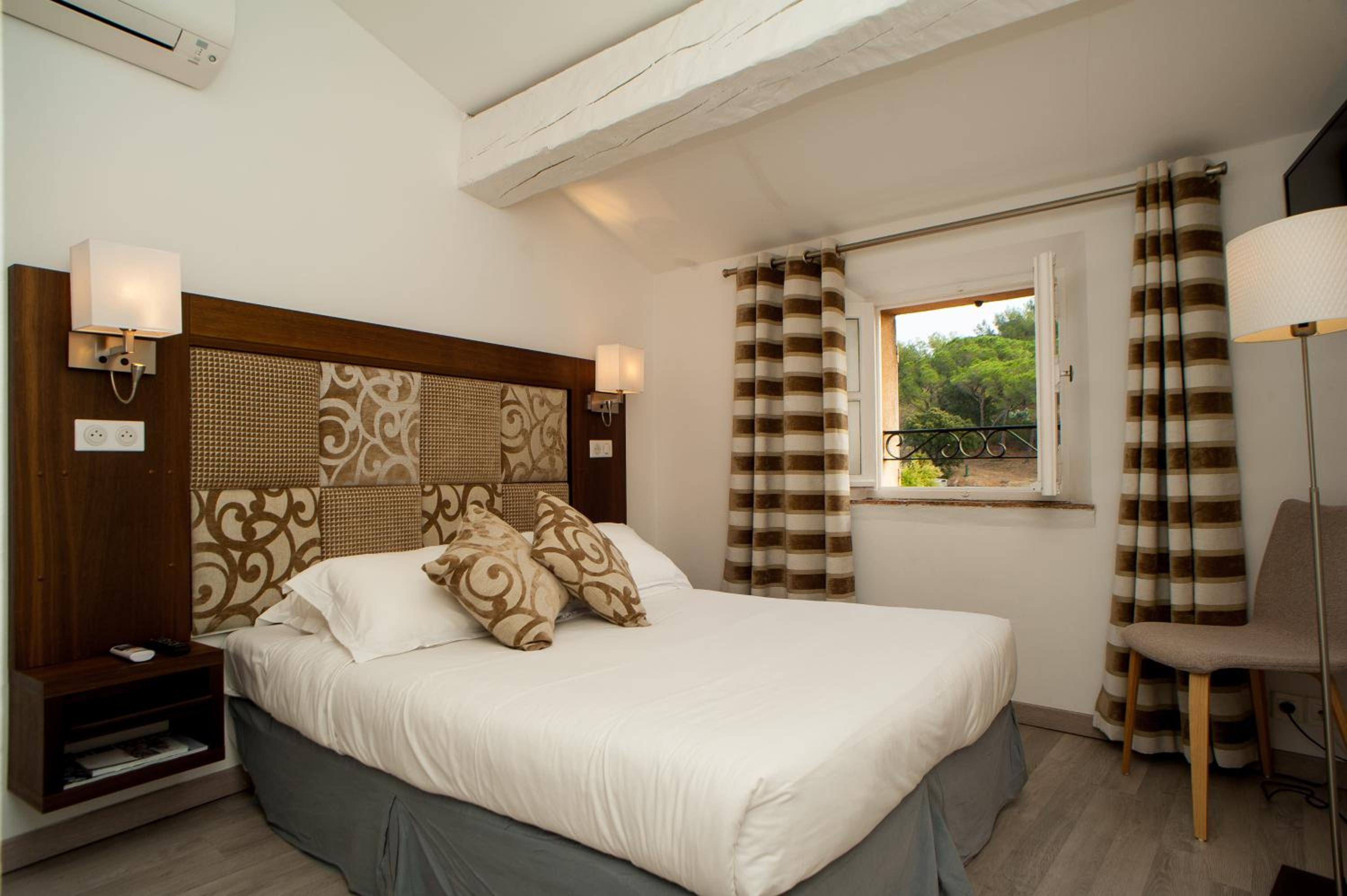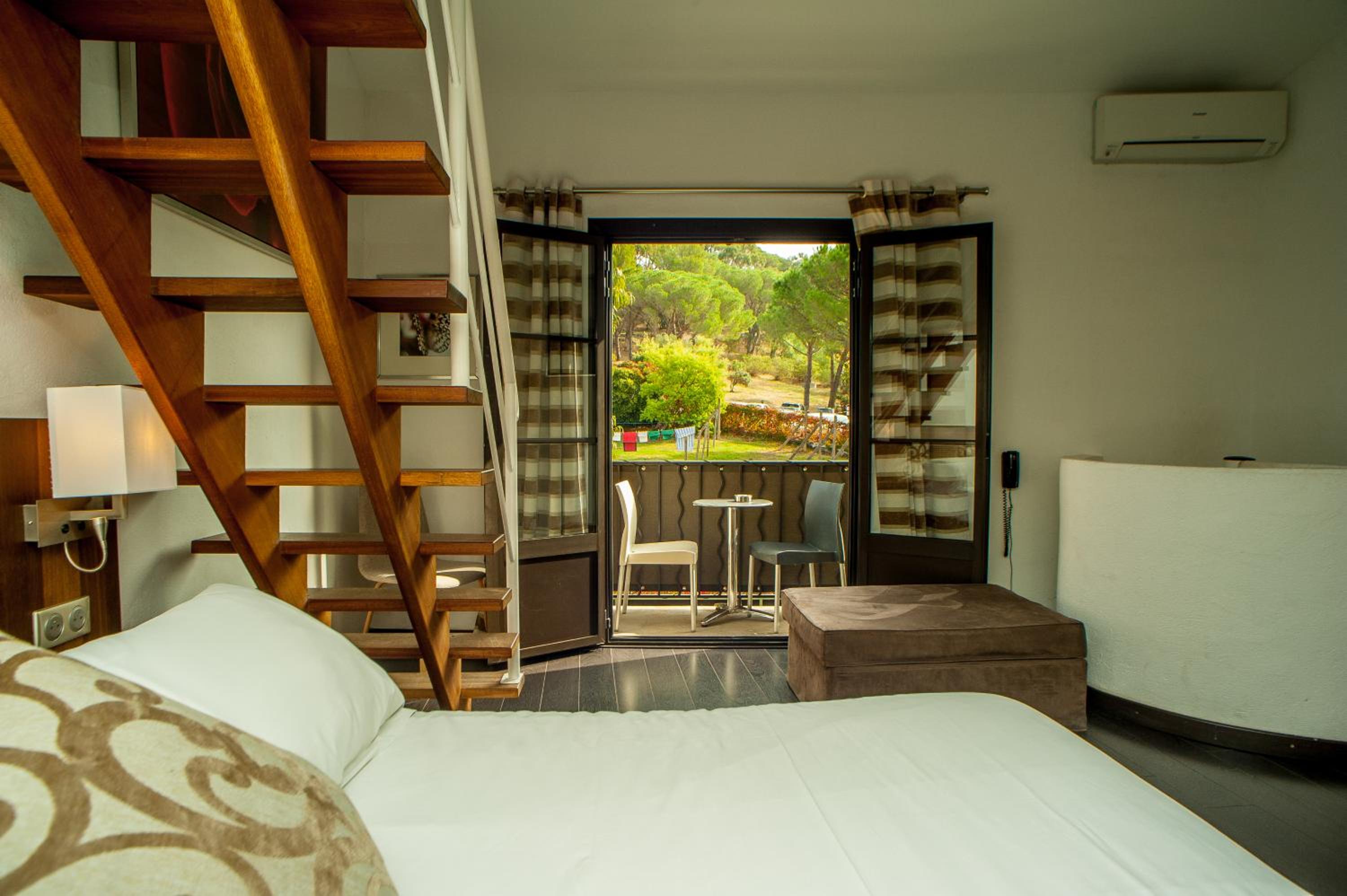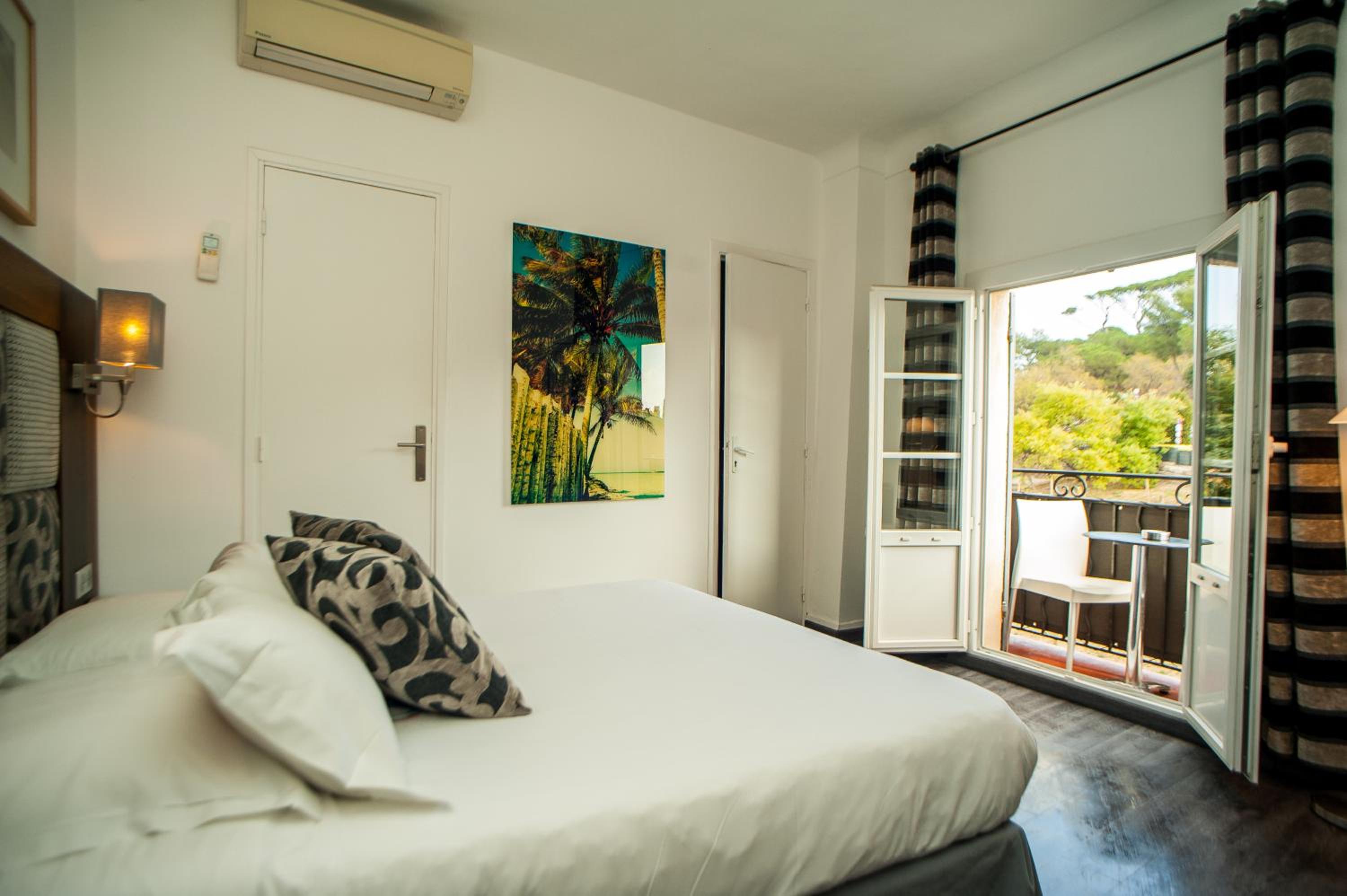 Hotel B Lodge, nestled in the heart of Saint-Tropez, offers modern rooms with upscale amenities such as flat-screen TVs and private bathrooms. Each room, accessed via a charming staircase, features refreshing air-conditioning and a well-equipped bathroom with a choice of shower or bathtub. Some rooms even boast a lovely balcony overlooking the lush garden or the bustling city.