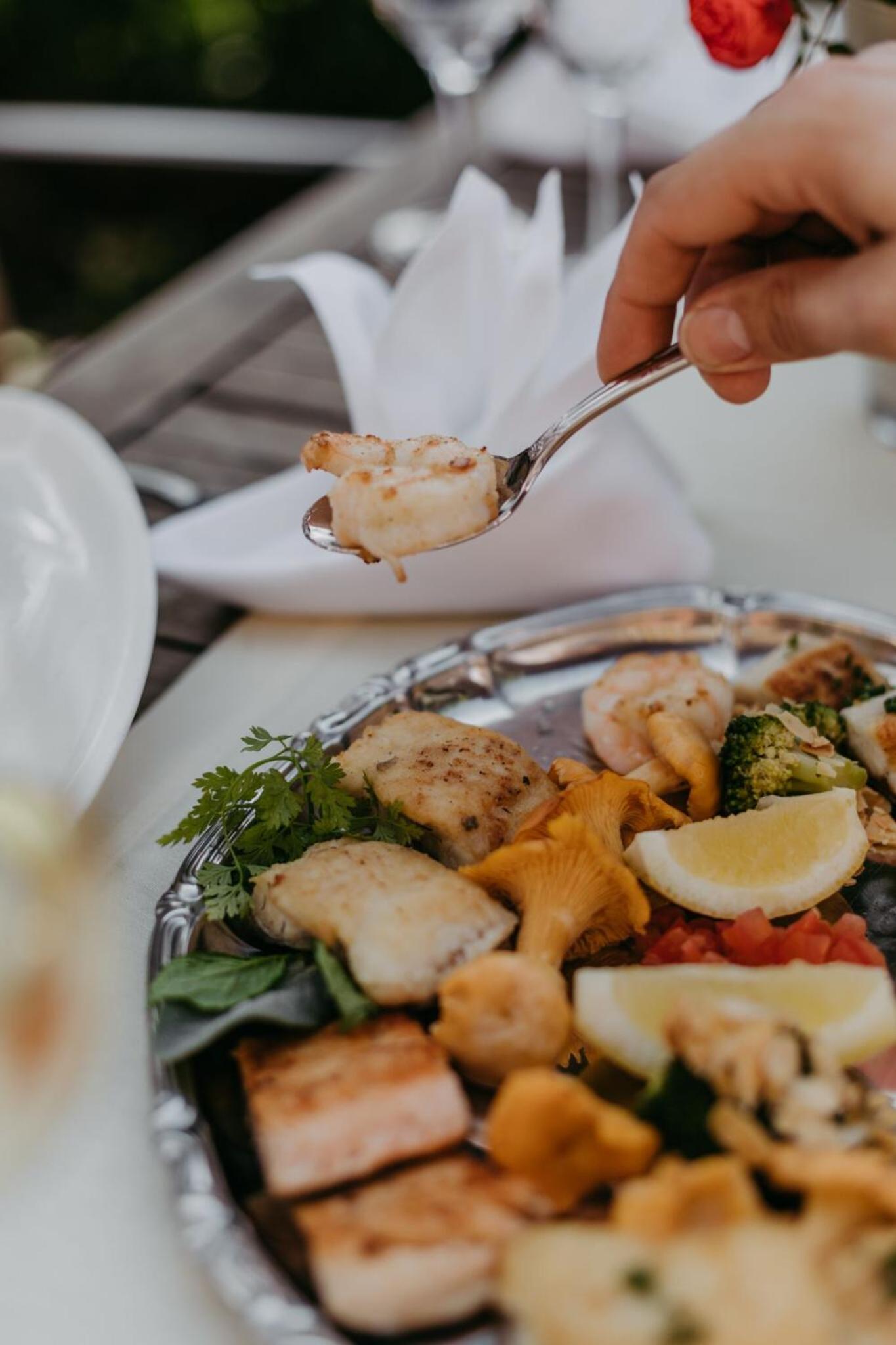 Die Dusche war sehr klein und müsste gerichtet werden, da sich die Türe der Dusche nicht richtig schließen lässt. Sehr viele Tagesgäste die aber nach dem Essen wieder abreisen und die idylle und das gute Essen genießen.