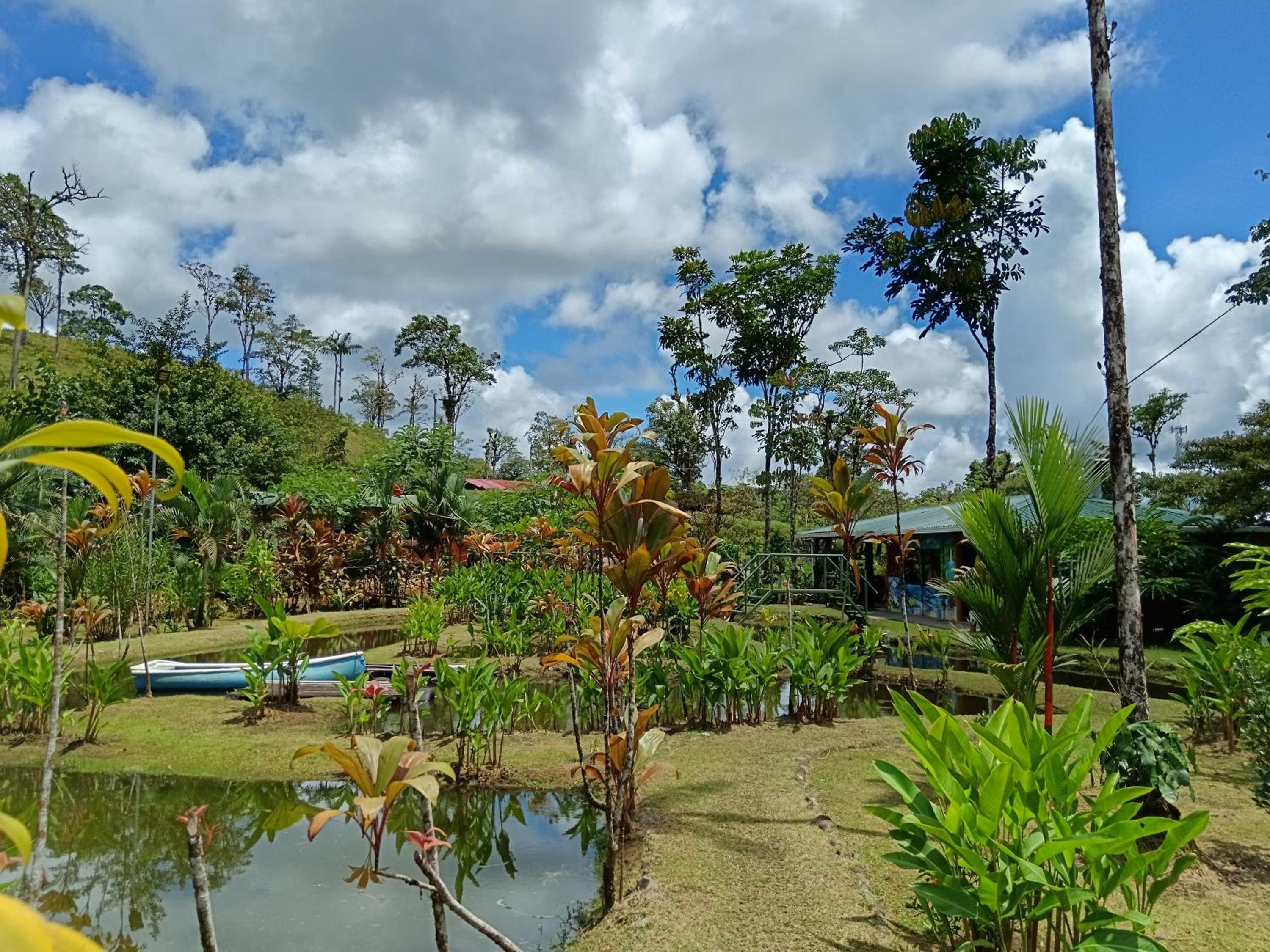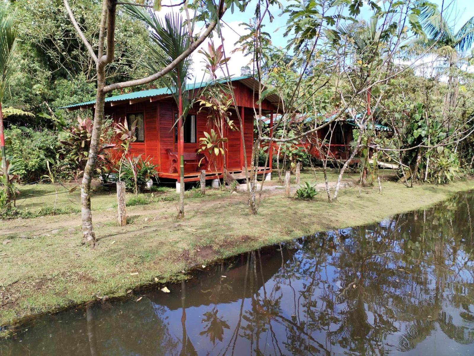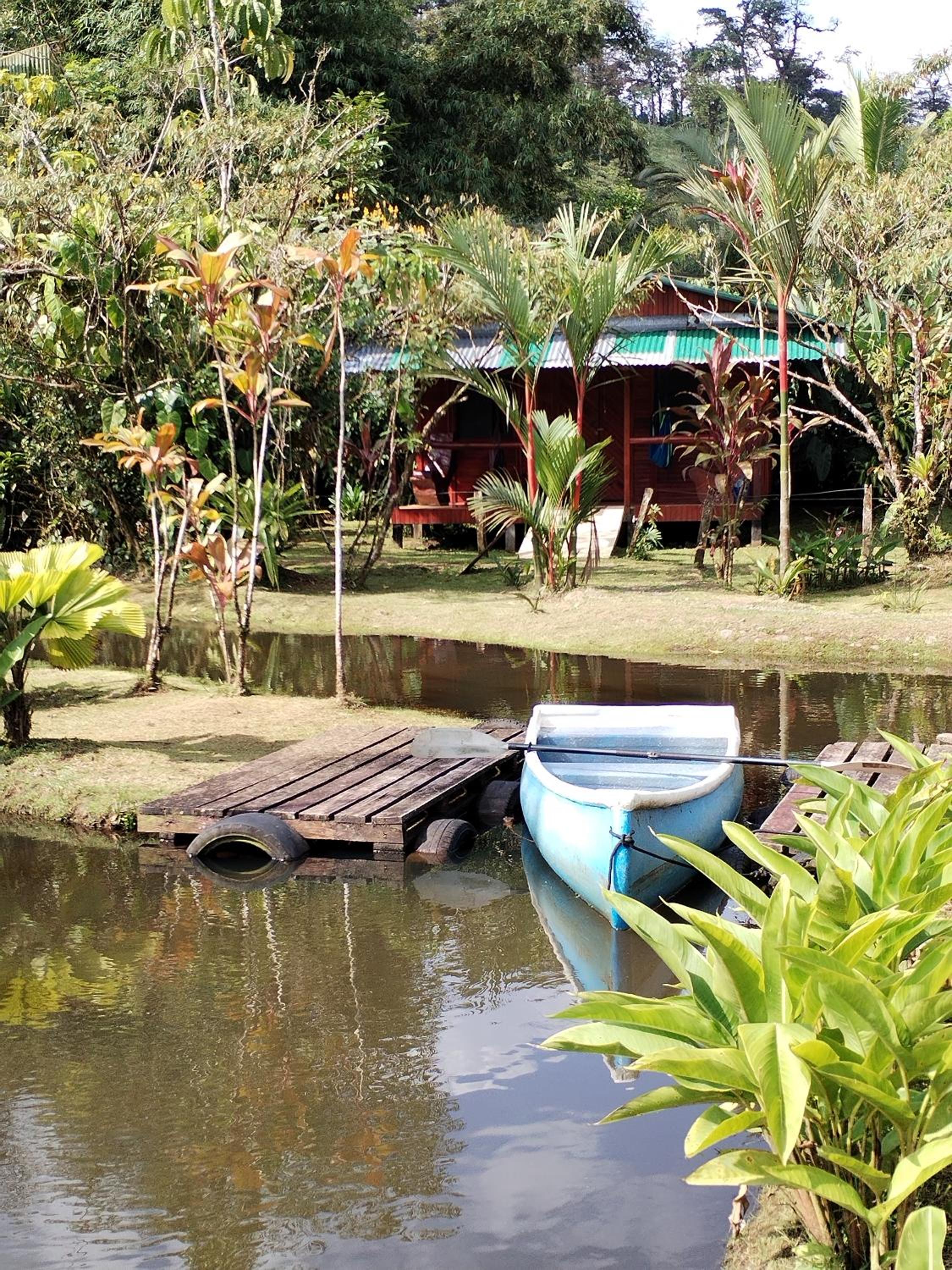 The setting in nature with ponds, rolling hills and the view to the Tenorio volcano, minutes from the national park. My wife and I also like rustic cabins. Ours has a nice corridor to be outside the cabin but under roof. The owners and staff are very nice and service oriented.