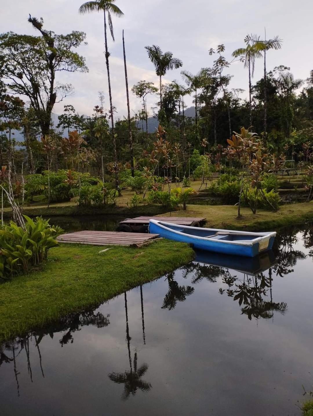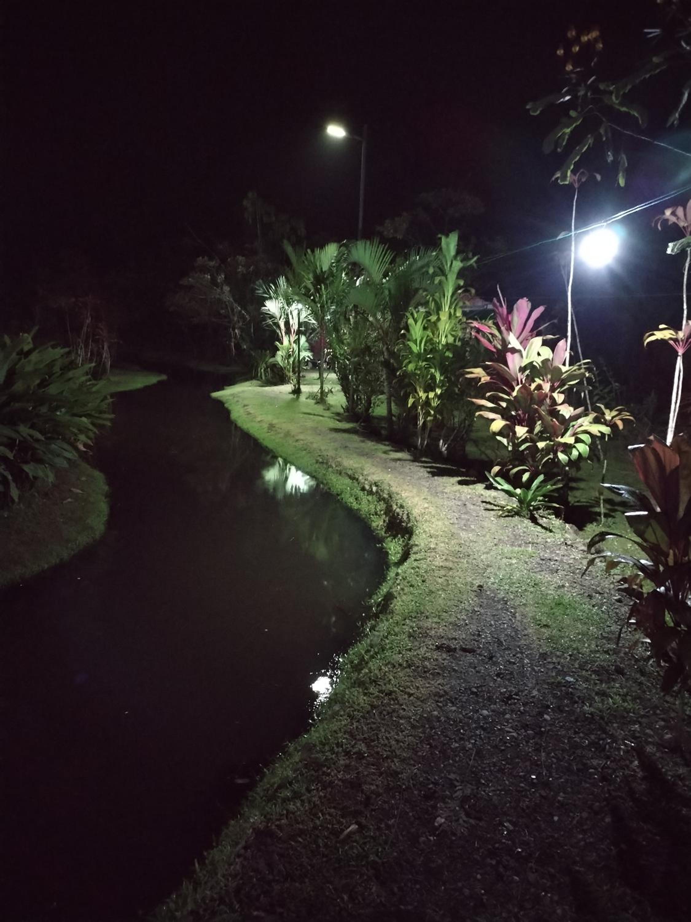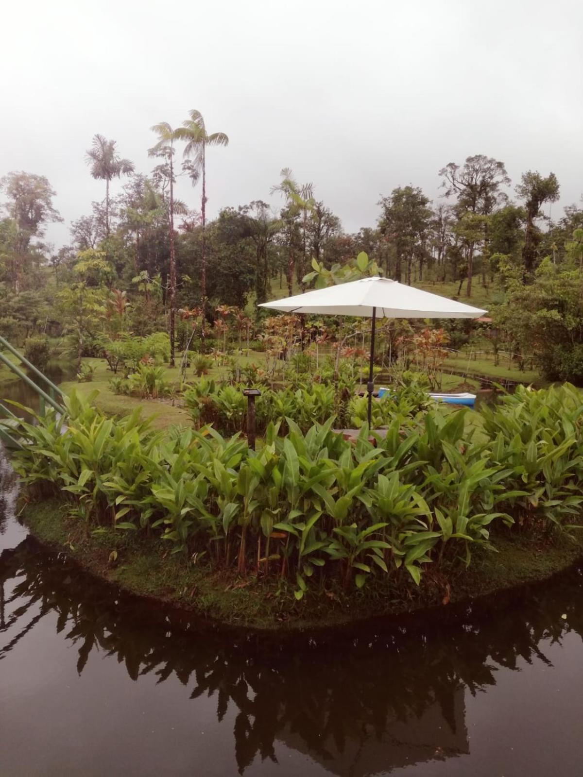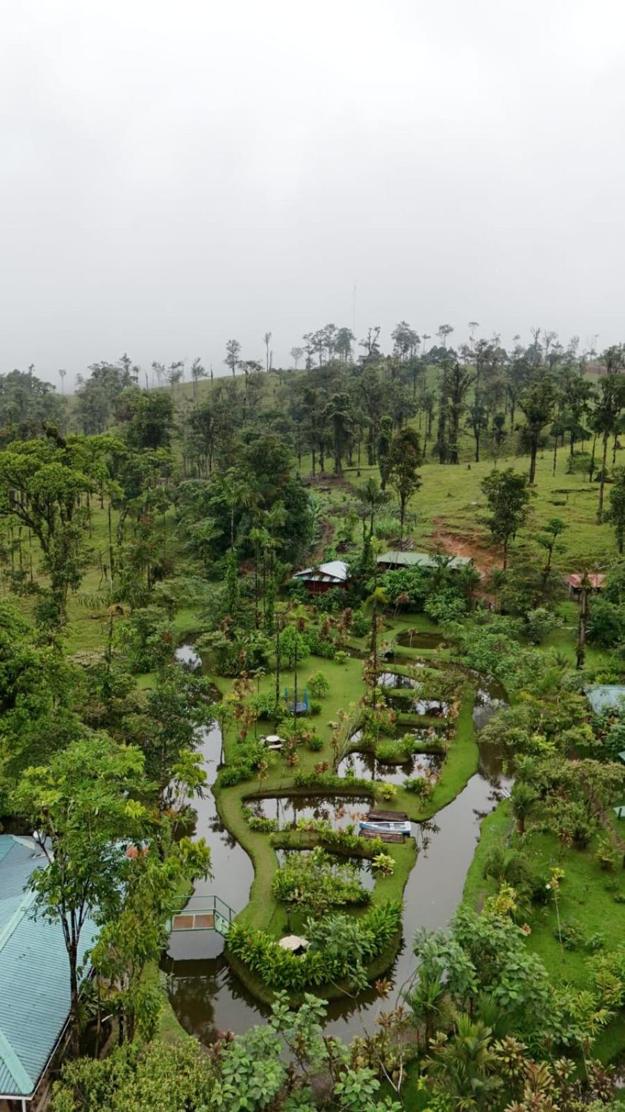 The setting in nature with ponds, rolling hills and the view to the Tenorio volcano, minutes from the national park. My wife and I also like rustic cabins. Ours has a nice corridor to be outside the cabin but under roof. The owners and staff are very nice and service oriented.