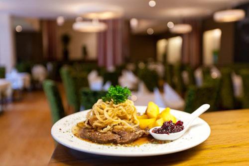 Indulge in a culinary experience at our on-site restaurant offering a variety of Austrian and local dishes, with vegetarian, dairy-free, and vegan options available upon request.