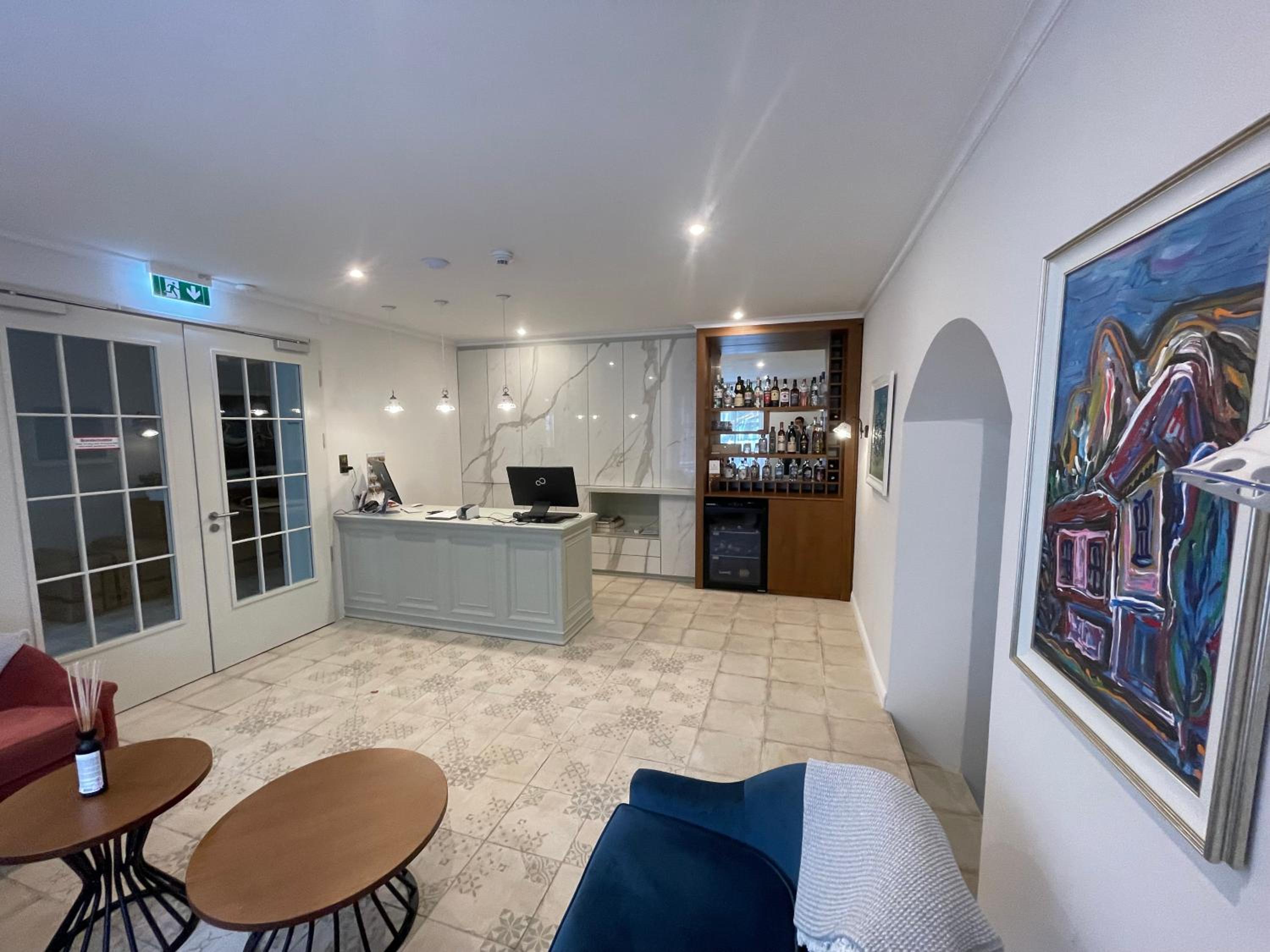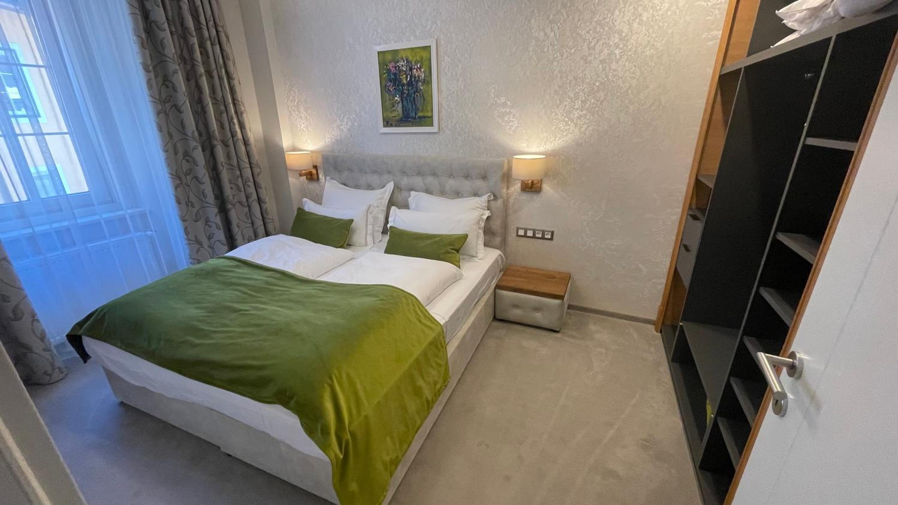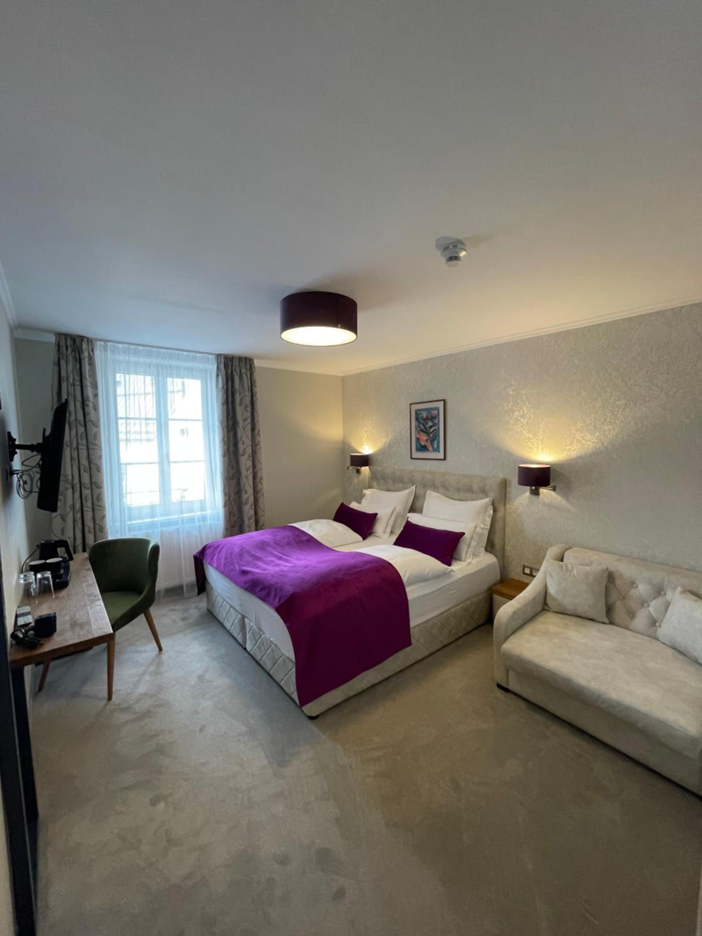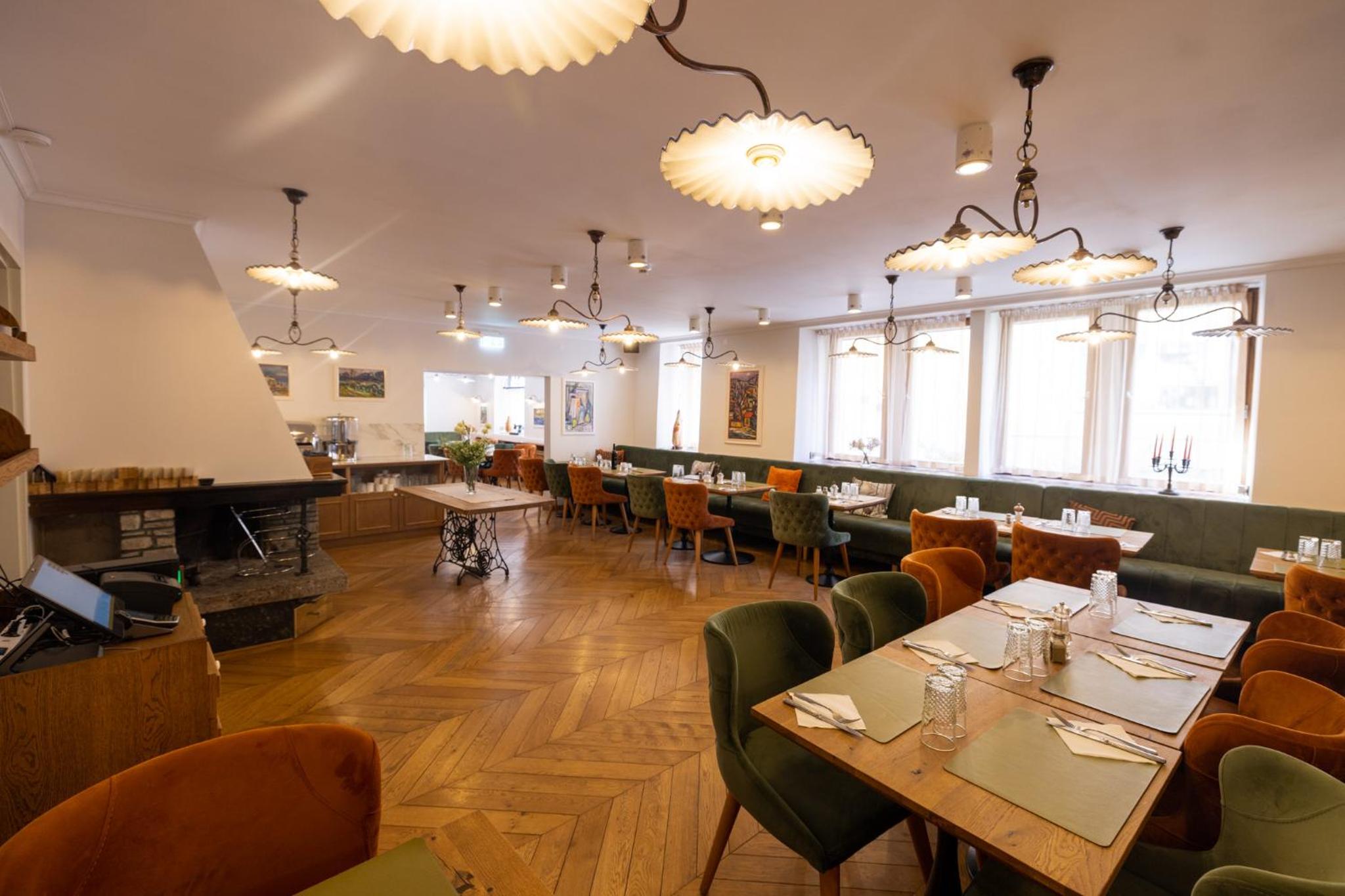 The hotel was renovated with a lot of care and attention to detail. We did not mind that there was no elevator because the stairs are wide and easy to climb even with luggage. The room was more spacious than expected and both the bed and the sofa were very comfortable. We also really liked the dining room, very nicely furnished and decorated. The best part of breakfast were definitely the still warm bread rolls.