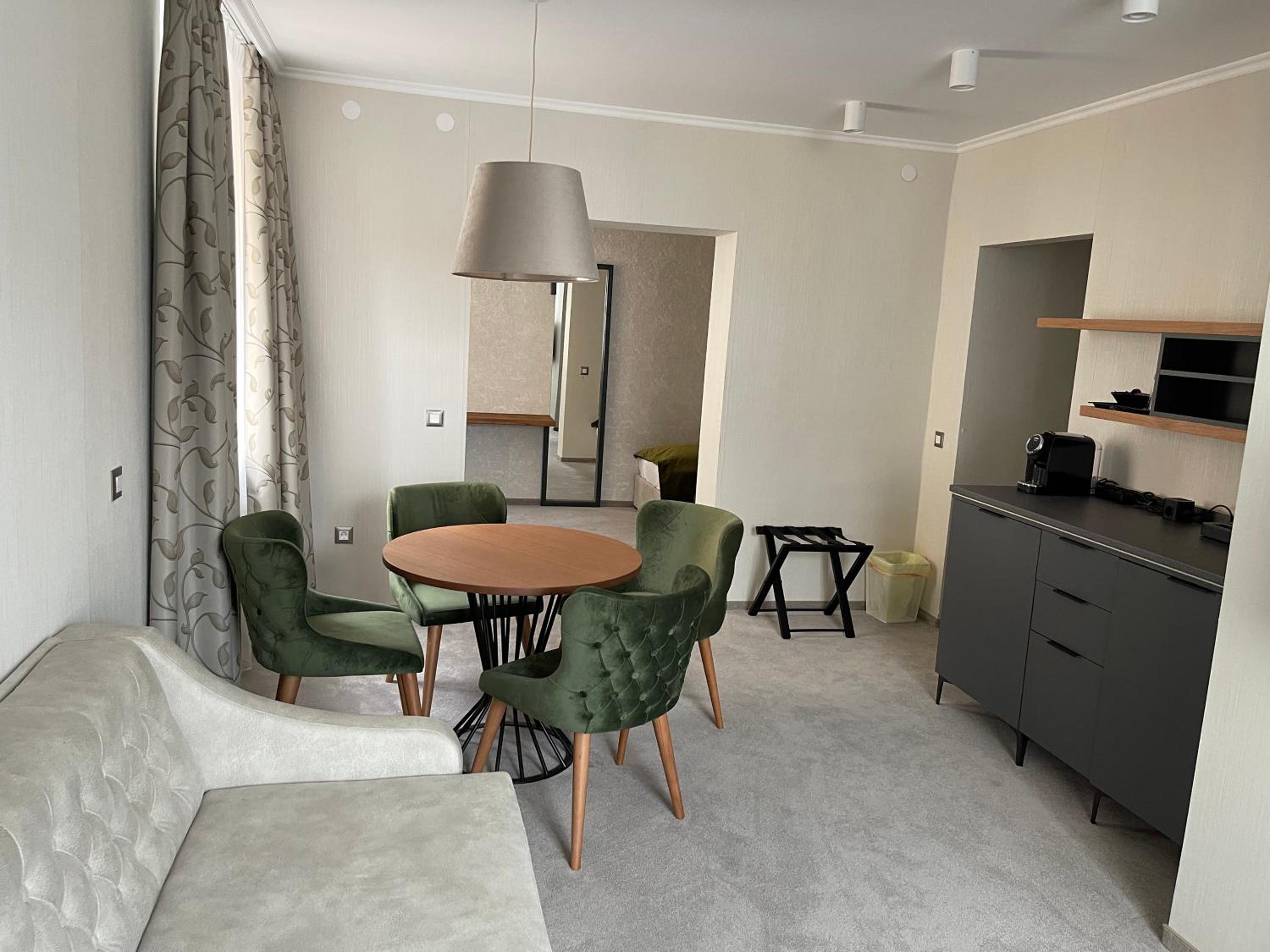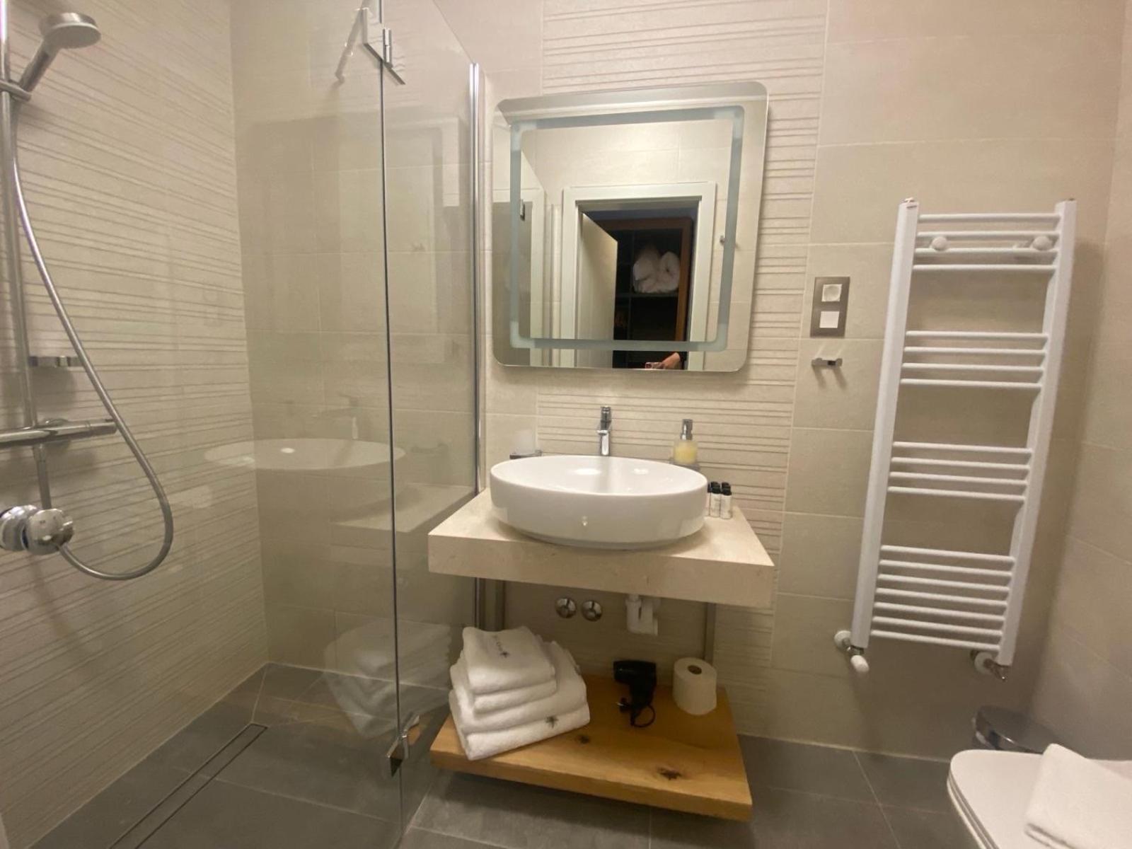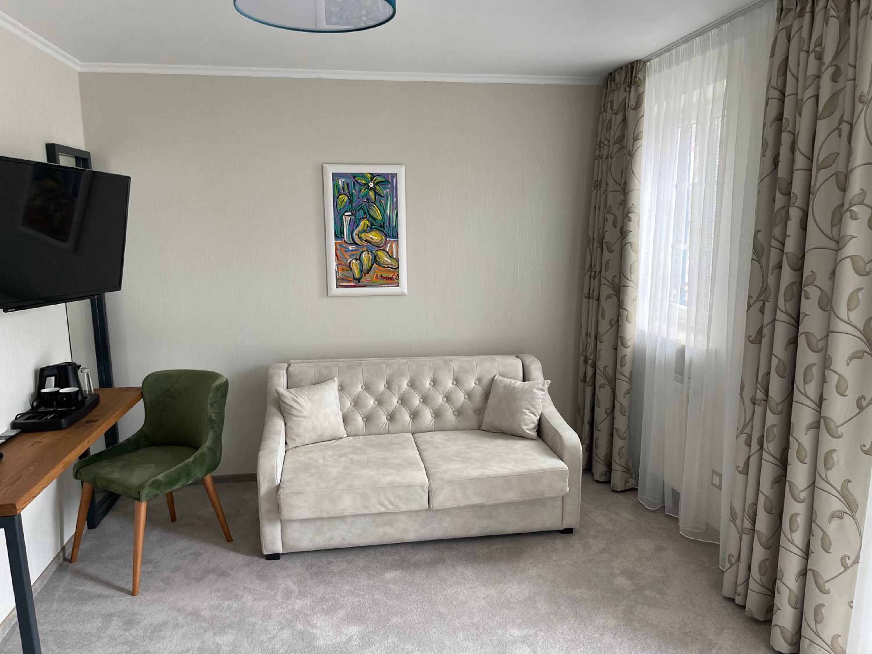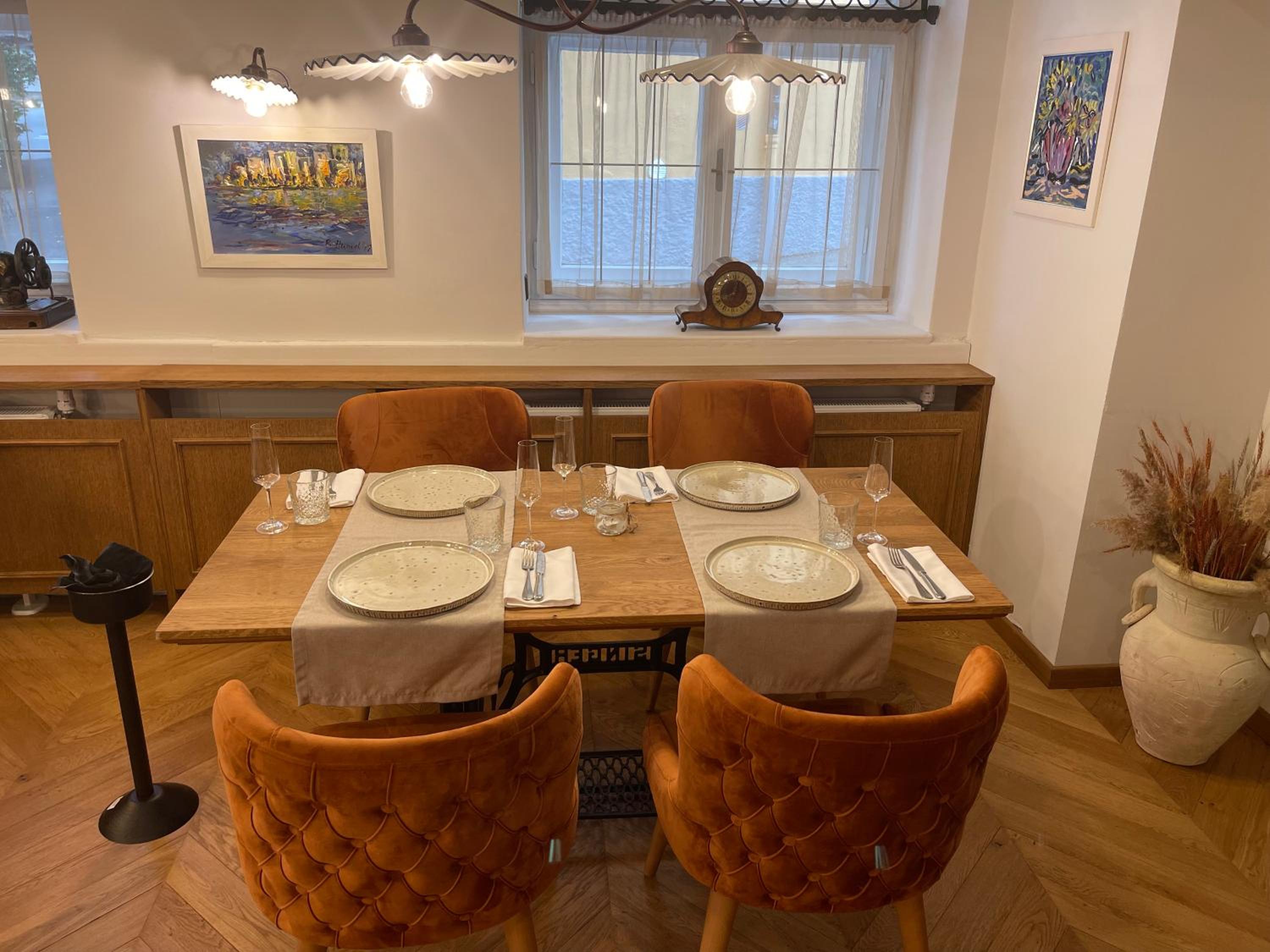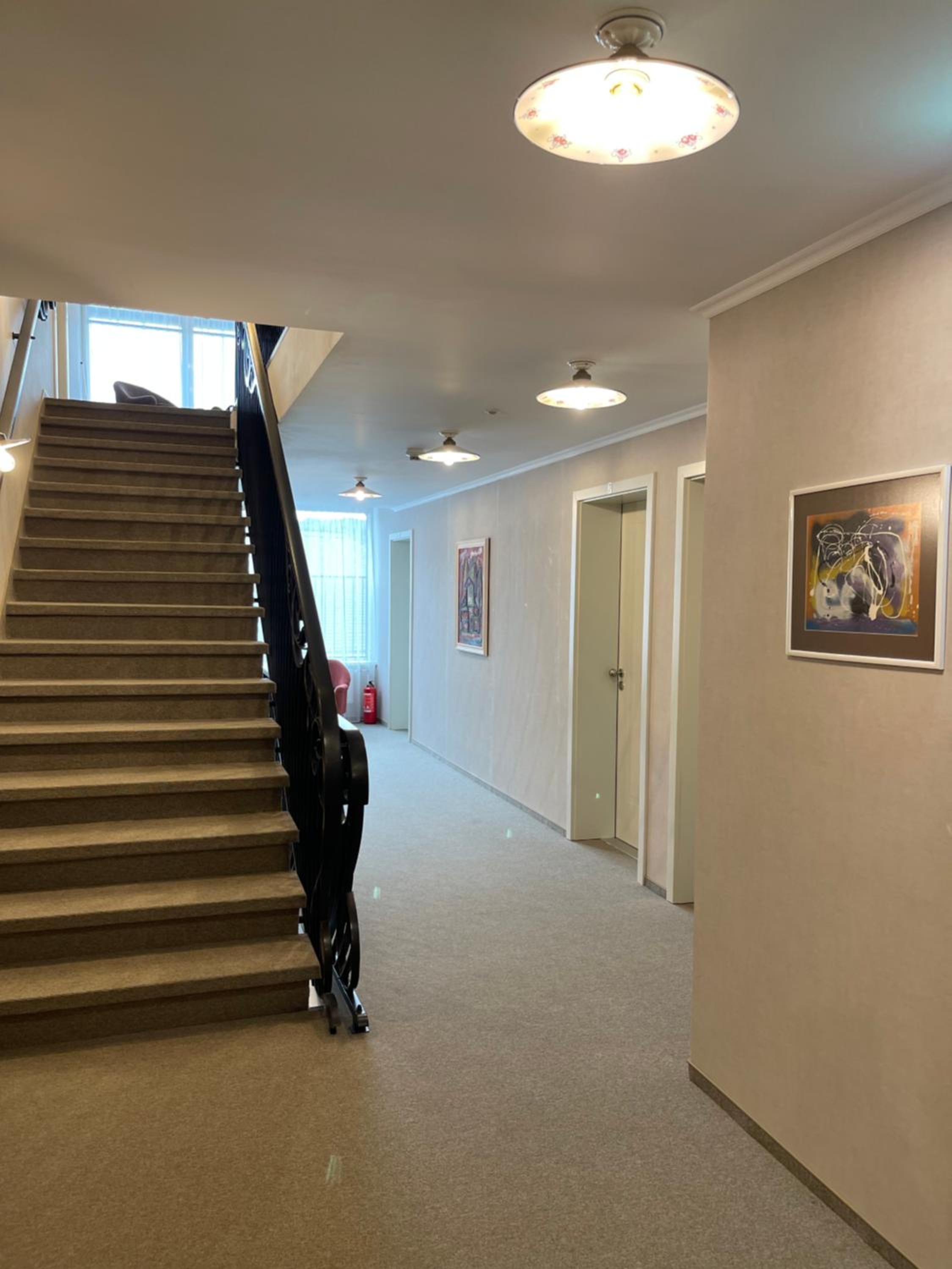 The hotel was renovated with a lot of care and attention to detail. We did not mind that there was no elevator because the stairs are wide and easy to climb even with luggage. The room was more spacious than expected and both the bed and the sofa were very comfortable. We also really liked the dining room, very nicely furnished and decorated. The best part of breakfast were definitely the still warm bread rolls.