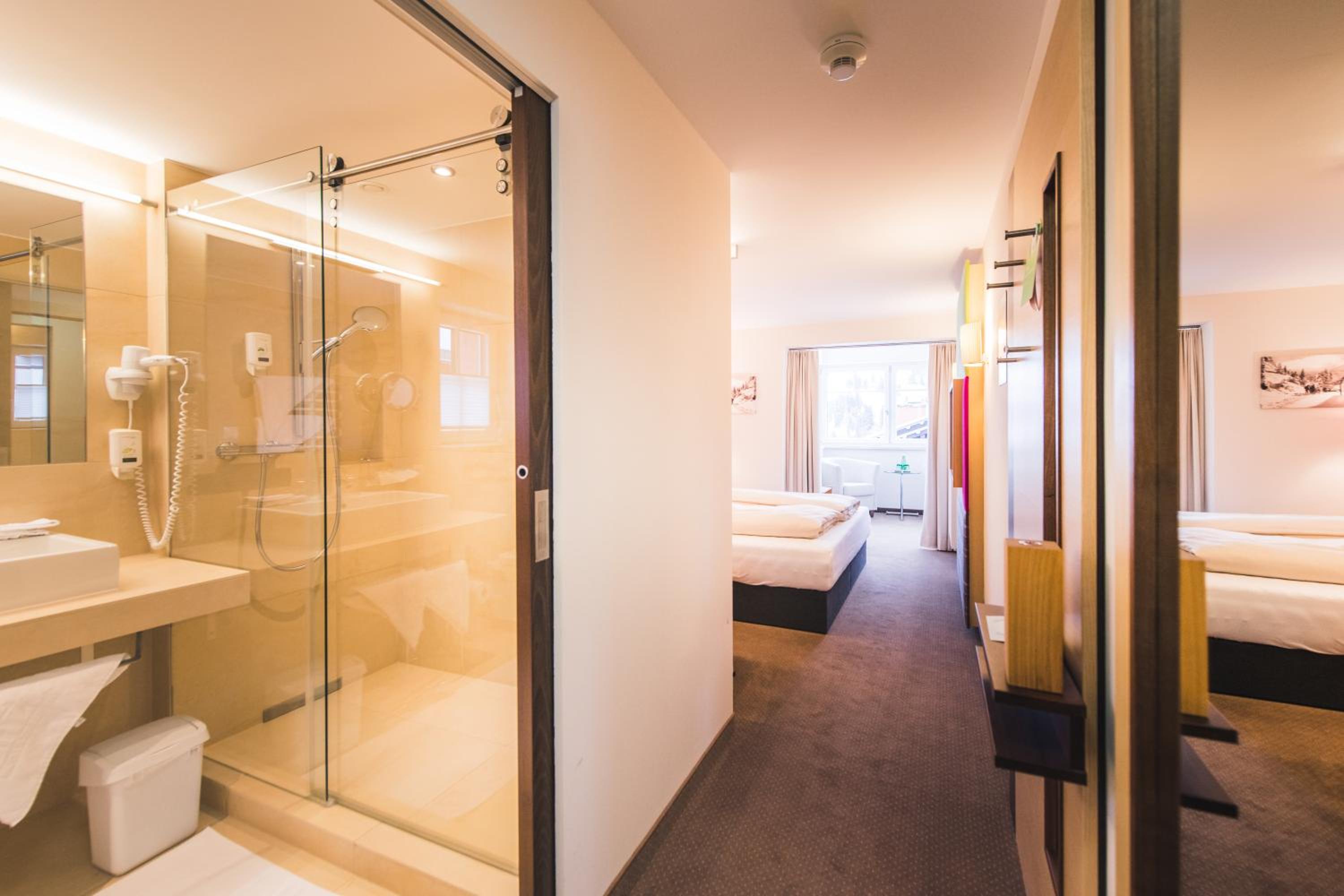 super veľkosť izby aj poloha hotela, boli sme hneď z lyžiarne na svahu, výborne raňajky aj parkovanie v garaži, auto vám môžu zaparkovať ale možete si ho zaparkovať aj sami, užili sme si aj wellness