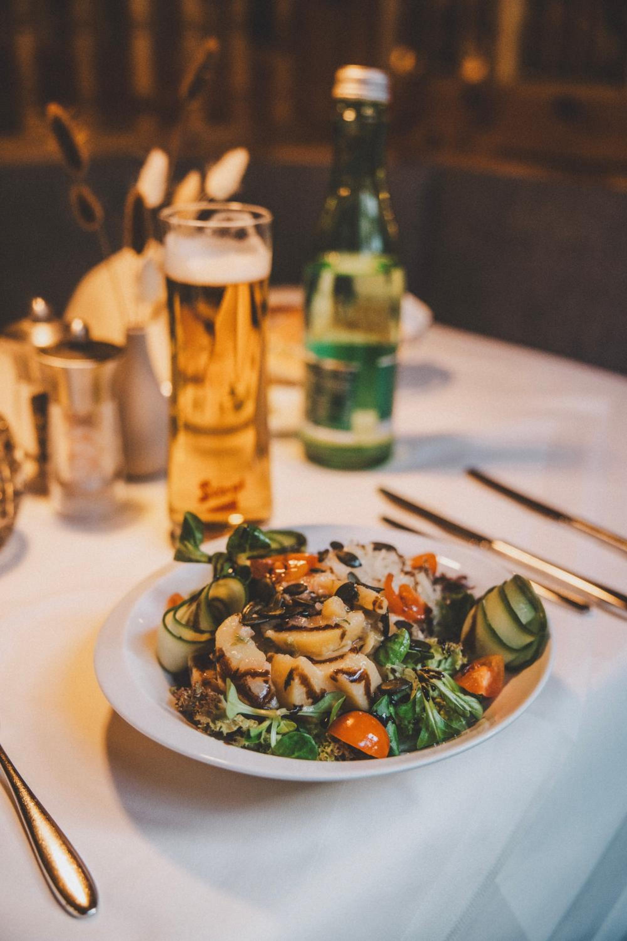 Start your day with a sumptuous breakfast buffet featuring regional and organic delights. Explore our extensive wine cellar's selection of fine wines for the perfect evening treat.