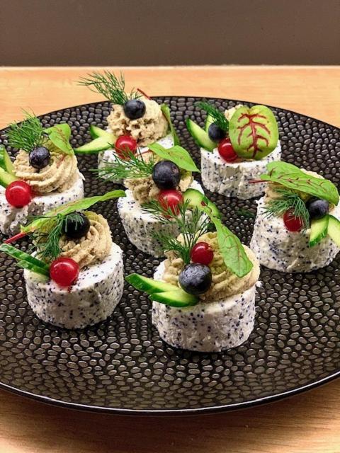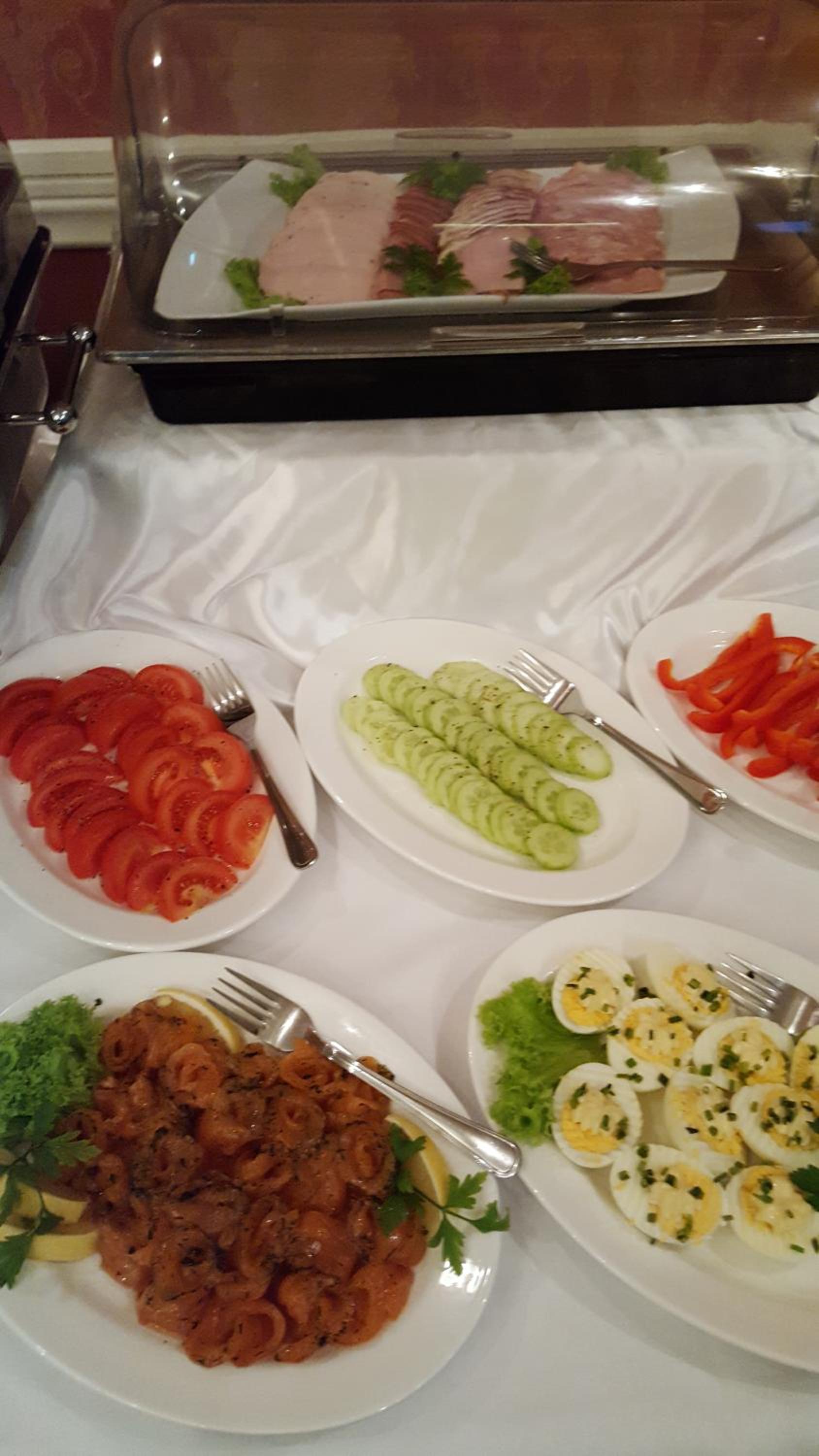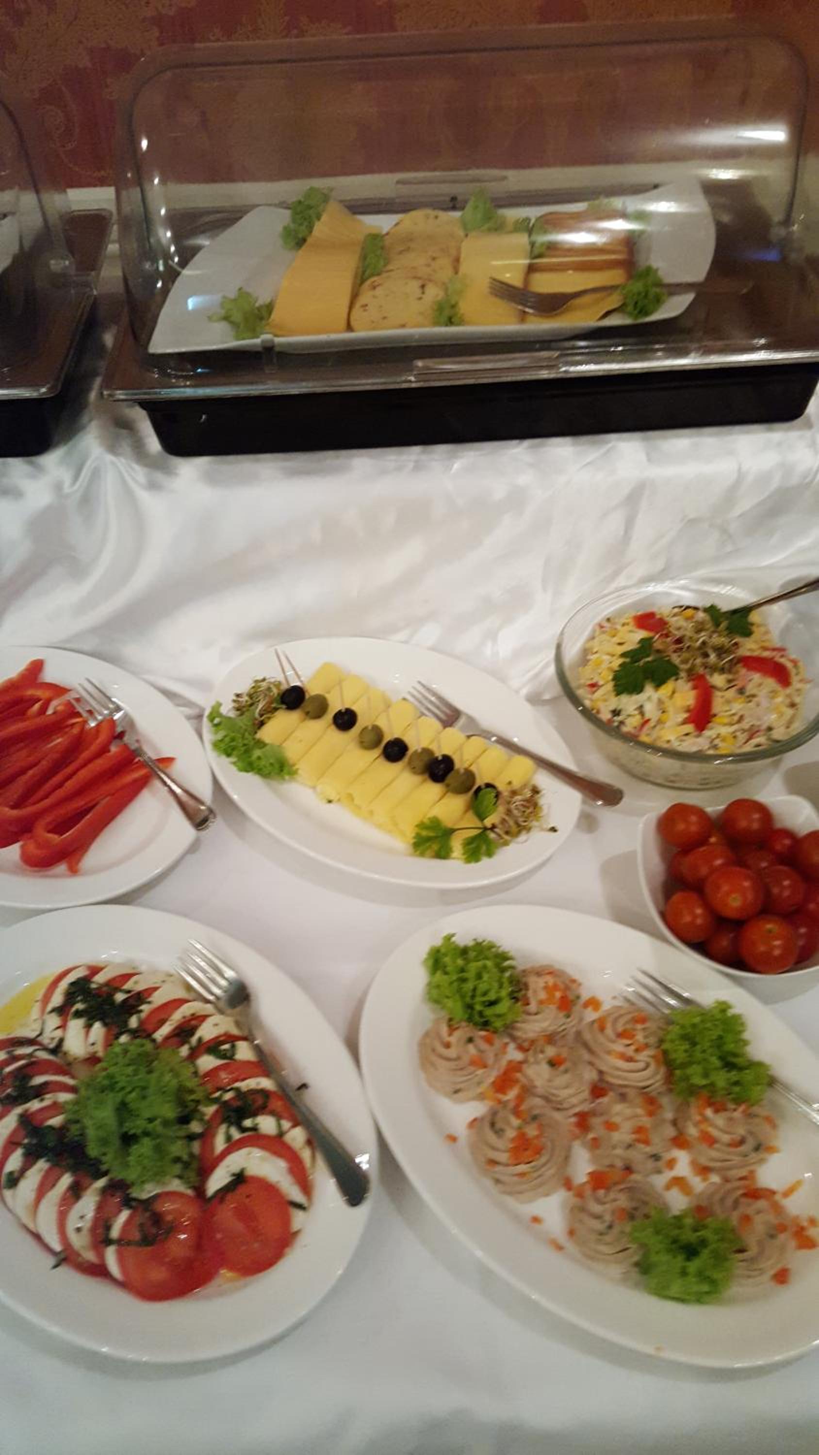 Śniadanie przygotowane dzień wcześniej w formie przeróżnych kanapek przekąsek, ale smaczne.