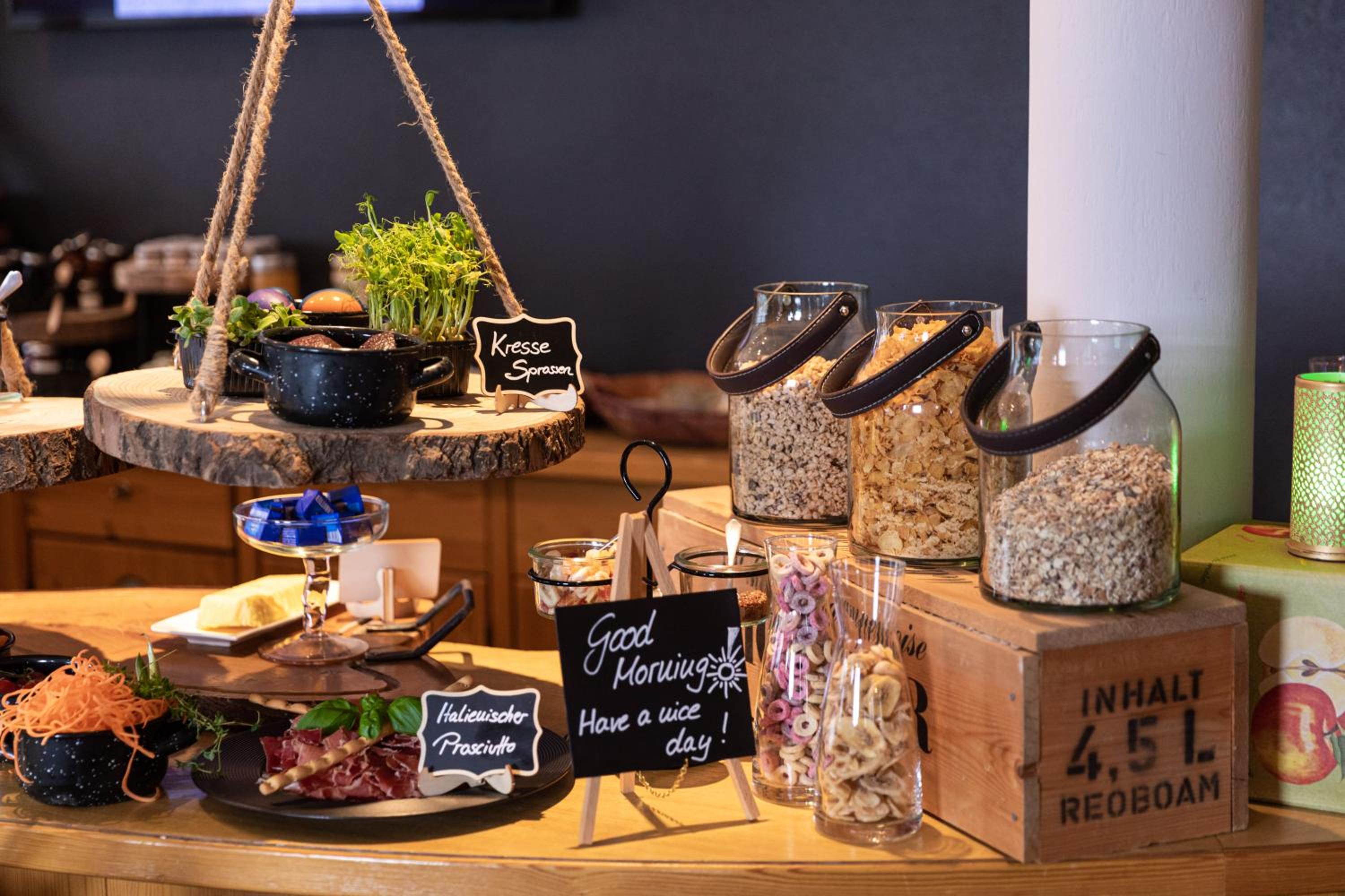 Abendessen vorsichtshalber ausfallen lassen, da zu der früheren Hauptstoßzeit das Restaurant diesmal komplett leer war. Frühstück: Desaster: Kaffee lauwarm und vielleicht vom Vortag, Brötchen nicht frisch, auch Vortag, dann aufgebacken. Auswahl sehr überschaubar. Wurst hatte schon leichte graue Ränder, also auch nicht frisch. Orangensaft mit Wasser verdünnt. Frühstück in der Bäckerei ein Ort weiter dann sehr lecker.