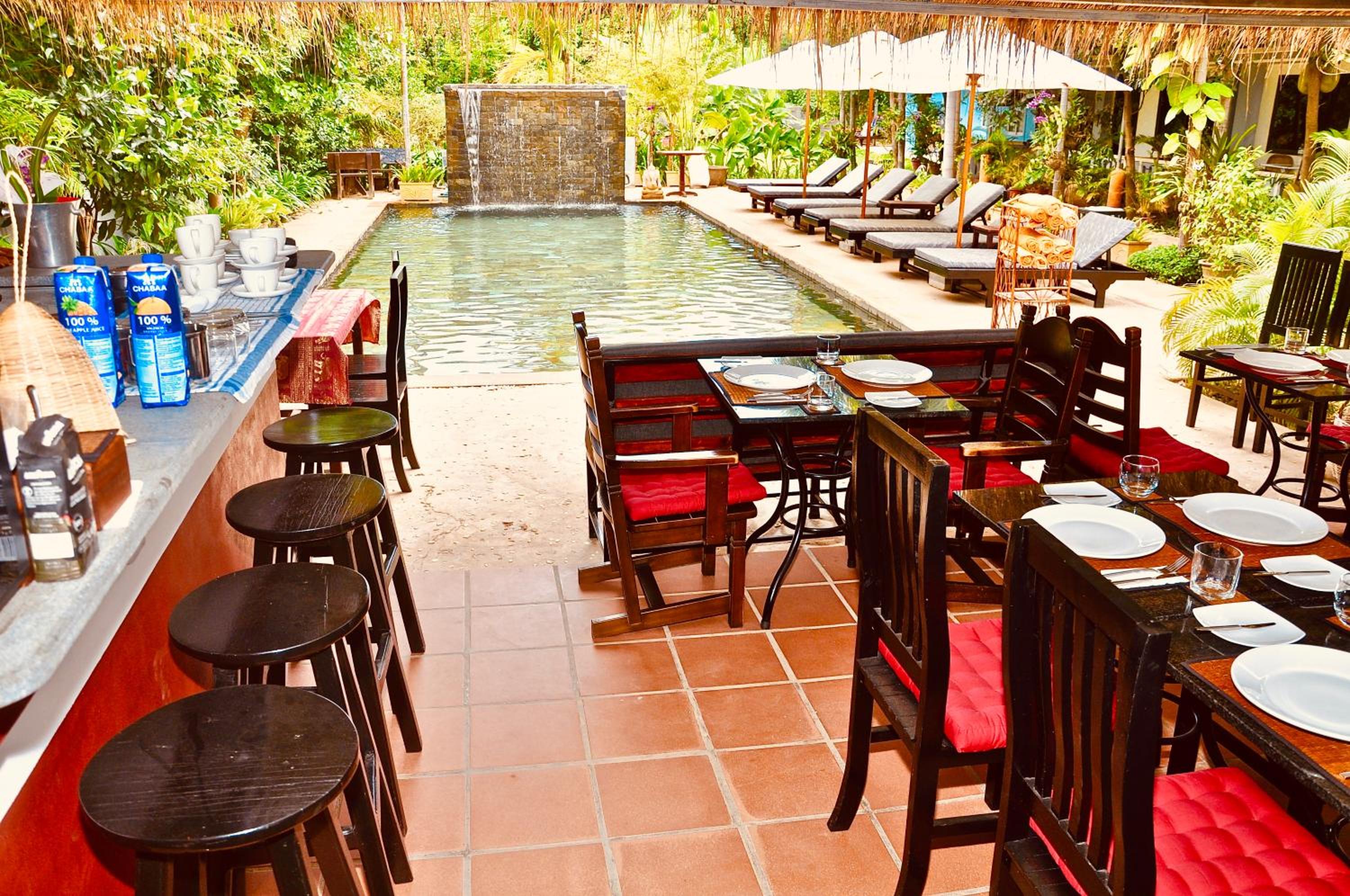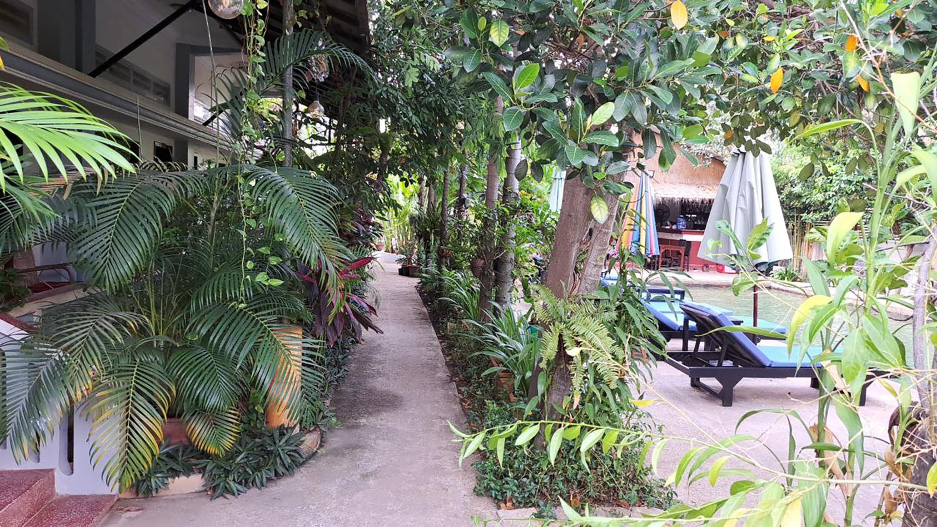 Ottima accoglienza dello staff, molto disponibile sia per l'organizzazione di transfer che per il supporto per tuk tuk. Camera per 4 persone molto ampia, pulita e confortevole. Acqua in bottiglia rifornita quotidianamente. Piscina piccola ma carina, con asciugamani e infradito a disposizione dei clienti, circondata da un giardino con piante rigogliose.