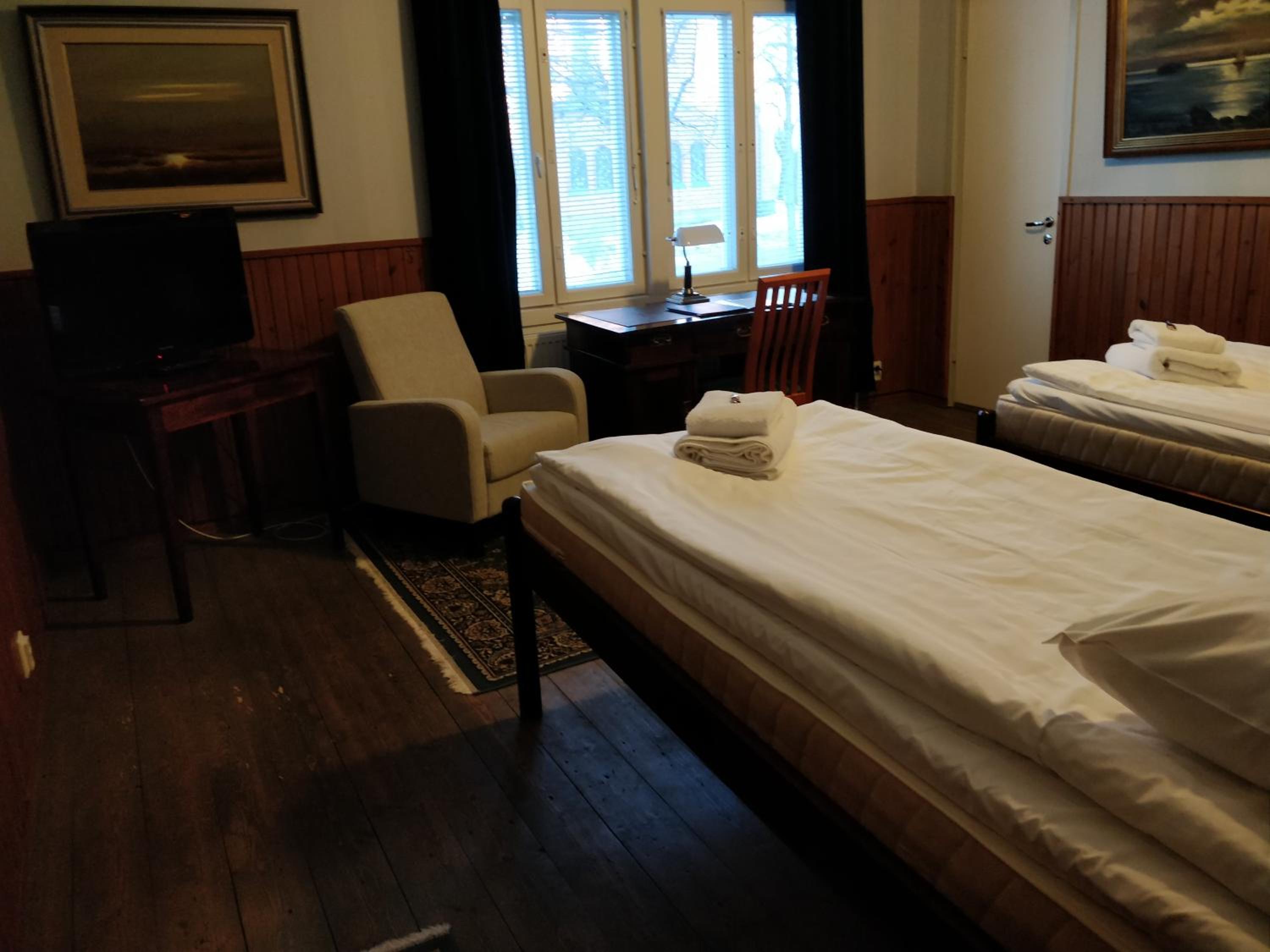 Gasthaus Pooki in Uusikaupunki offers elegant rooms with modern amenities such as a flat-screen TV, cozy bed linens, and a convenient coffee machine.