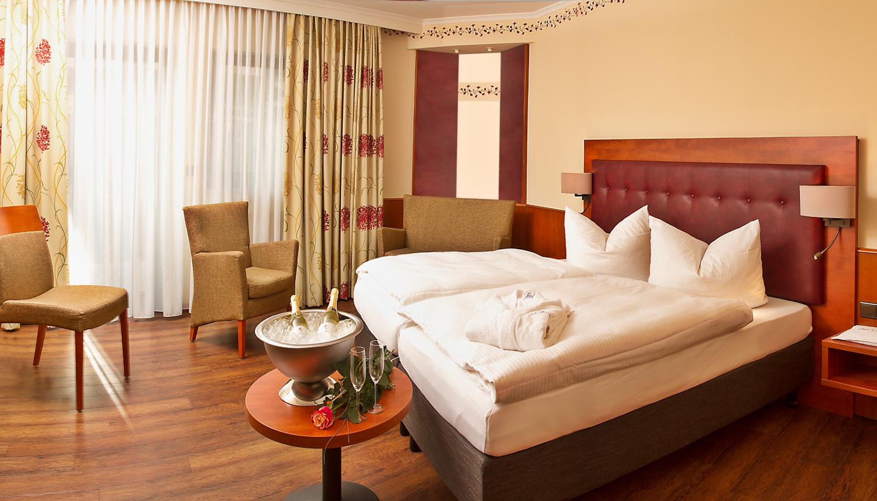 Das Zimmer 4. Stock ganz hinten grottenschlecht. Das Bett schmal und unbequem. Der Teppichboden im Zimmer fleckig, Einrichtung 80er Jahre. Obwohl bei Buchungsbestätigung angegeben, kein w-lan im Zimmer und auch kein Parkplatz, weil das Nachbarhotel abends alle Parklplätze aufgrund !lauten Musikveranstaltungen, und zwar jeden Abend! für sich beansprucht hat. Also war weder an bequemen noch geruhsamen Schlaf zu denken. Beim check-out war kei qualifiziertes Personal vor Ort, das sich meinem Anliegen angenommen hat. Der Grund meiner Reise war, dass ich meine Frau in der Rehaklinik besucht habe.