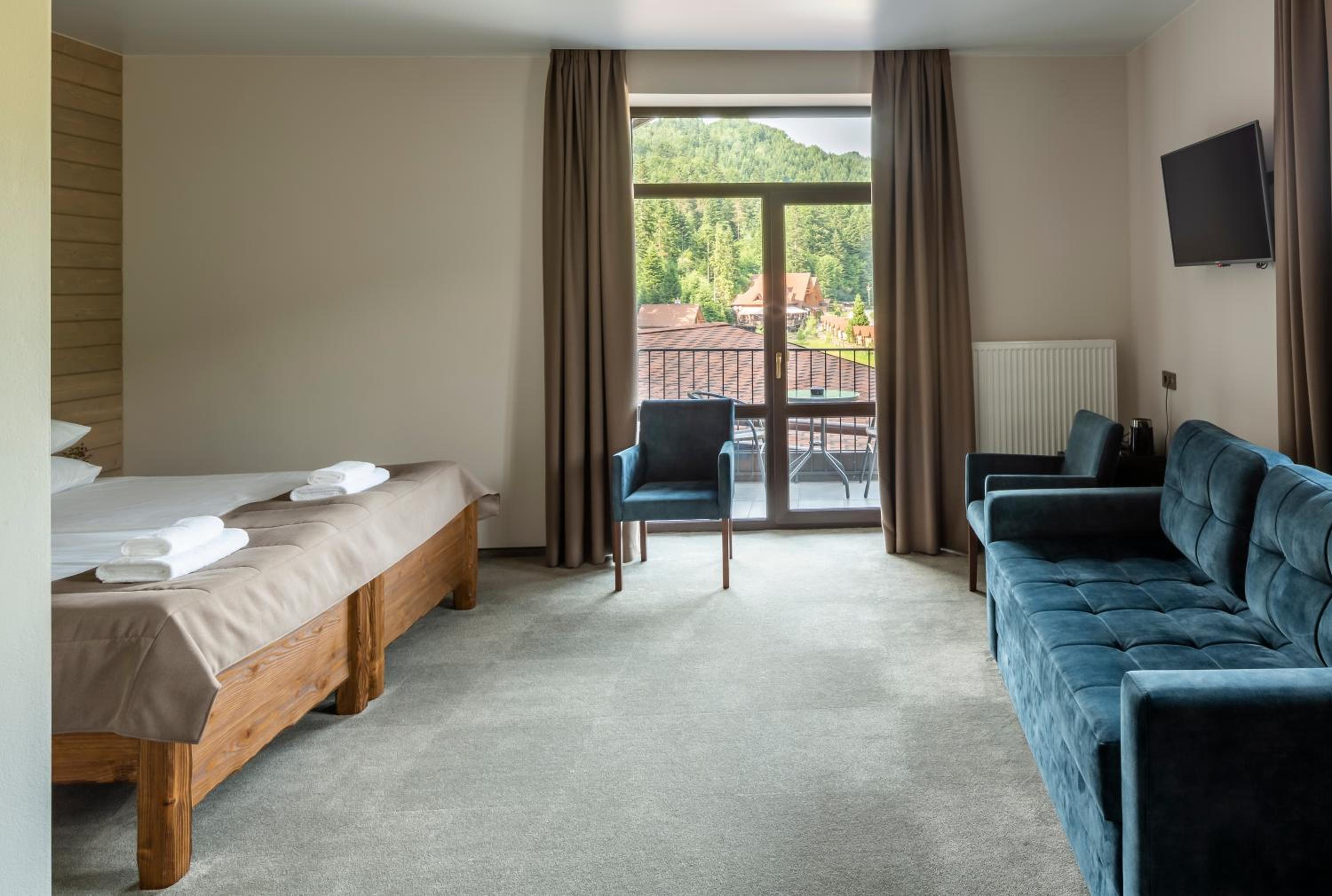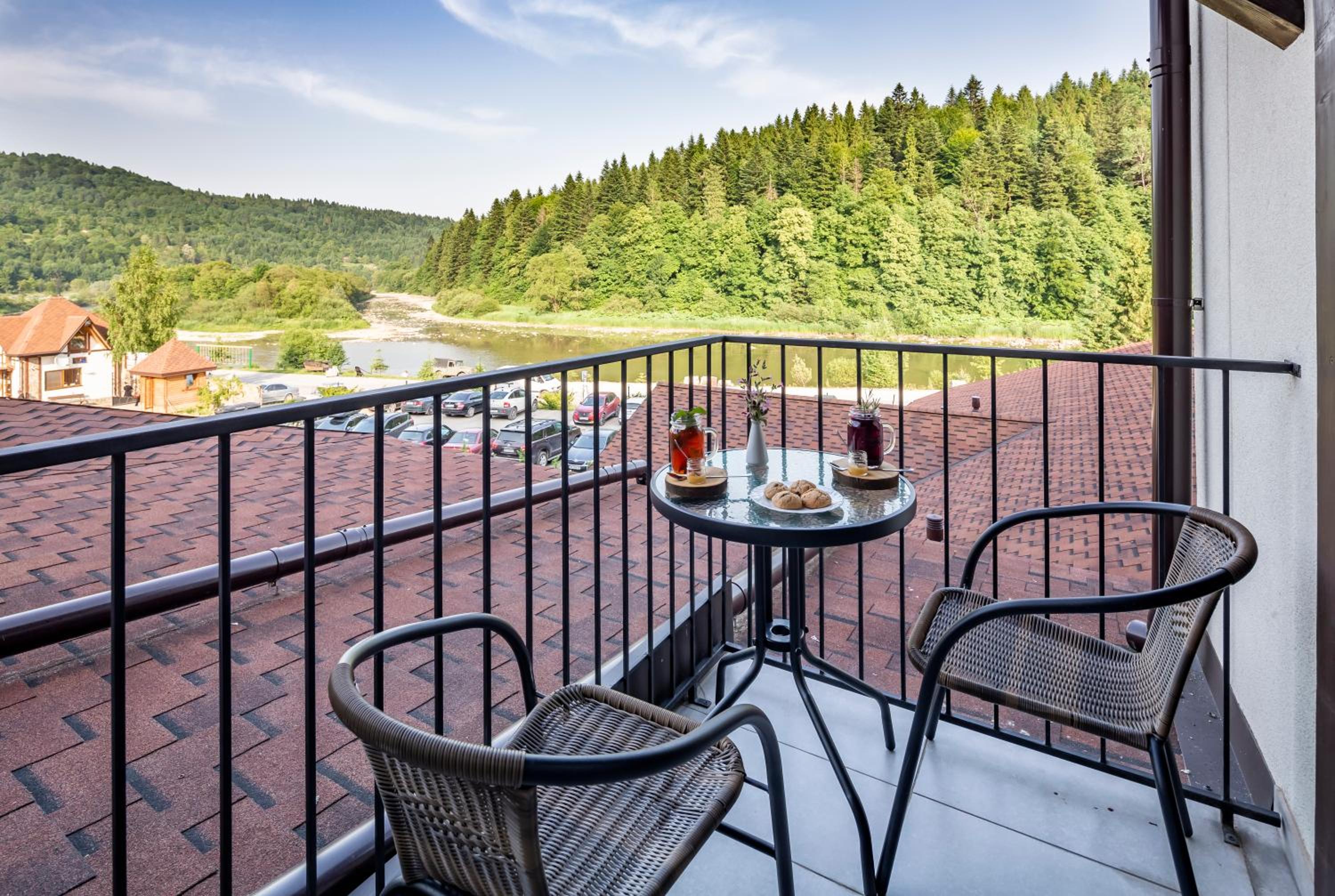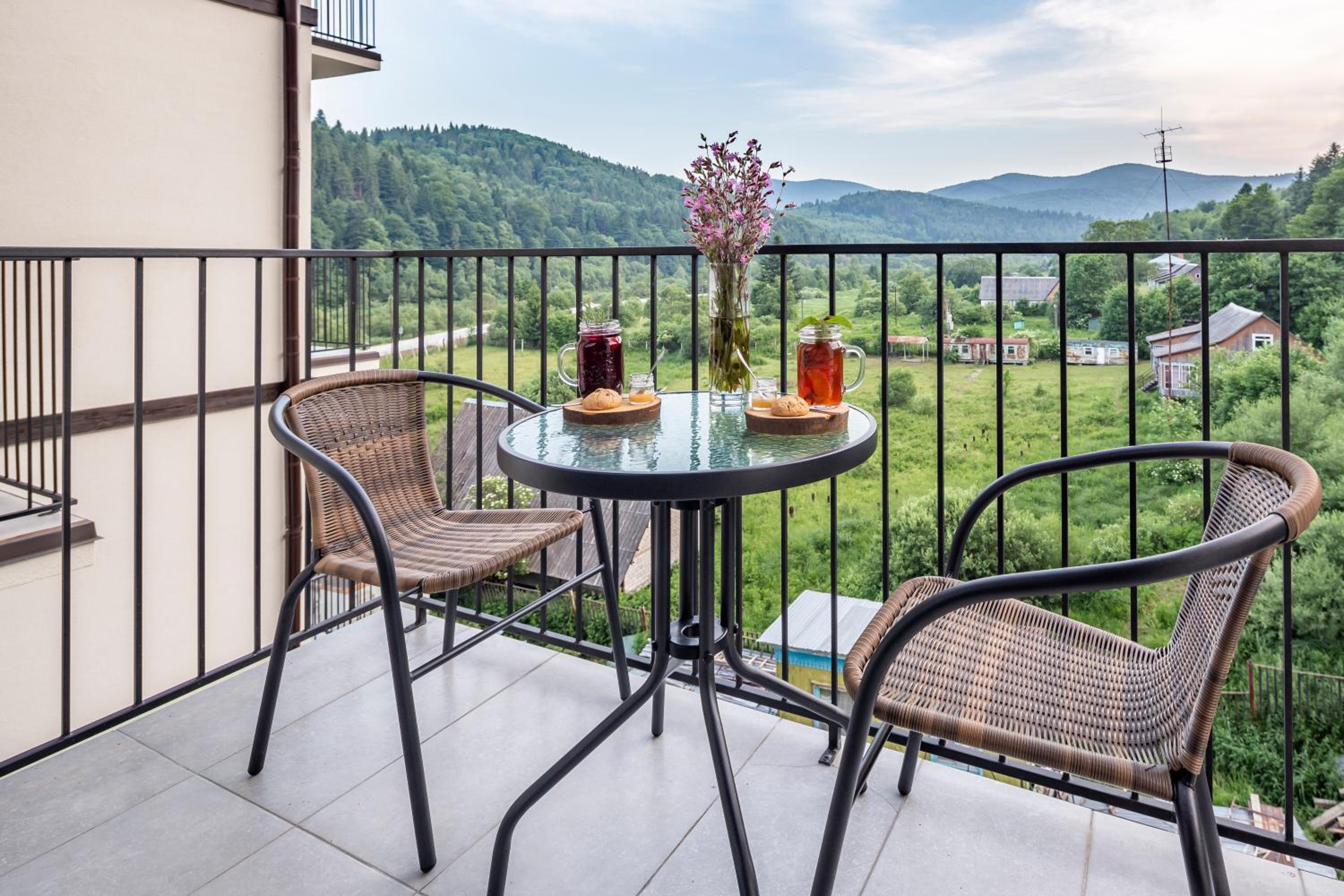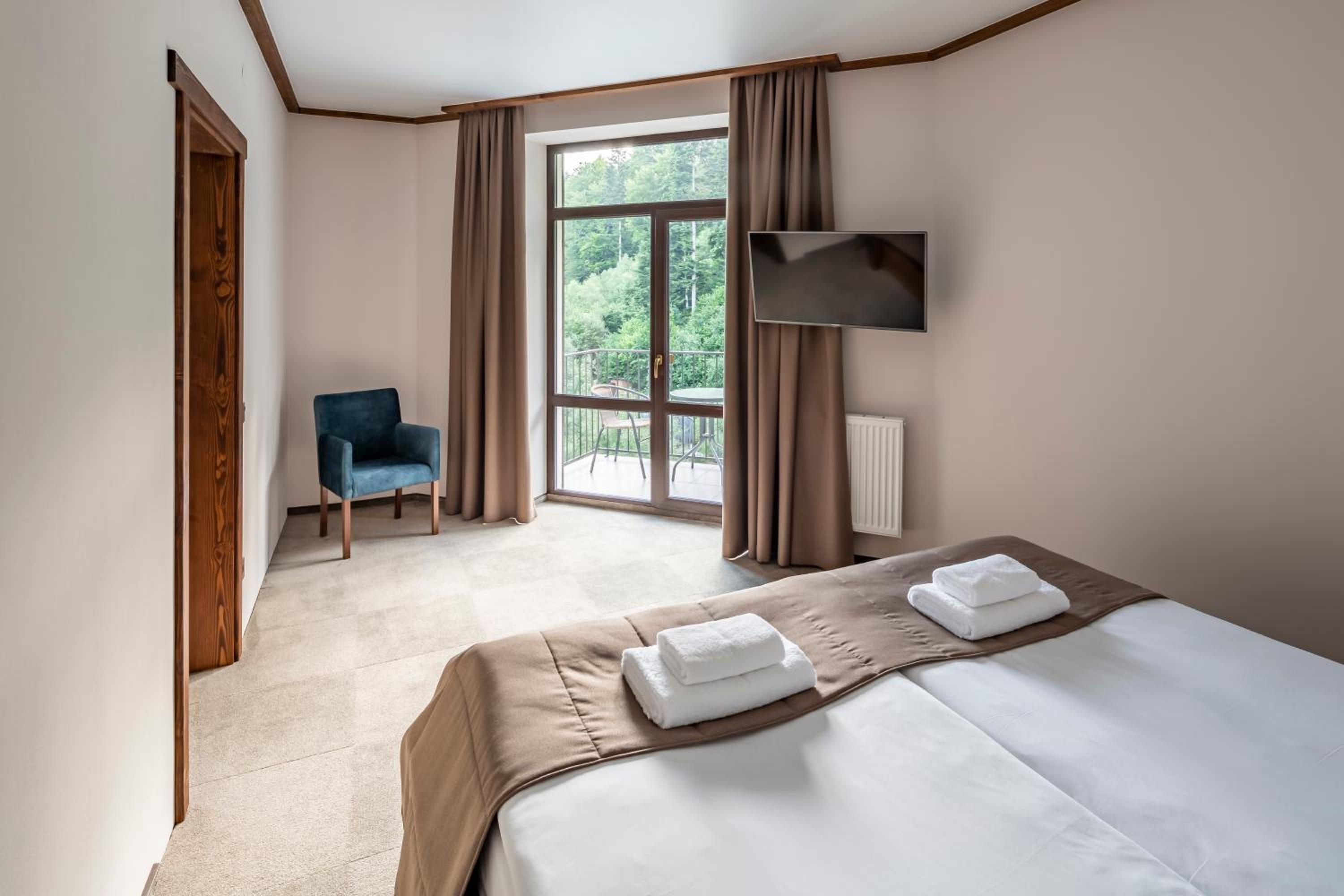 Номер чистий, охайний, із прекрасним краєвидом на гори та ліс.