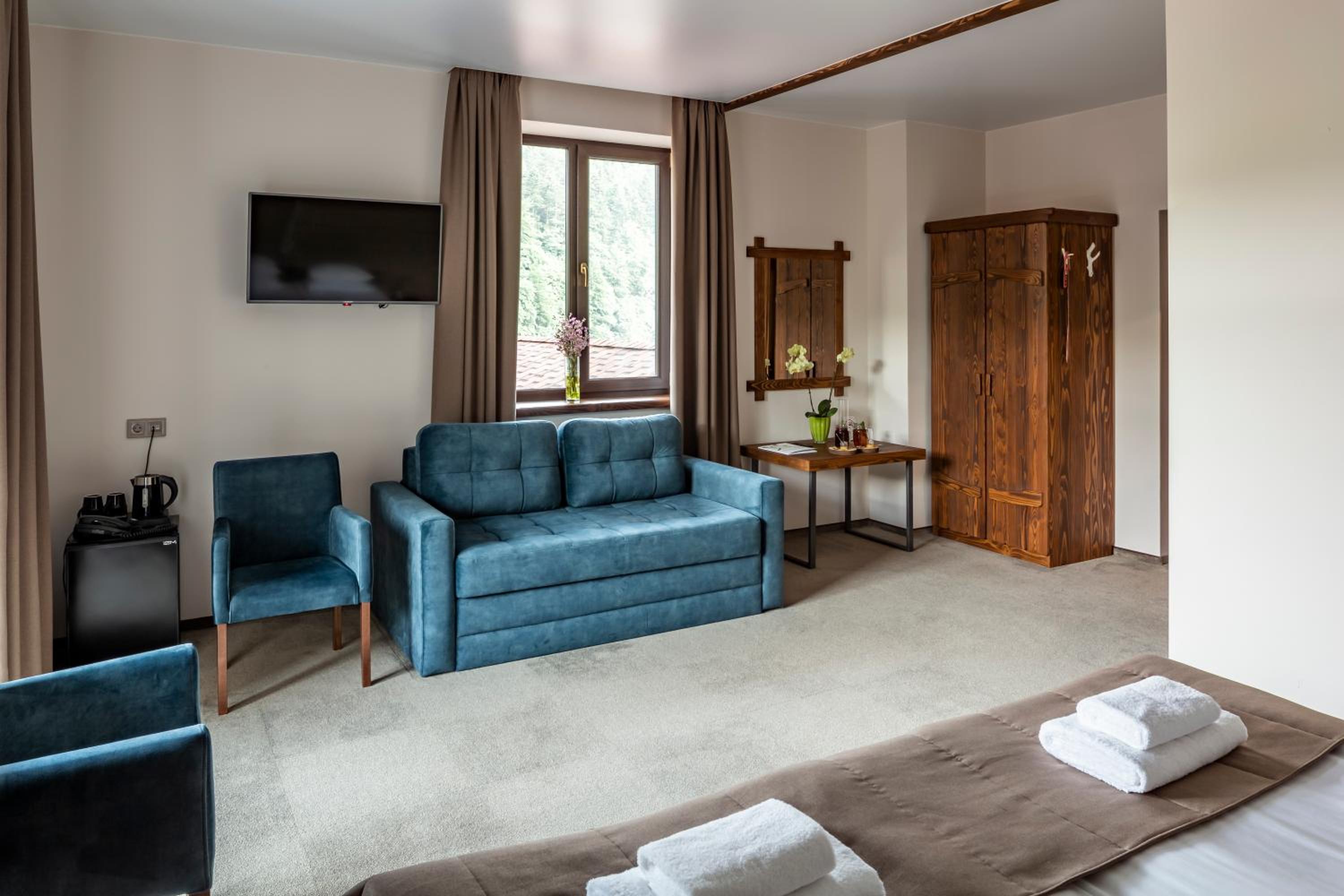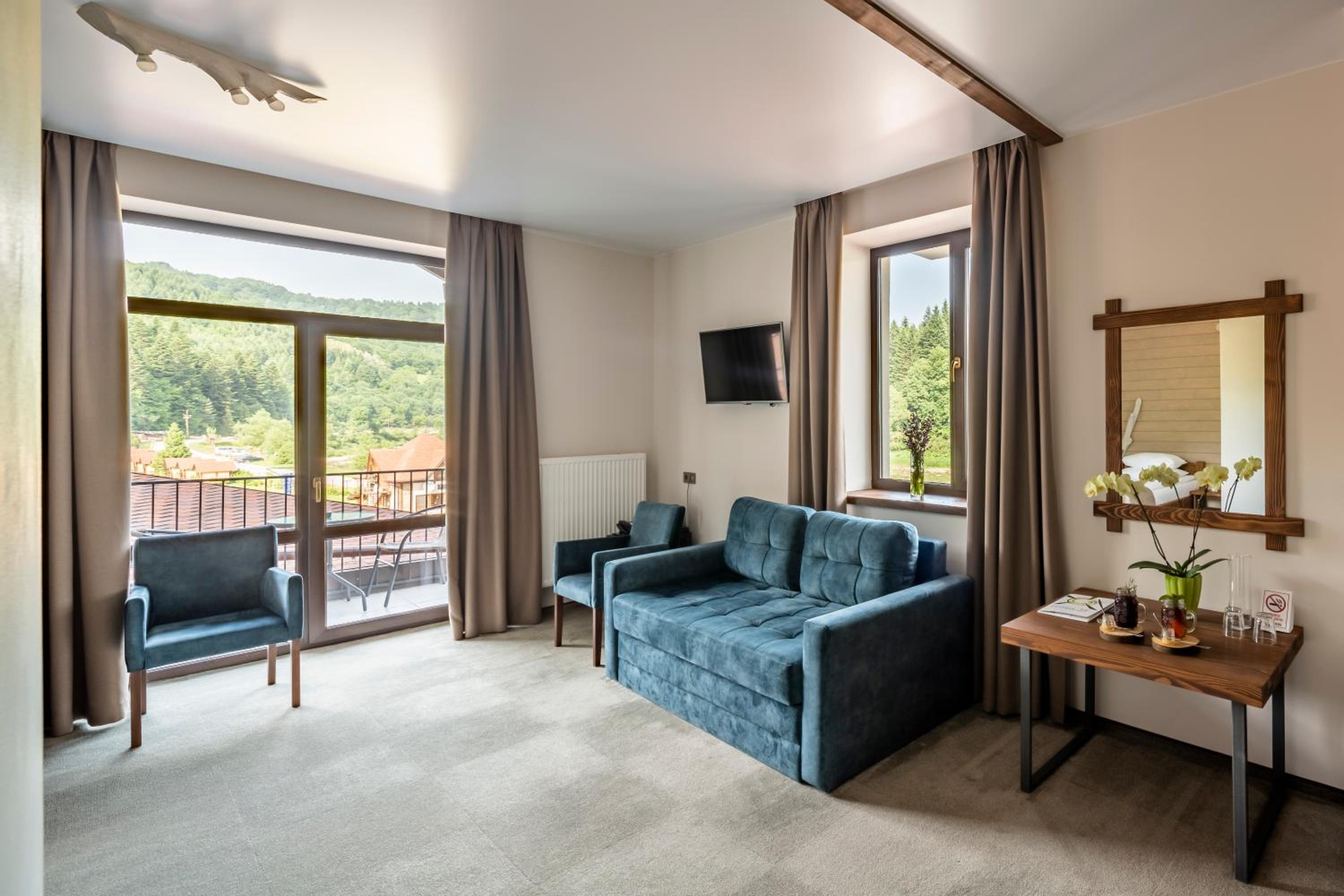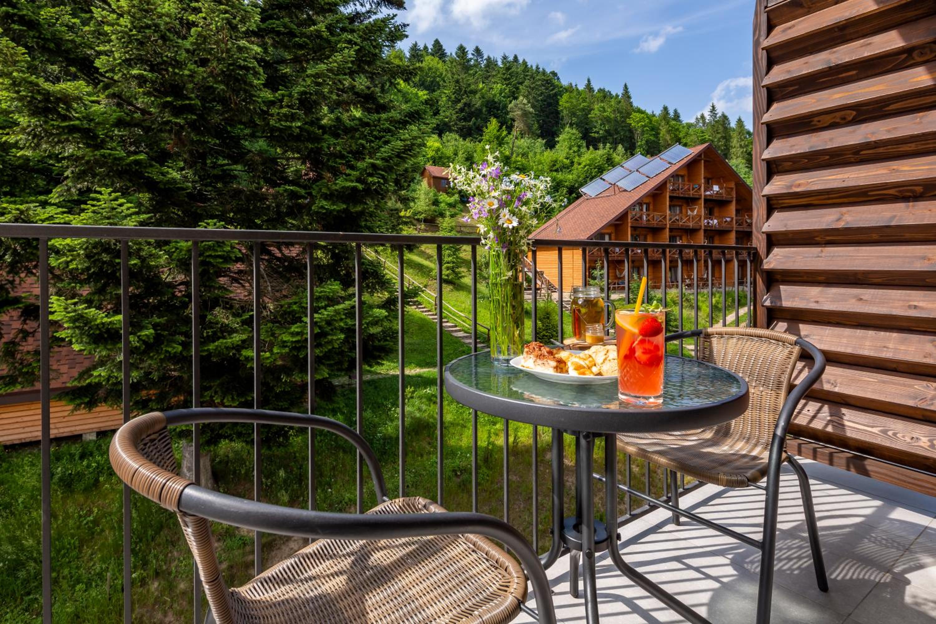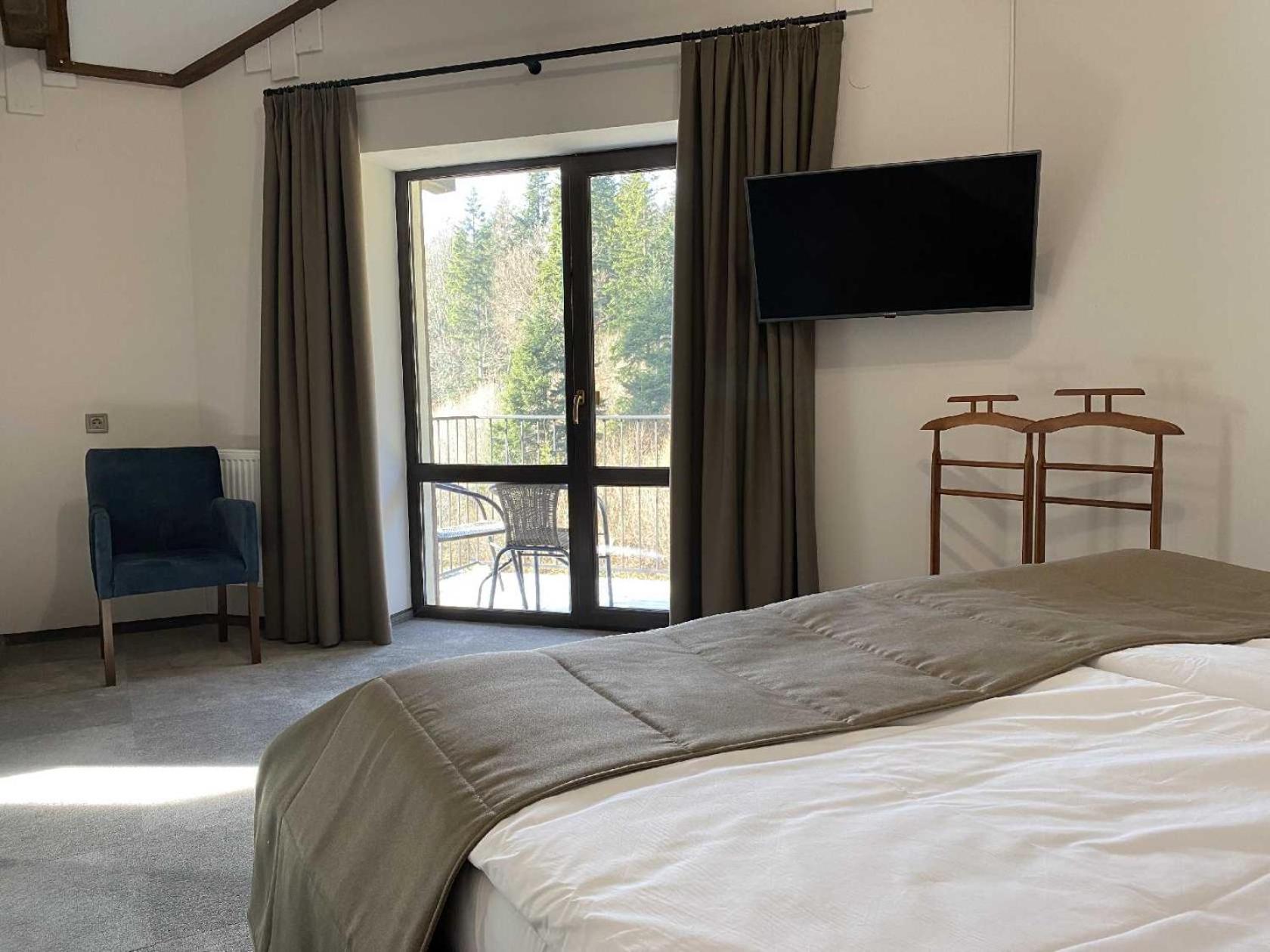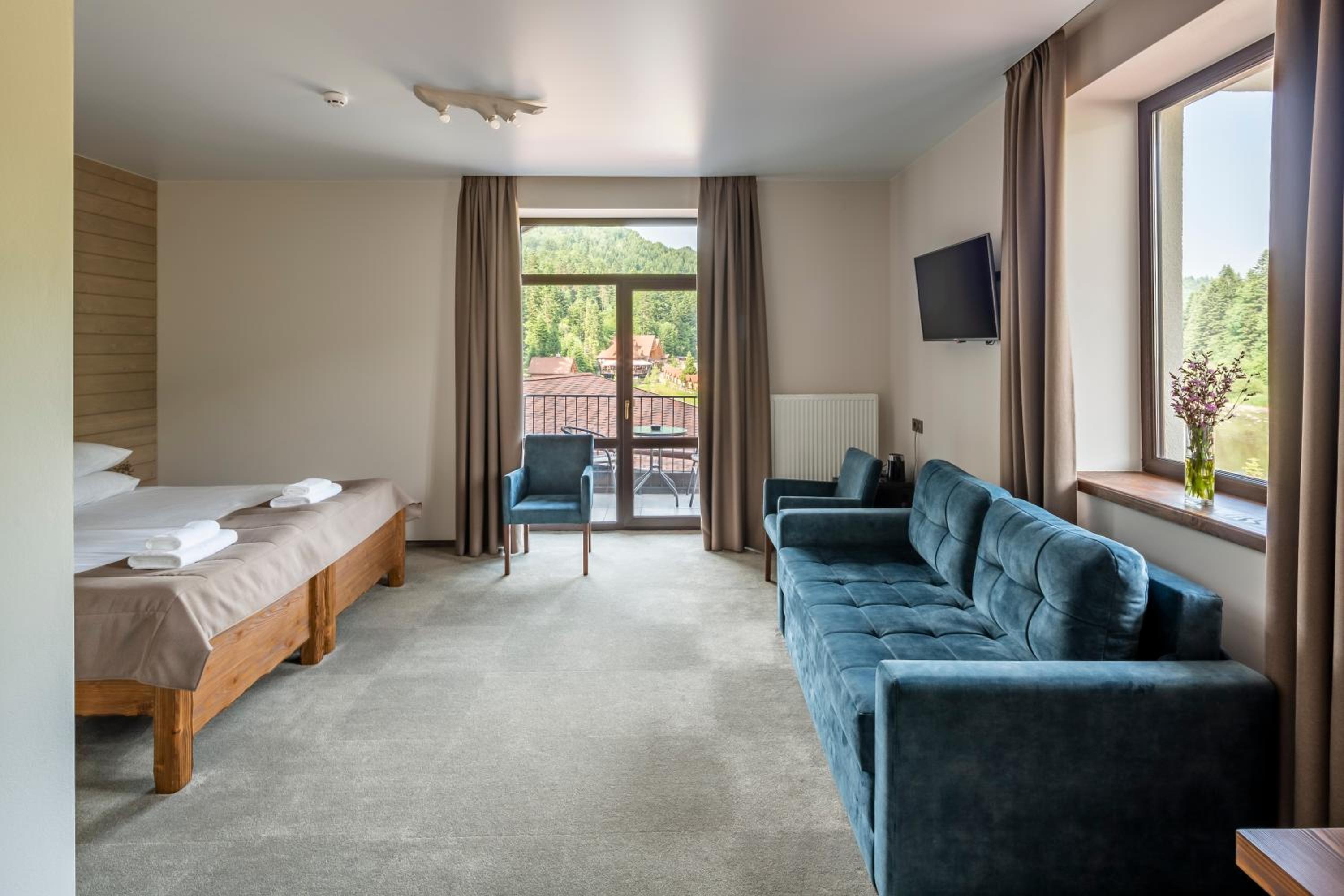 Номер чистий, охайний, із прекрасним краєвидом на гори та ліс.