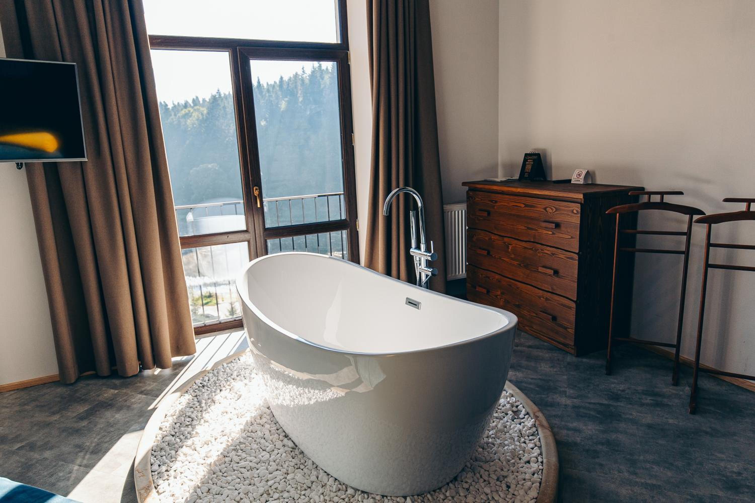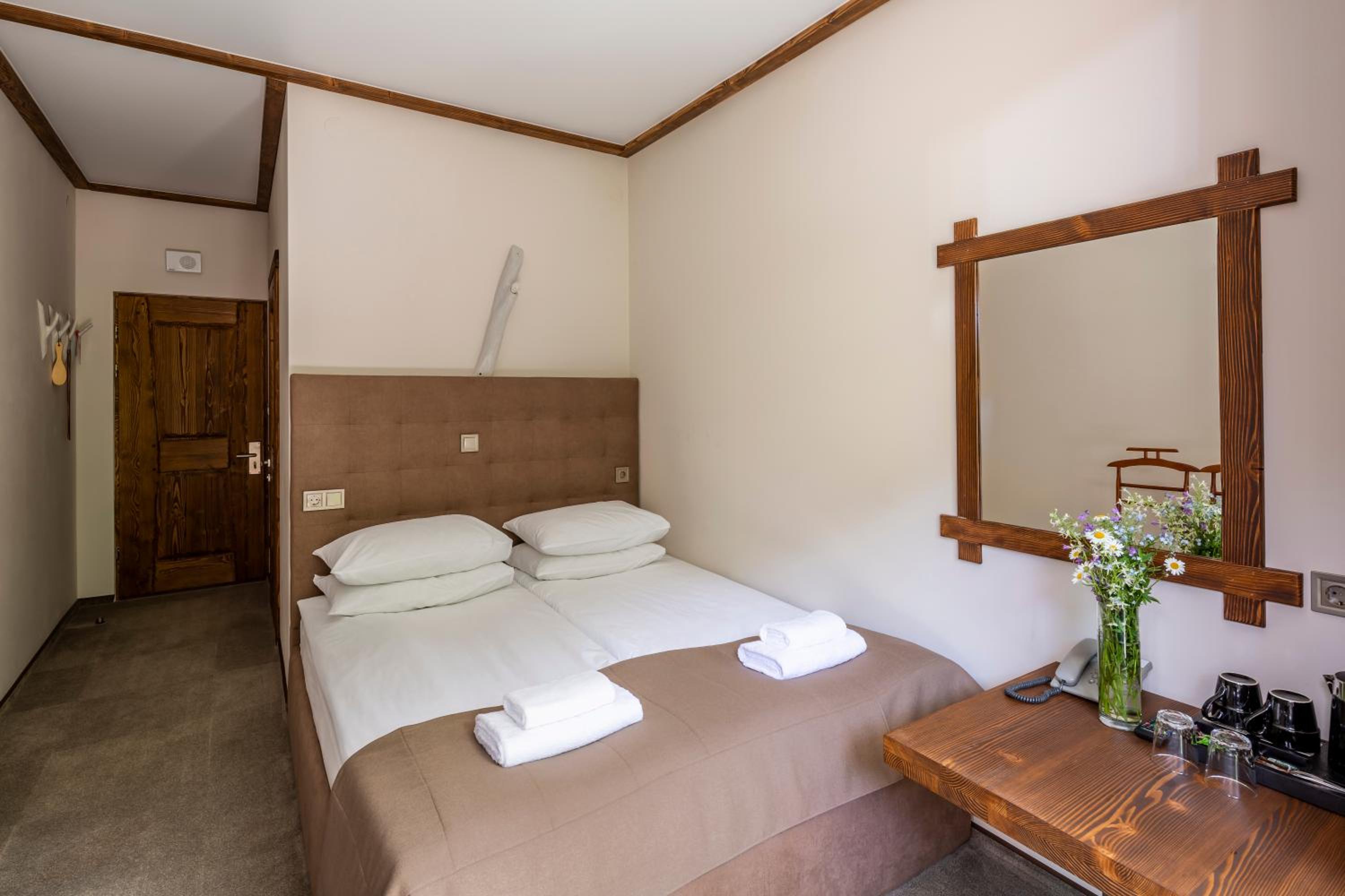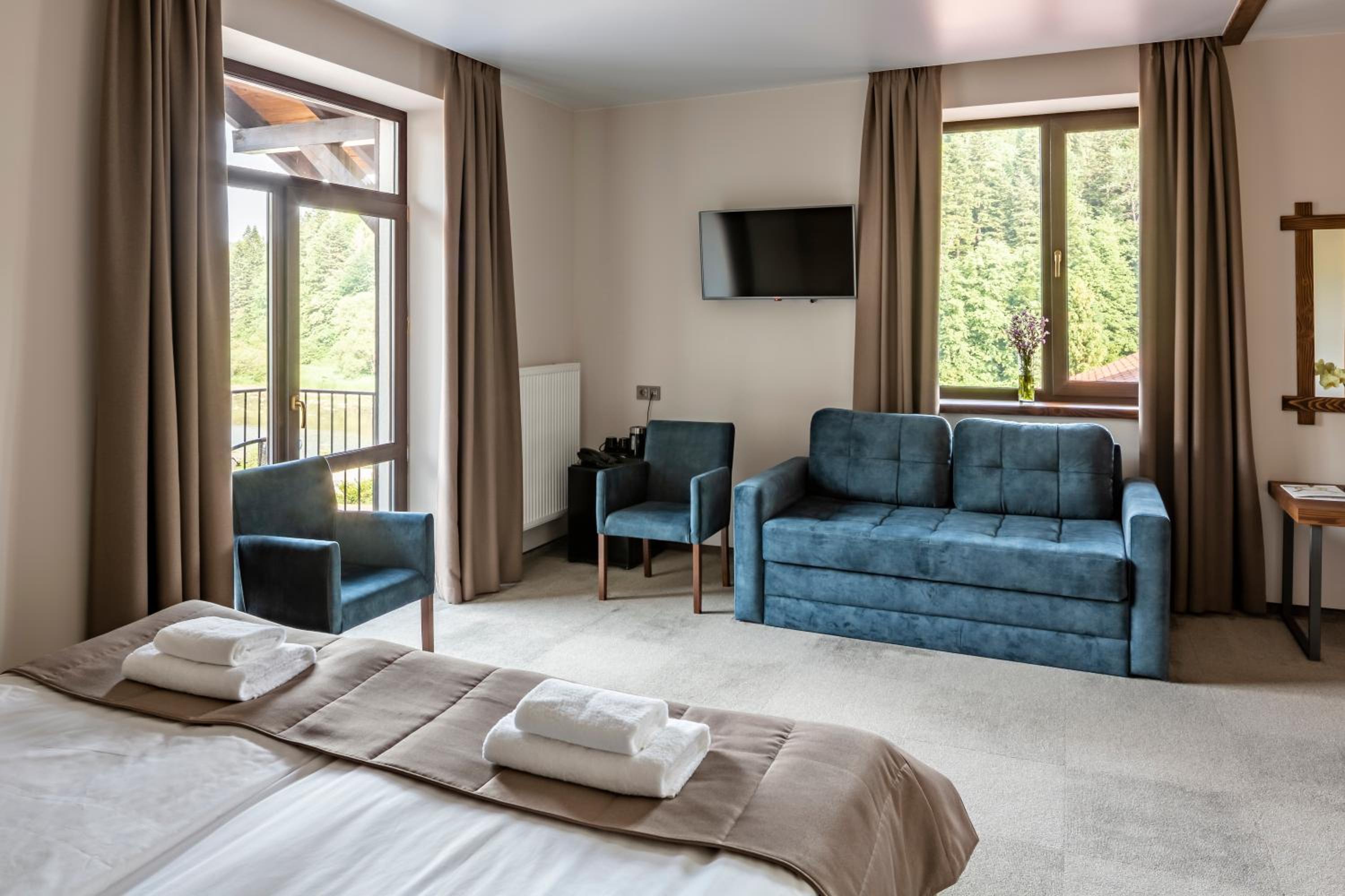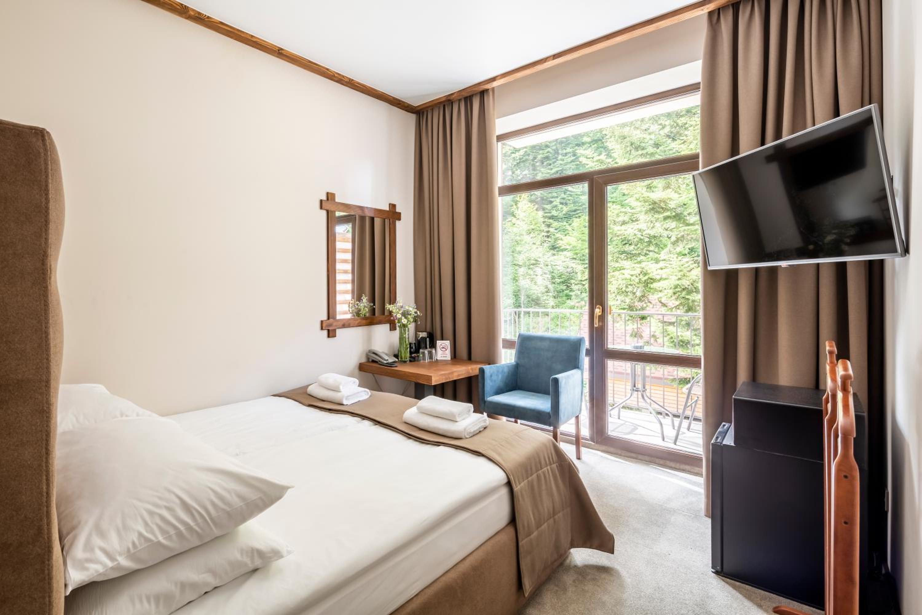 Номер чистий, охайний, із прекрасним краєвидом на гори та ліс.