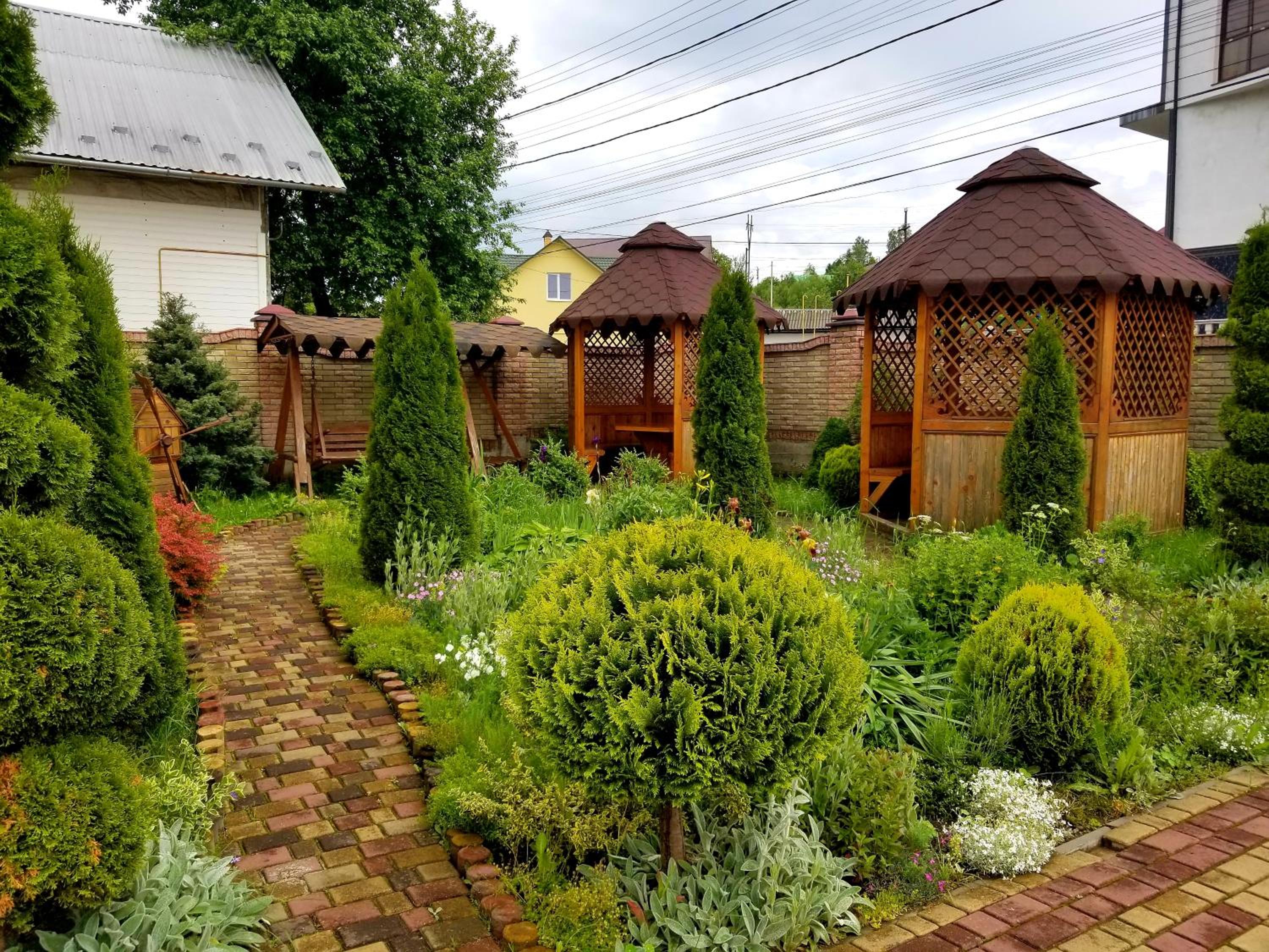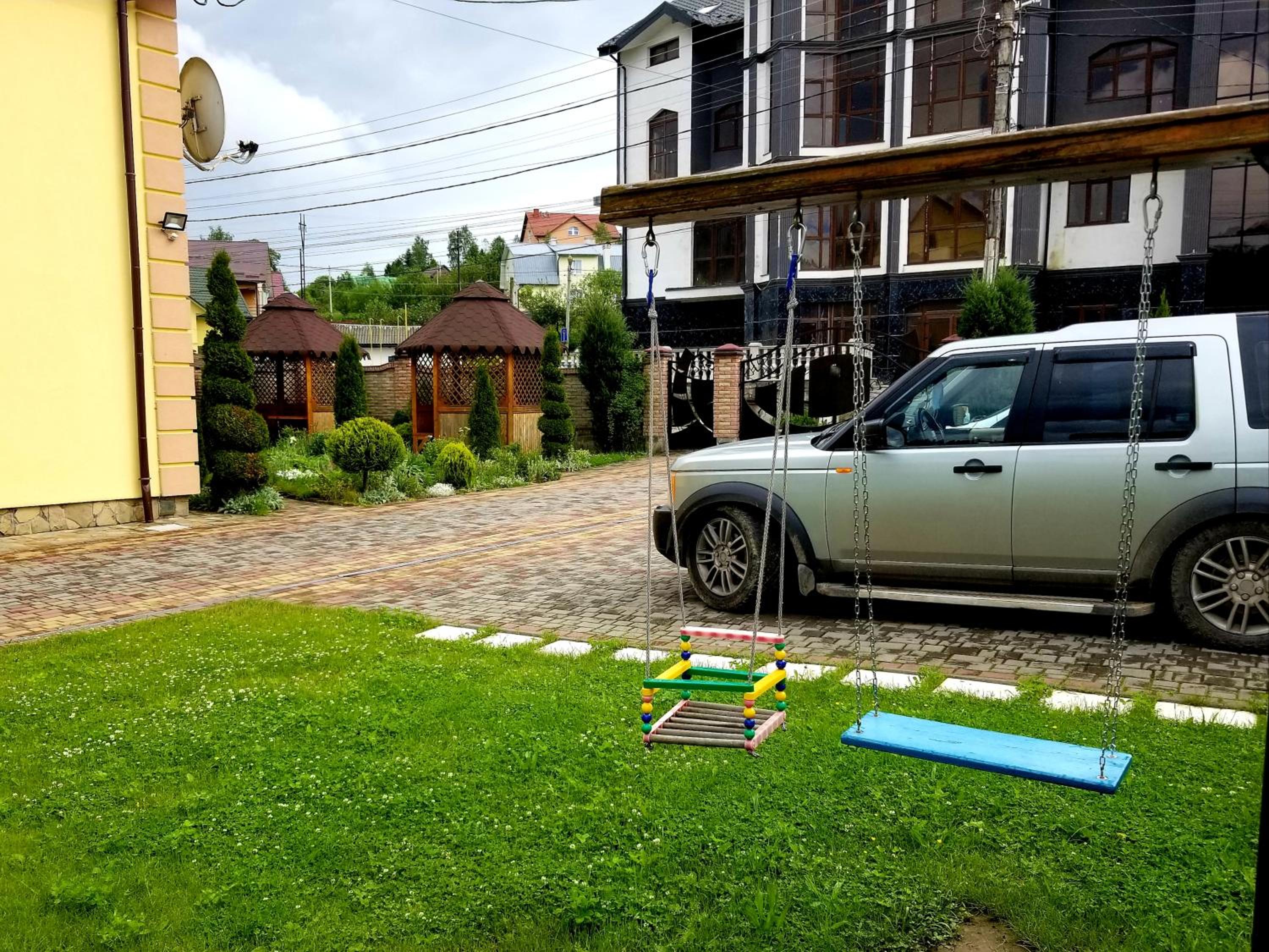 сподобалось те, що на теріторії садиби є альтанки, велика гойдалка, клумба з квіточками.