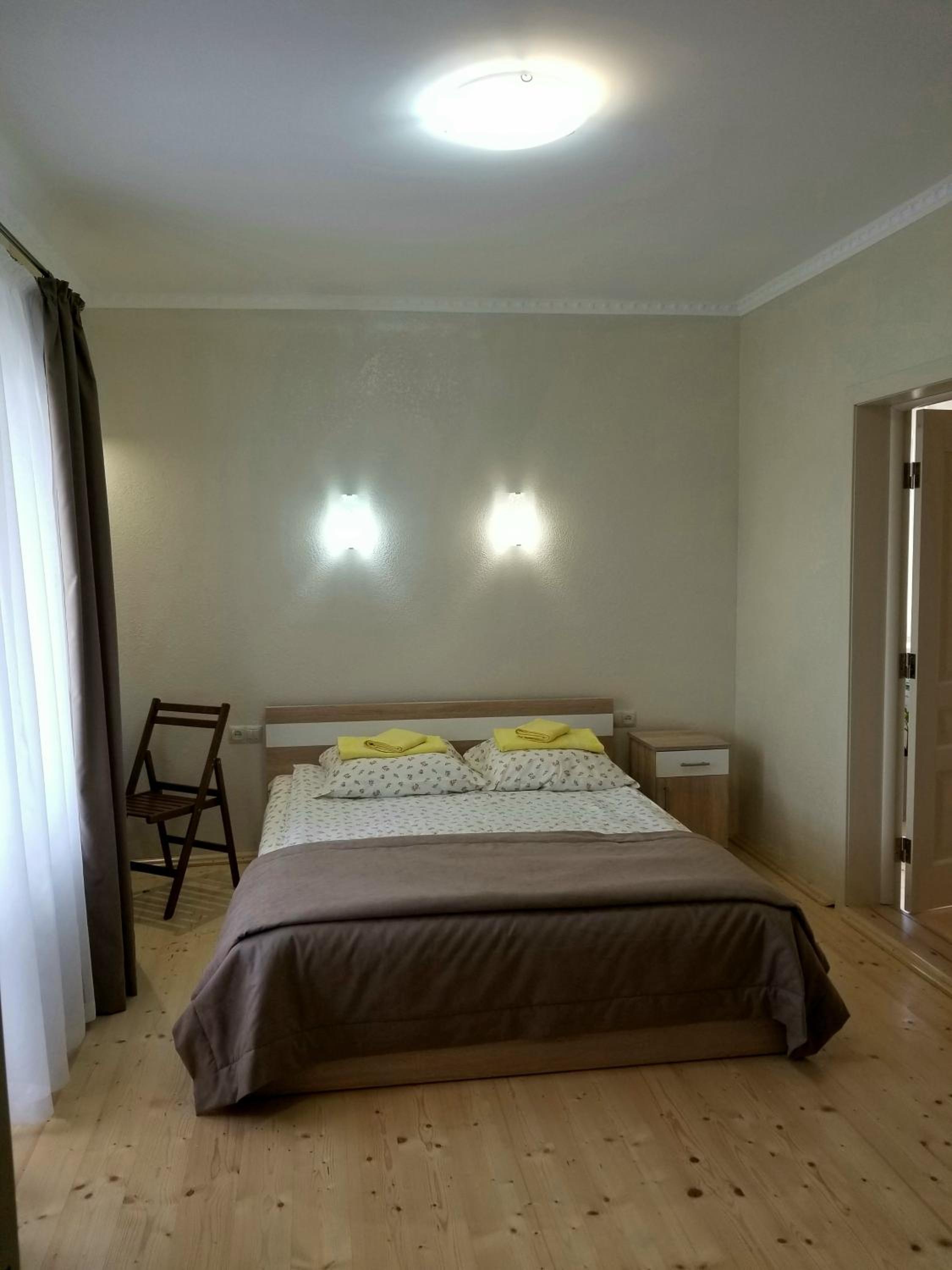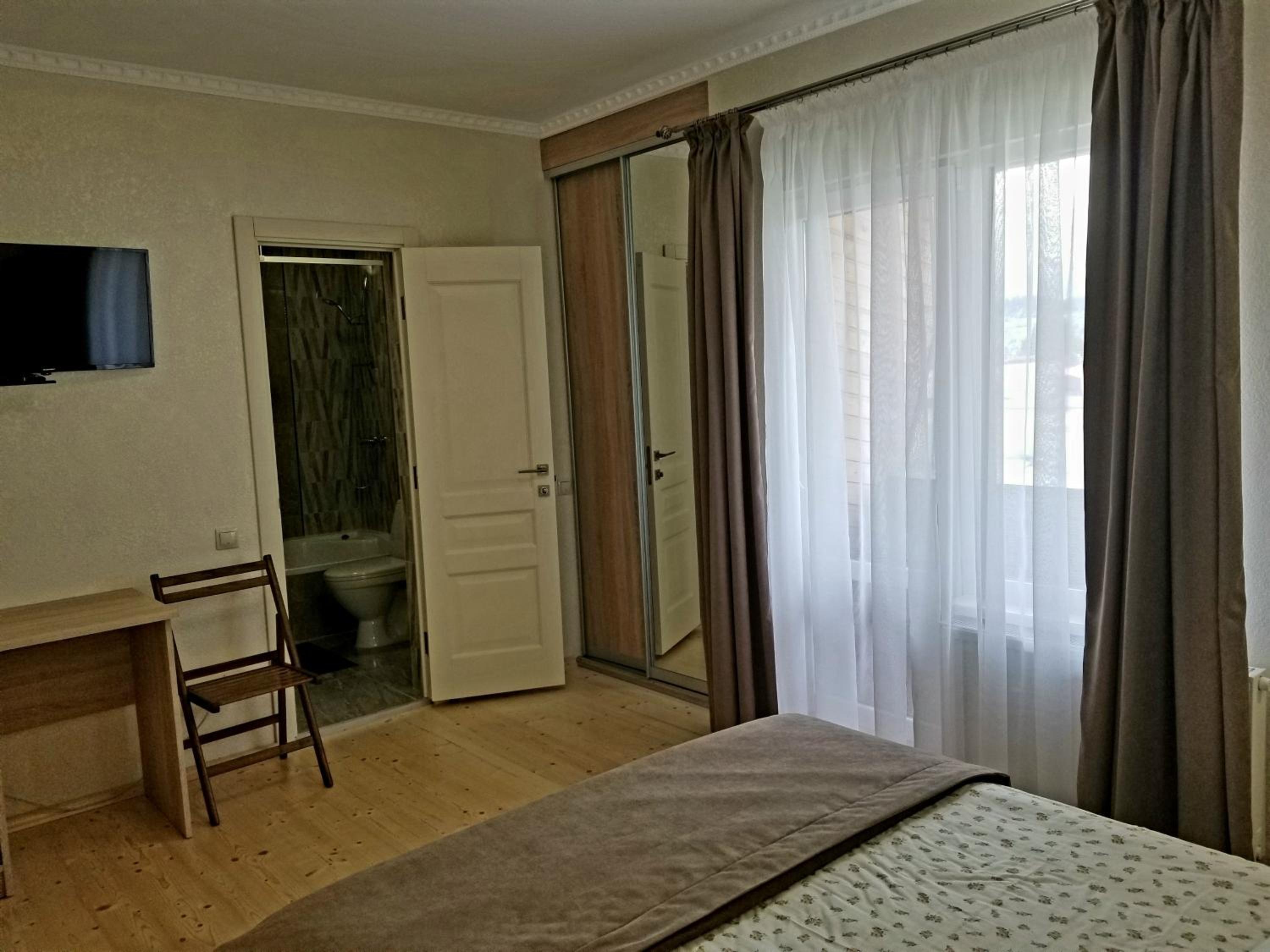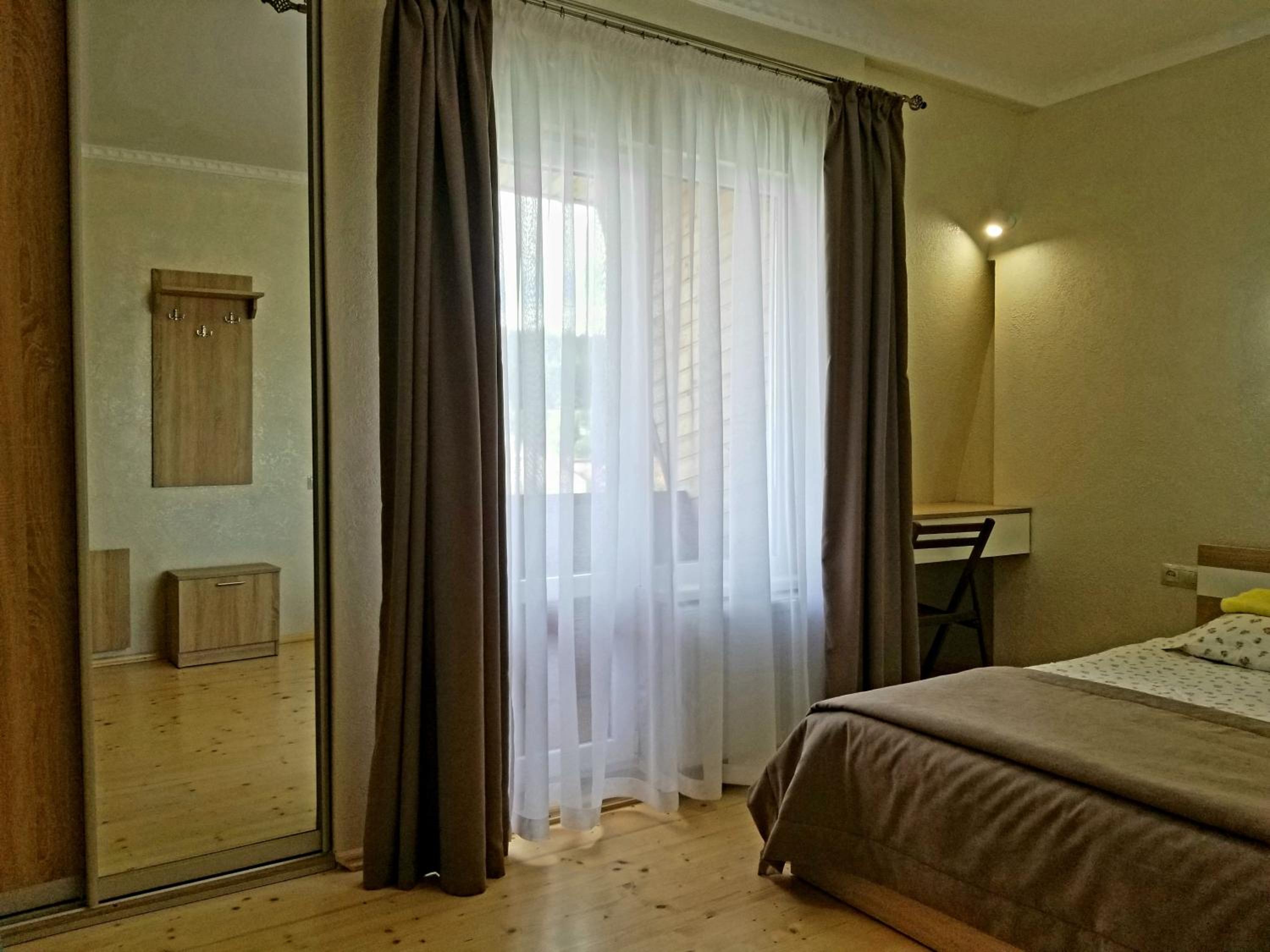 Чудовий номер, гарний вид з балкону, розташування- краще не придумаєш, настільки зручно. Вийшла за ворота садиби 20 м і магазин, в іншу сторону 30 м і ринок, столова поруч