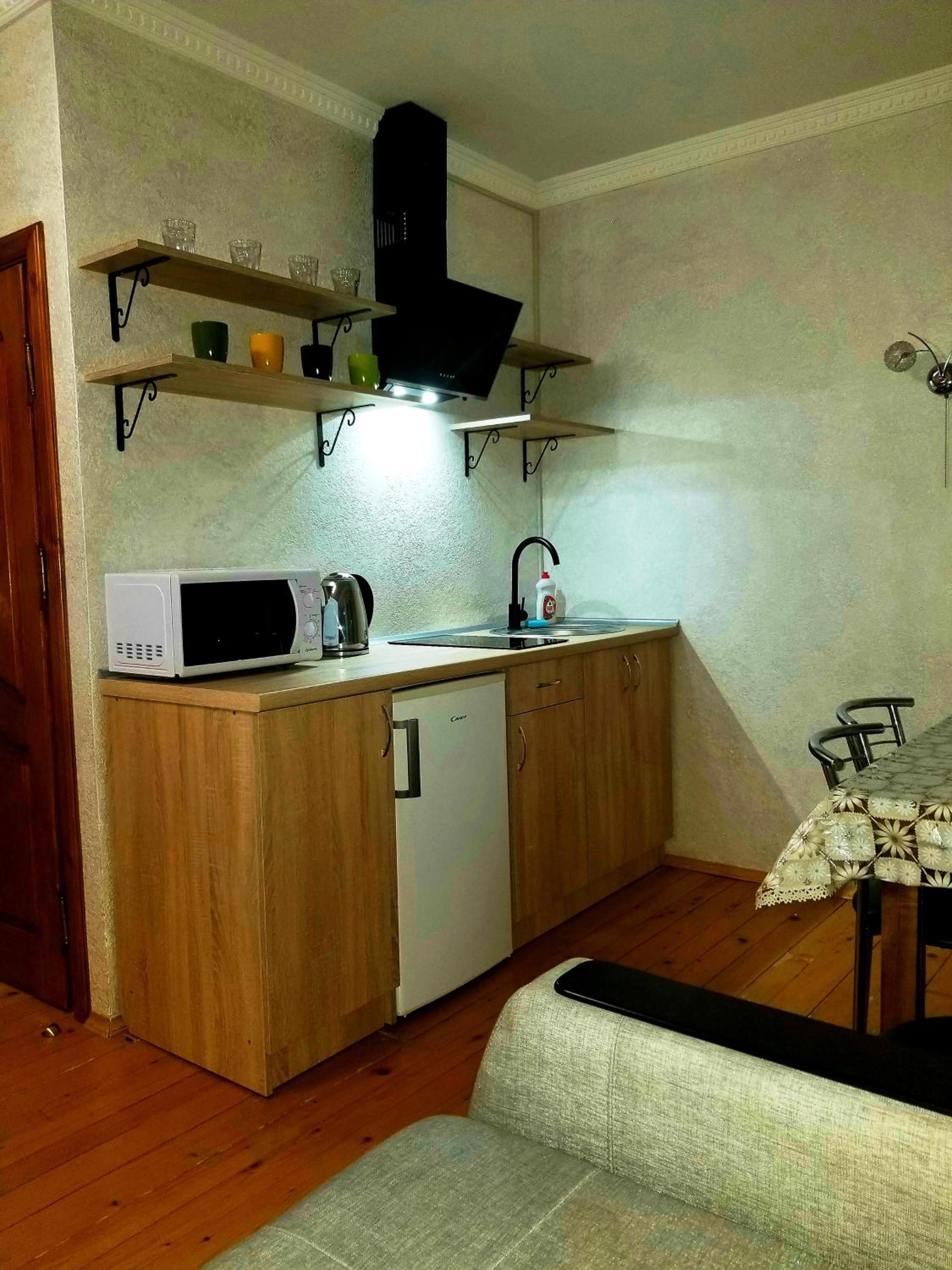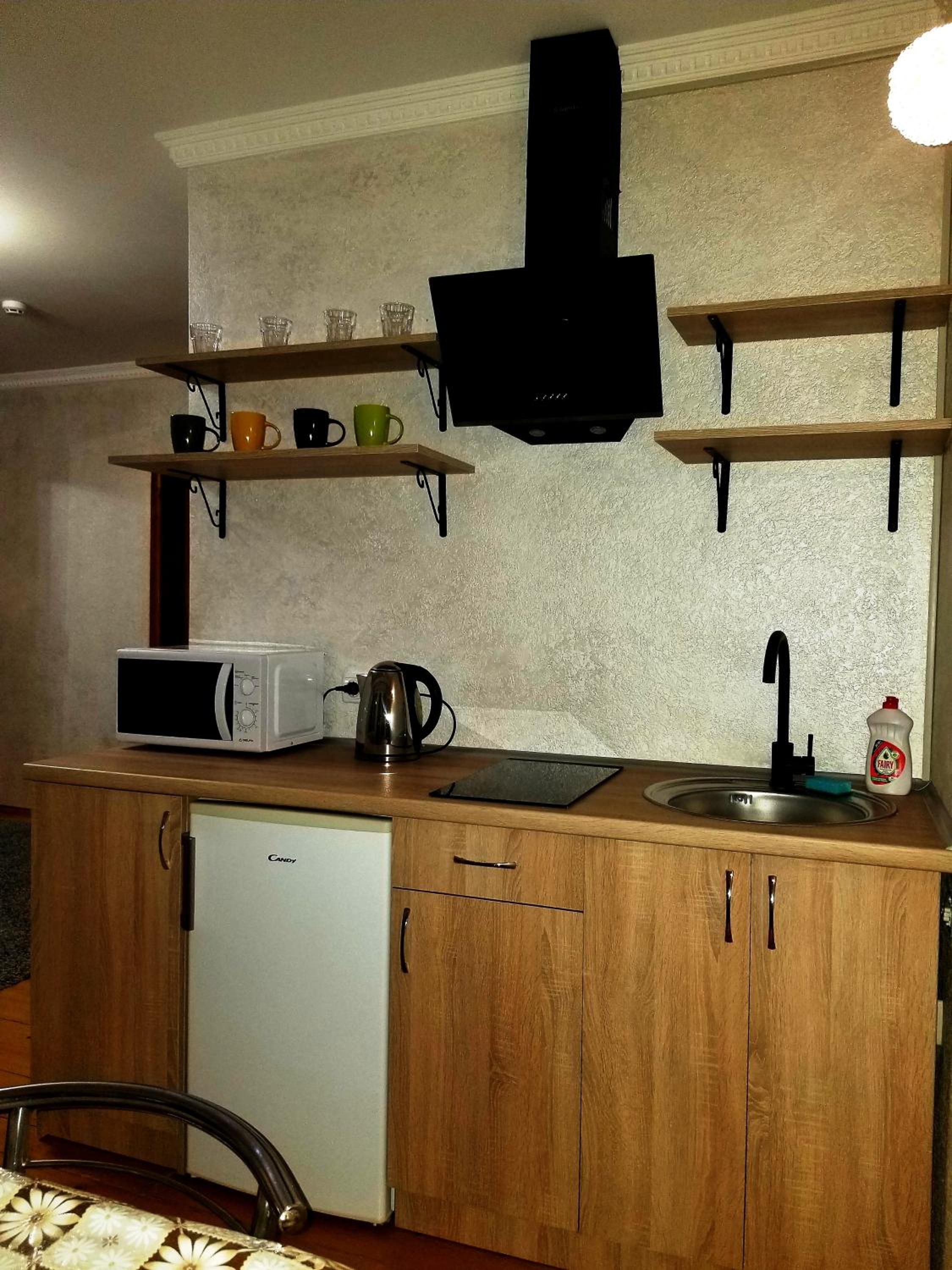 Особливо зручно, що є кухня, та можливість приготувати їжу, гарні умови, посуд та все що потрібно є.
