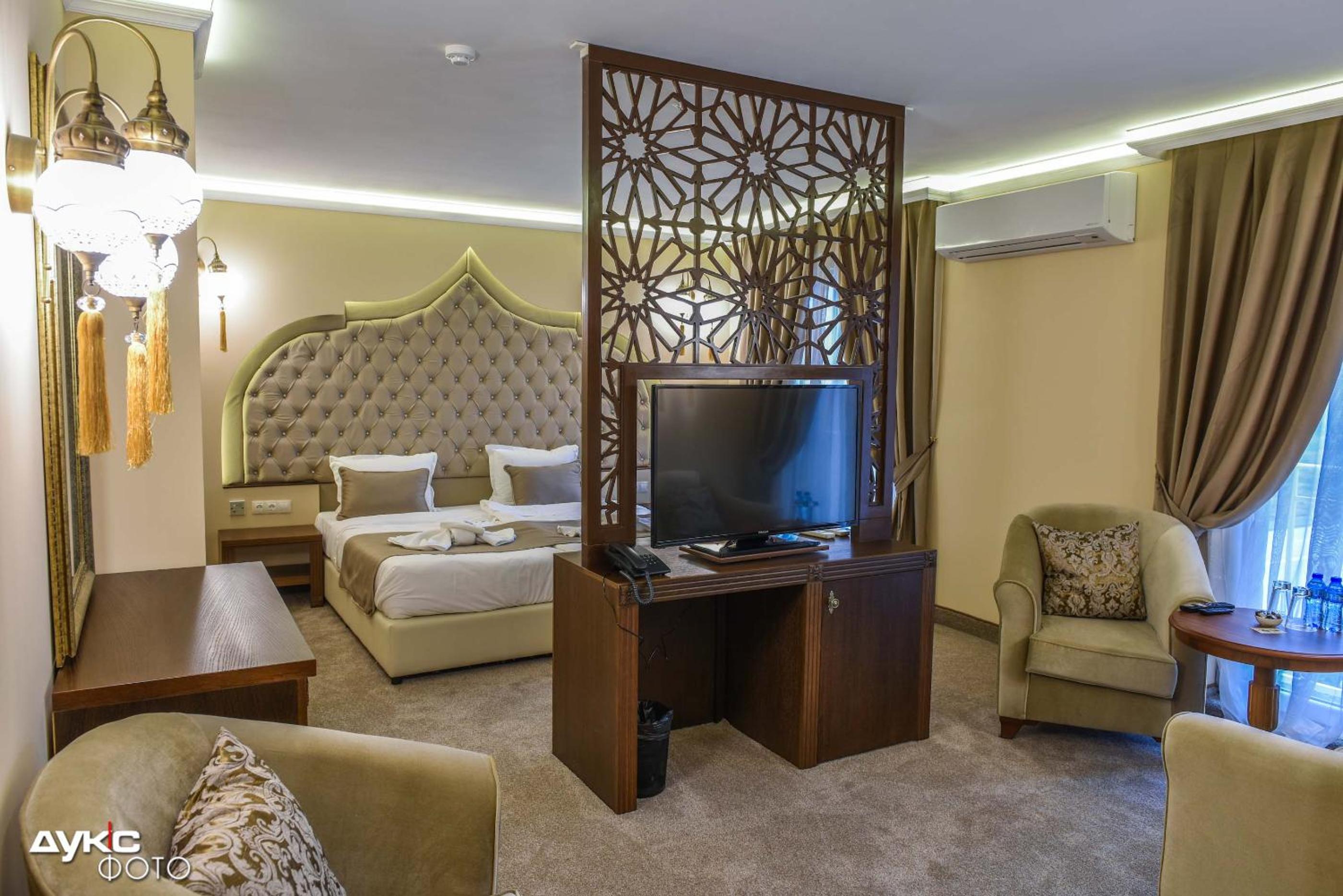 Sahara Hotel in Svilengrad, just 47 km from Ardas River, offers a delightful stay with free bikes, private parking, and a charming garden. The property boasts a bar and is conveniently close to Selimiye Mosque. The rooms are elegantly furnished with air conditioning, flat-screen TV, and a private bathroom.