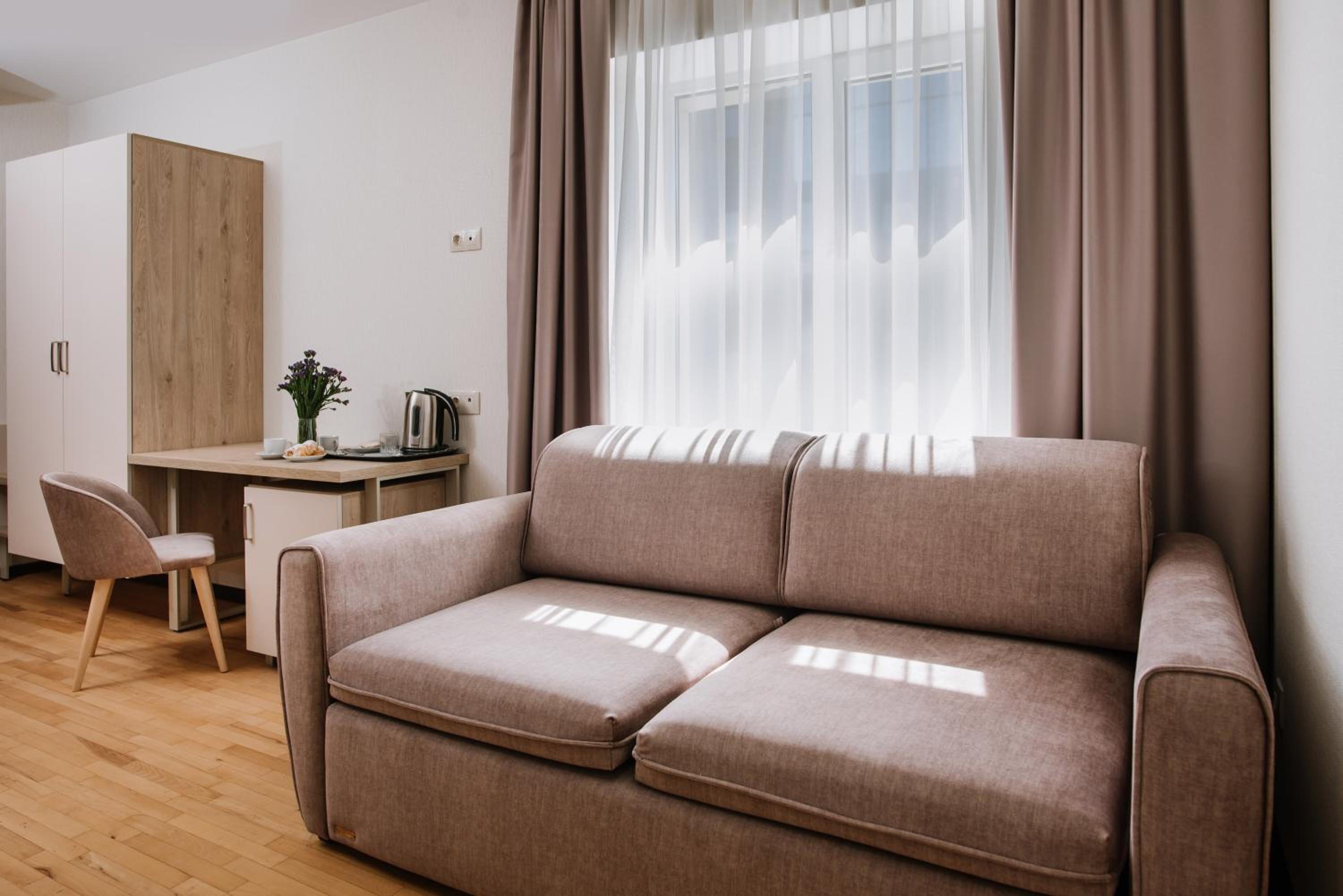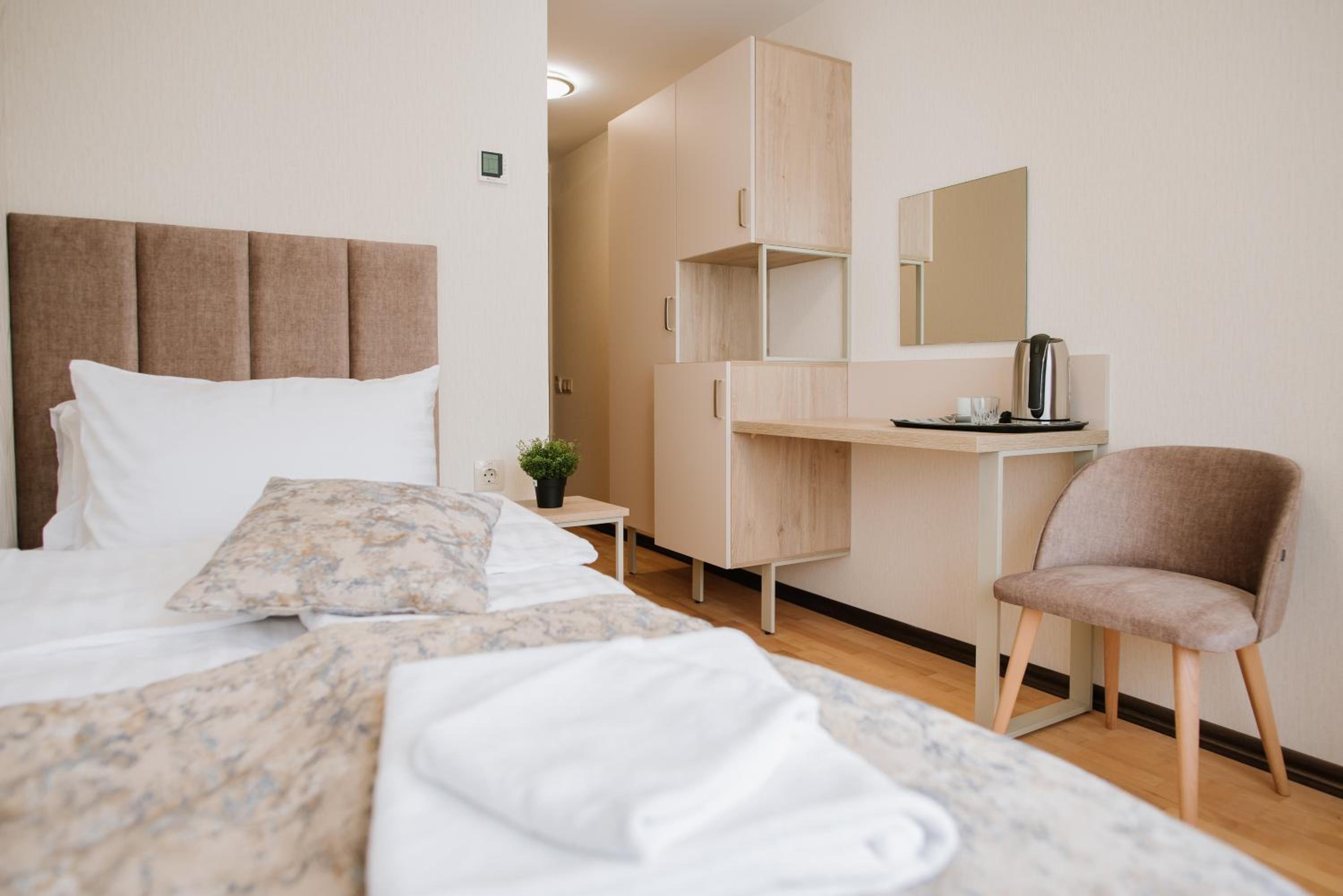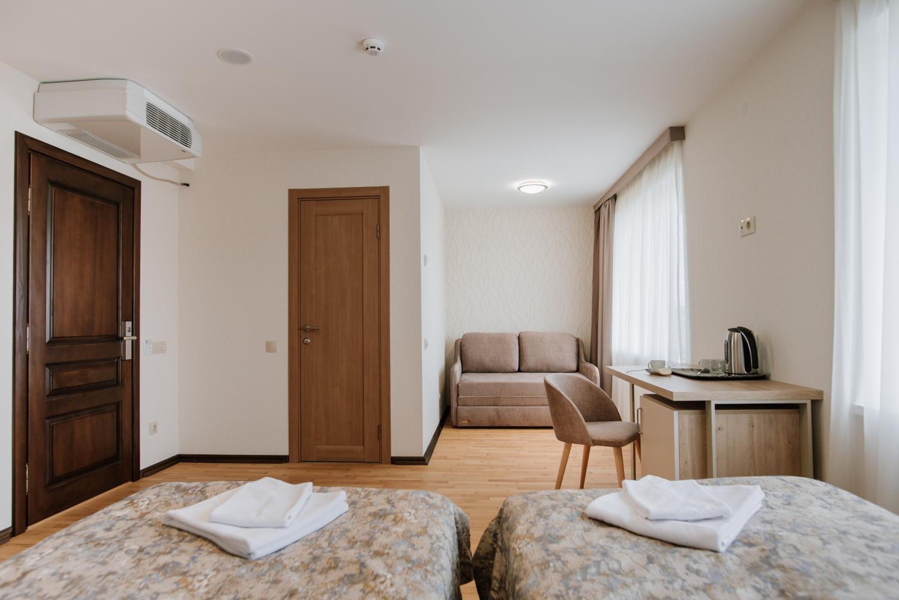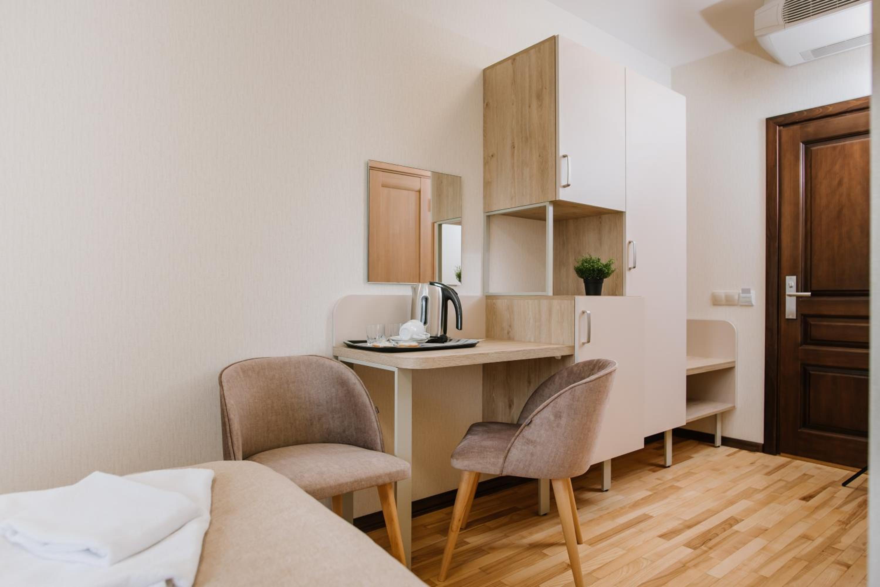Each room at ОРАНТА is thoughtfully designed with a wardrobe, private bathroom with shower and free toiletries, city view, air conditioning, and a desk for convenience and comfort.