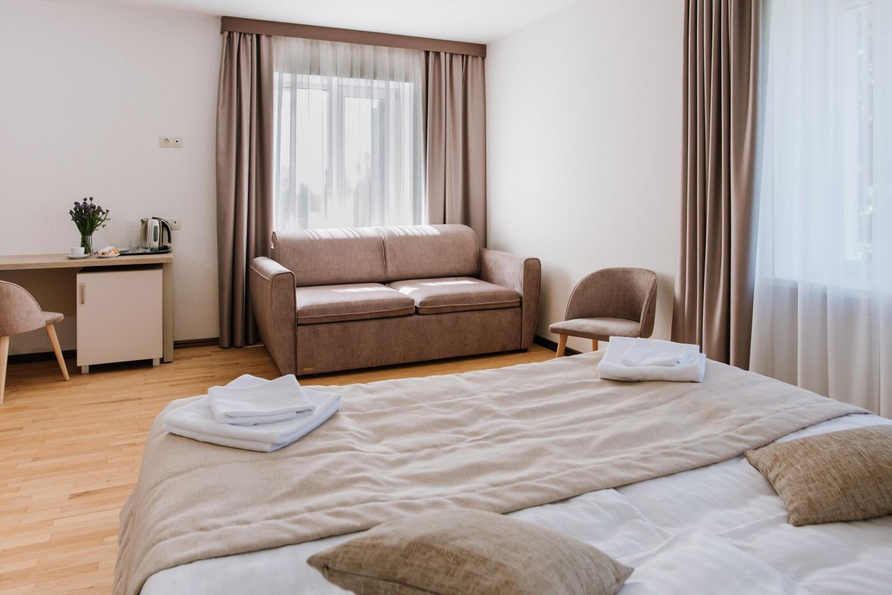 Не вперше в відпочиваю в Трускавці, маю з цим порівняти. У номері відсутній телевізор. Не сподобалось, що у номері не було чаю чи кави для гостей, кімнатних тапок. Можливо для когось це не так важливо, справа кожного. Доволі велика вартість як для стандартного номера в готелі.
