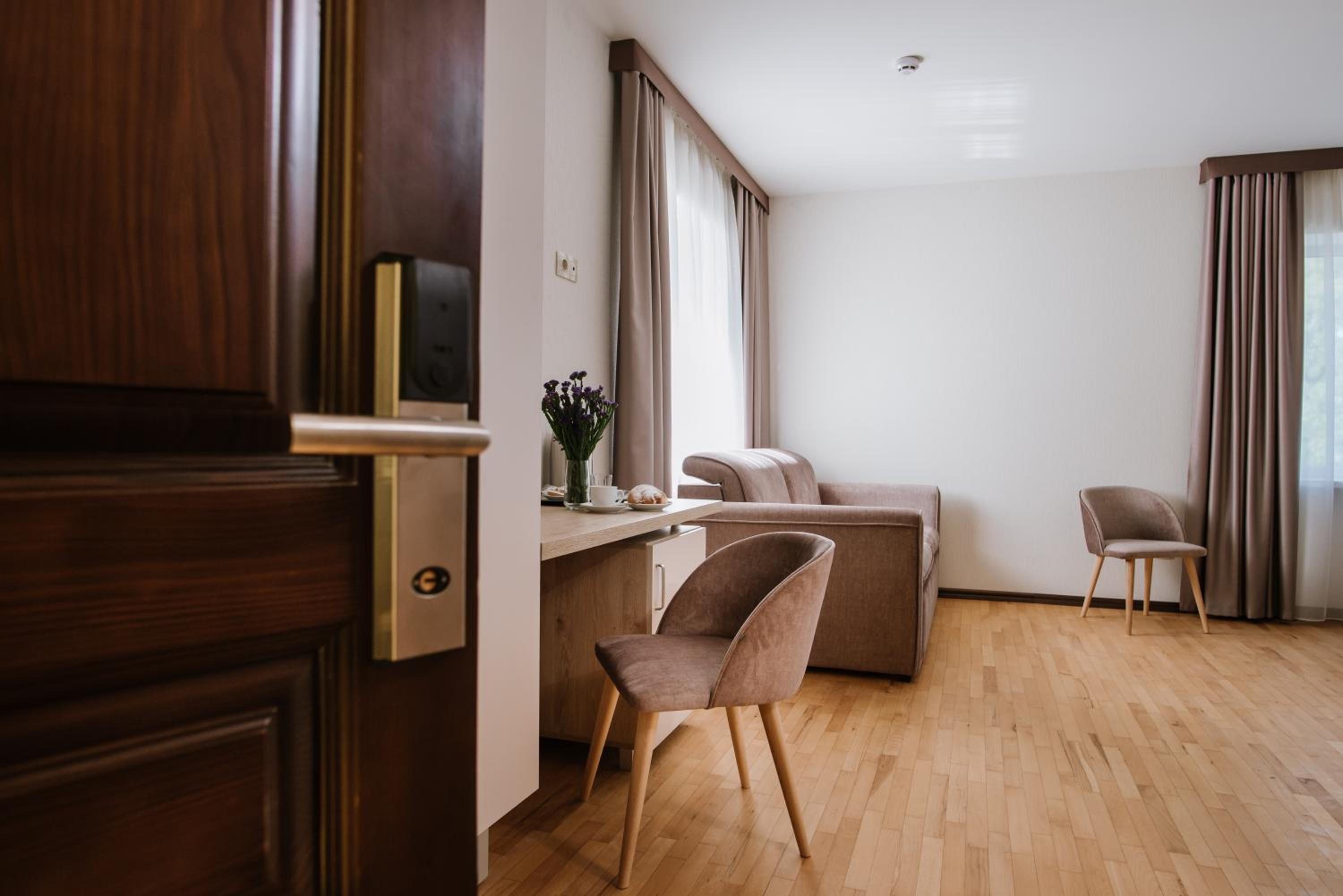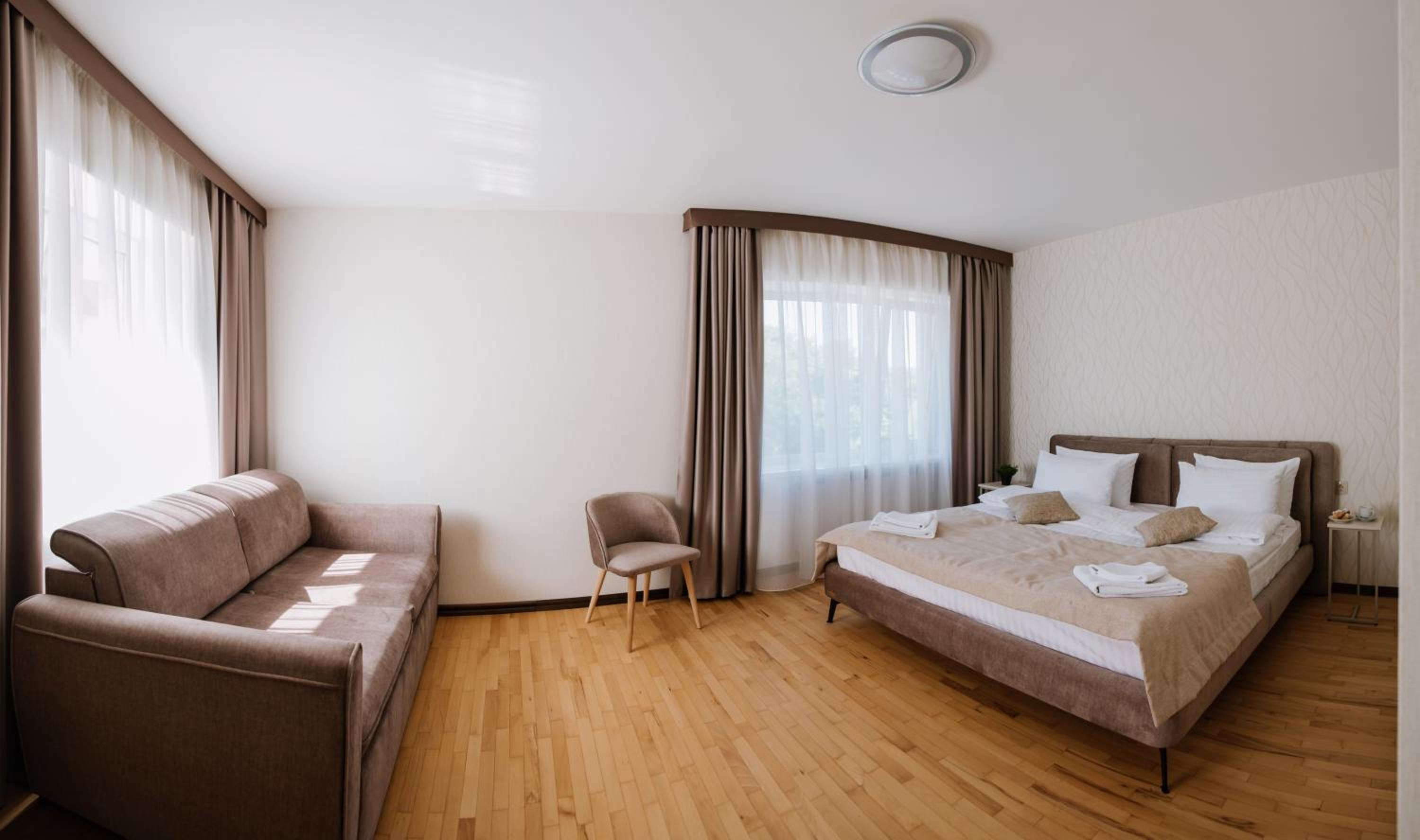 Місцерозташування бомба!!! В номері чисто, тихо, просторо, з вікна вигляд на храм та місто, поруч аптека, магазини, ринок, музей, бювет, і "бістро", де смачно та за приємну вартість погодують! Були 4 дні в січні 2026 року, залишилися дуже задоволені!